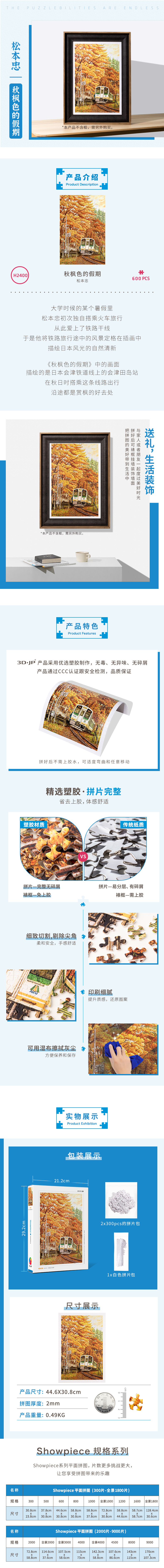 600片 平面拼图 塑料拼图 H2400 松本忠- 秋枫色的假期