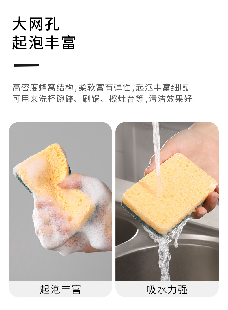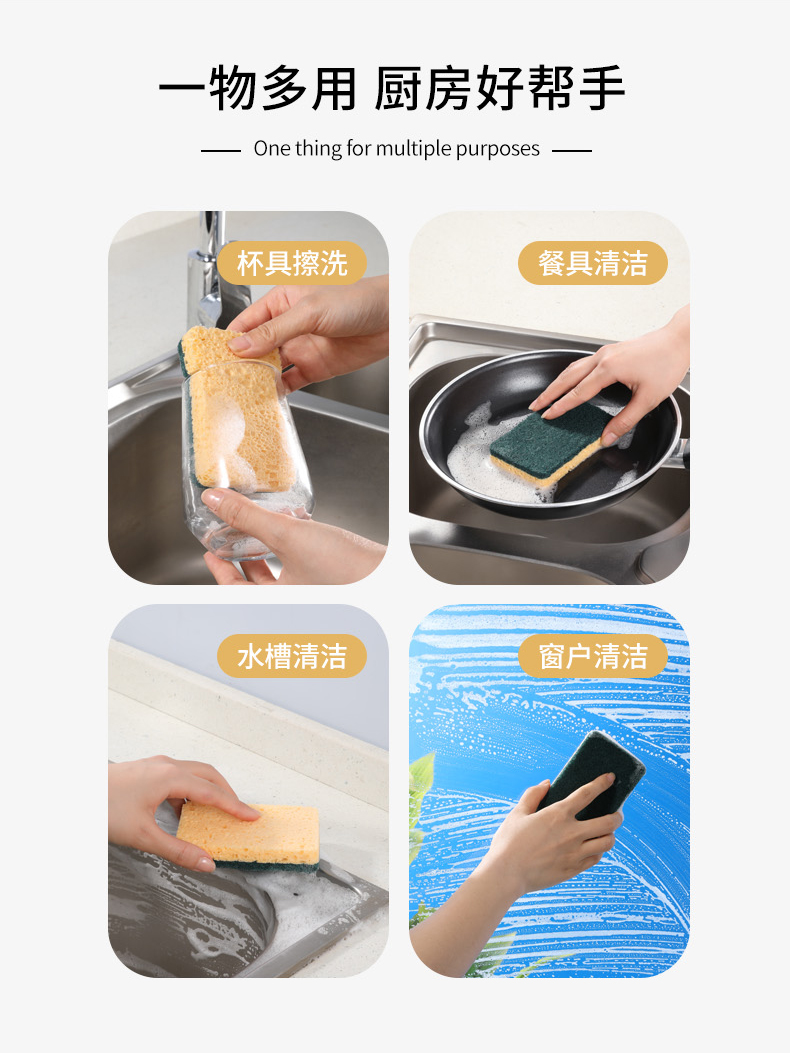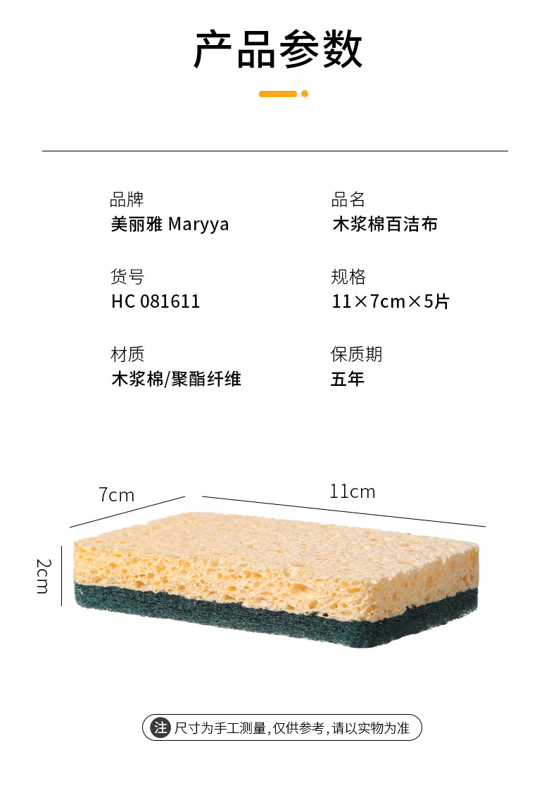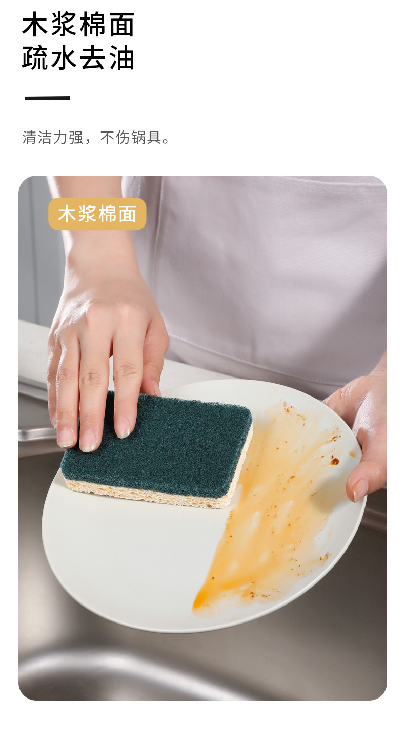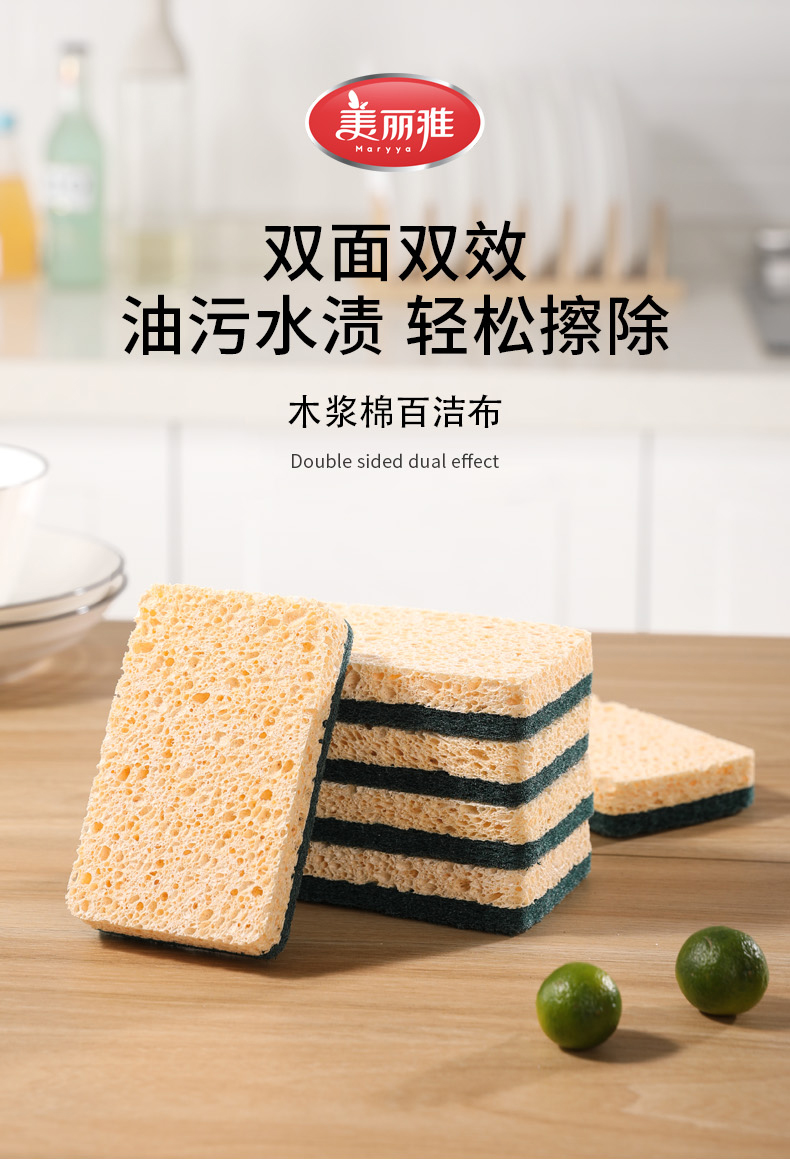 【批发】美丽雅木浆棉百洁擦厨房易吸水吸油清洁神器海绵擦 5块/包
