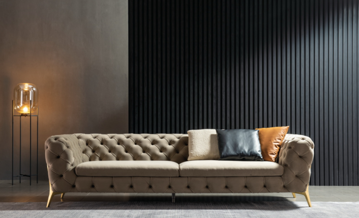 绒布沙发,进口高回弹海绵,五金沙发脚