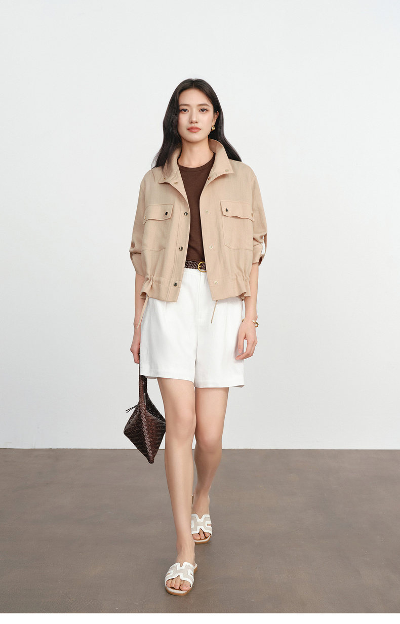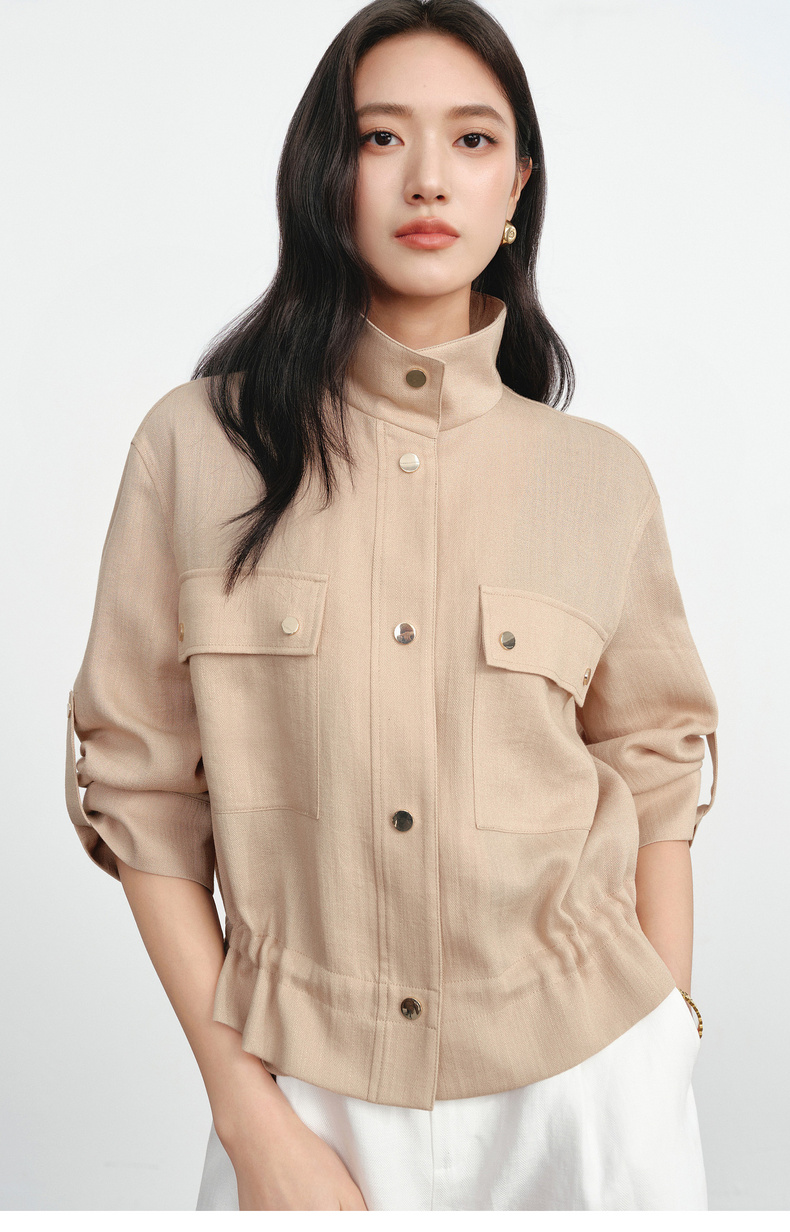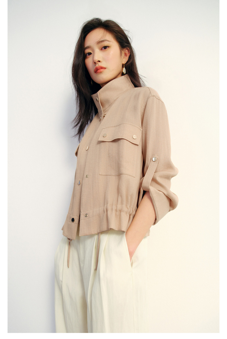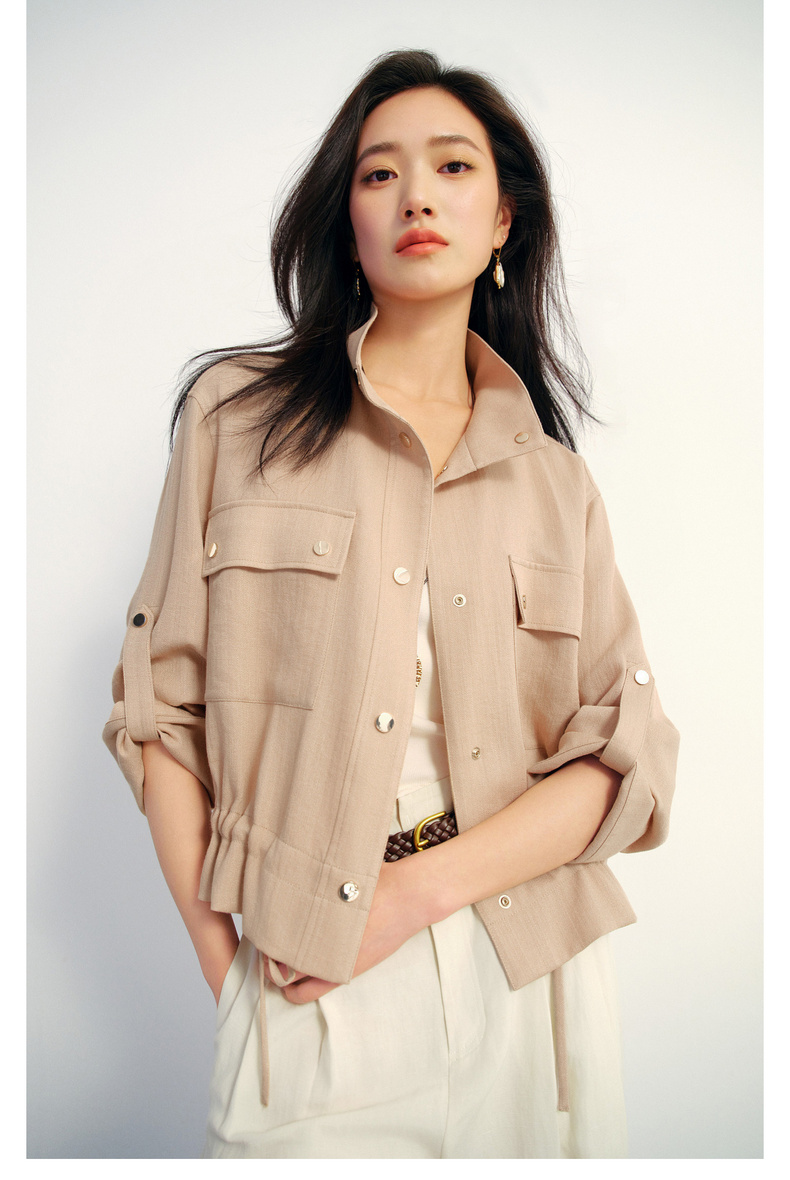 【严选】朱珠代言伊芙丽仿麻肌理感立领高智感防晒短款外套2026新款1H3911641