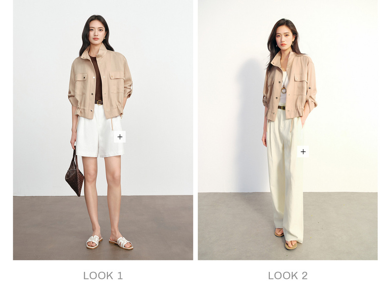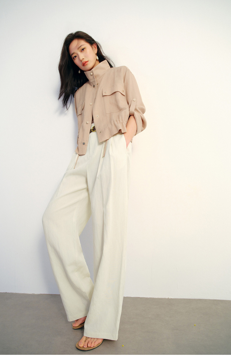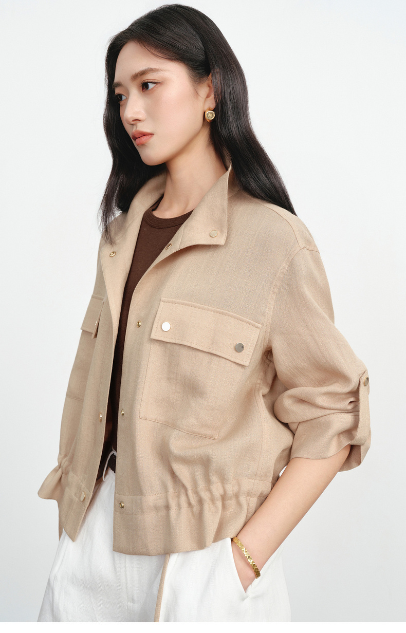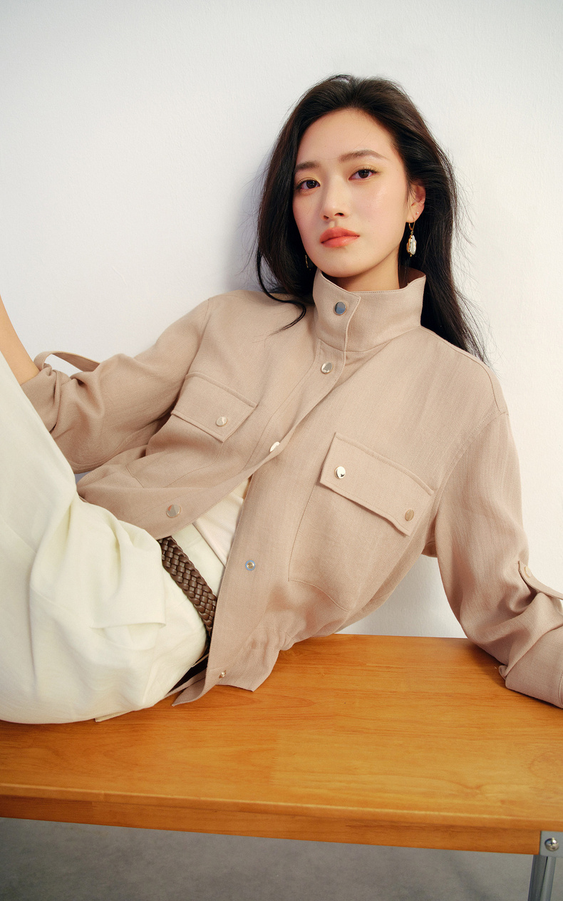 【严选】朱珠代言伊芙丽仿麻肌理感立领高智感防晒短款外套2026新款1H3911641