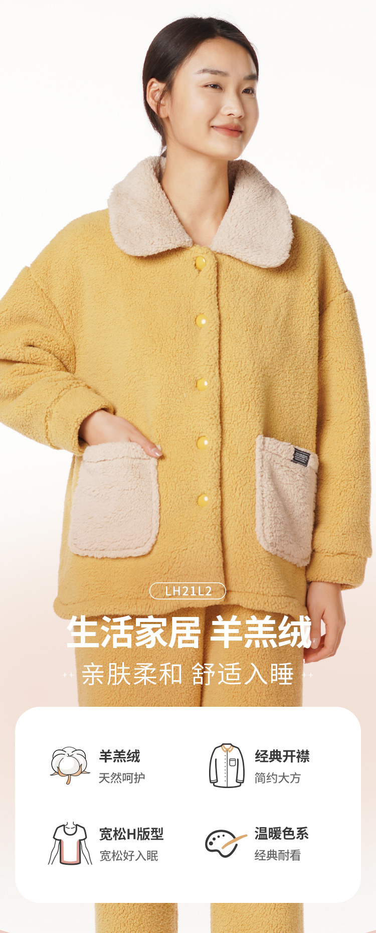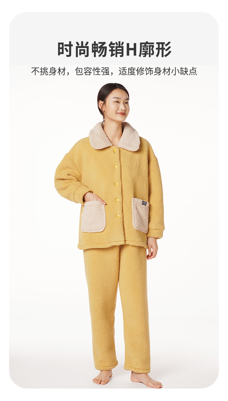 都市丽人生活家居女士羊羔绒套装羊羔绒厚家居服长袖睡衣LH21L2