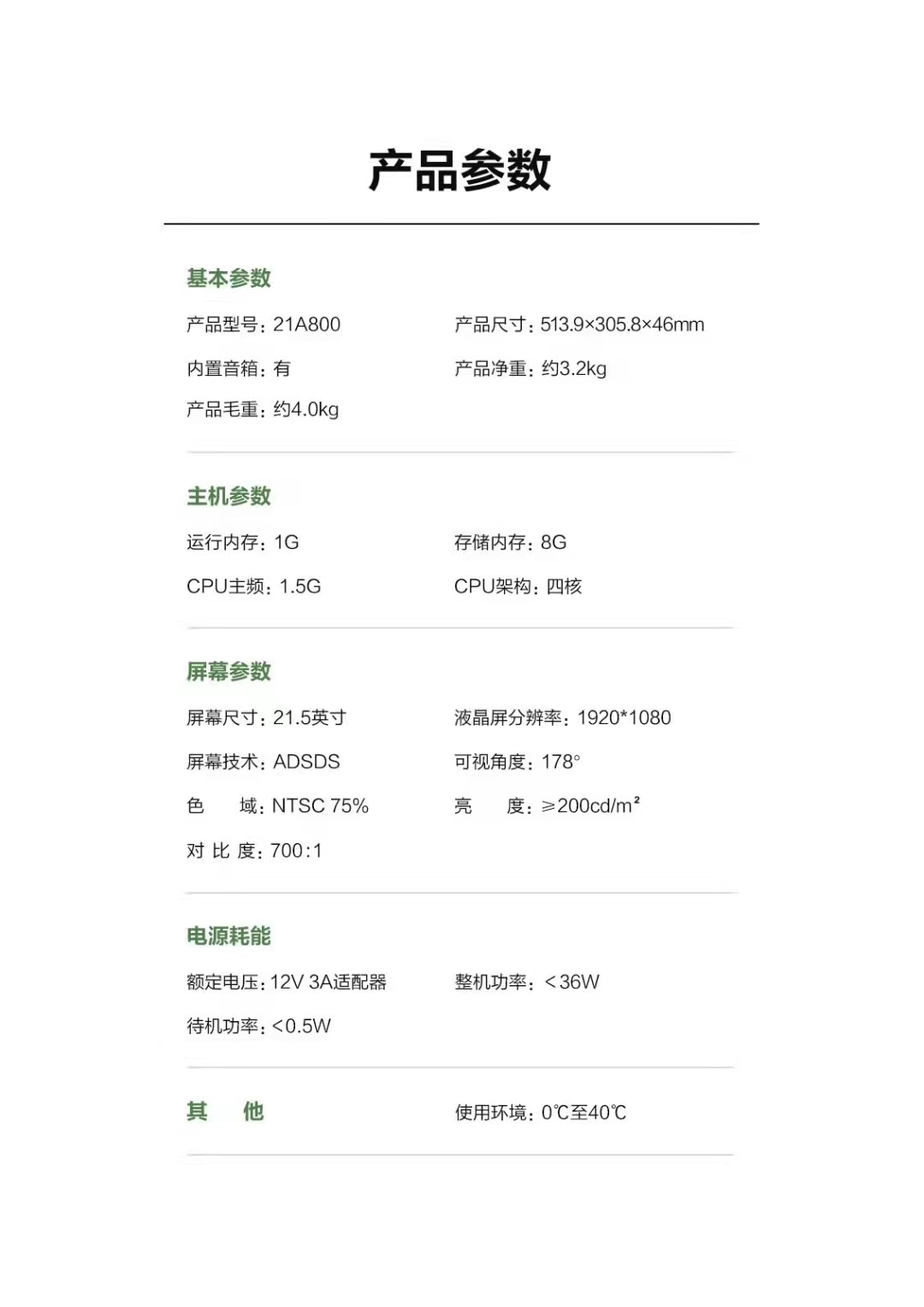 外观由原来的原木框换成ABS窄边框护眼绿设计,增加0°-60°可调节支架