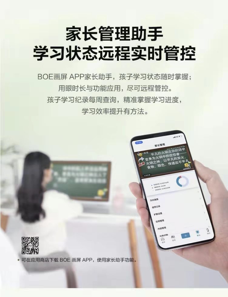 BOE 画屏 APP 家长助手,孩子学习状态随时掌握;用眼时长与功能应用,尽可远程管控。