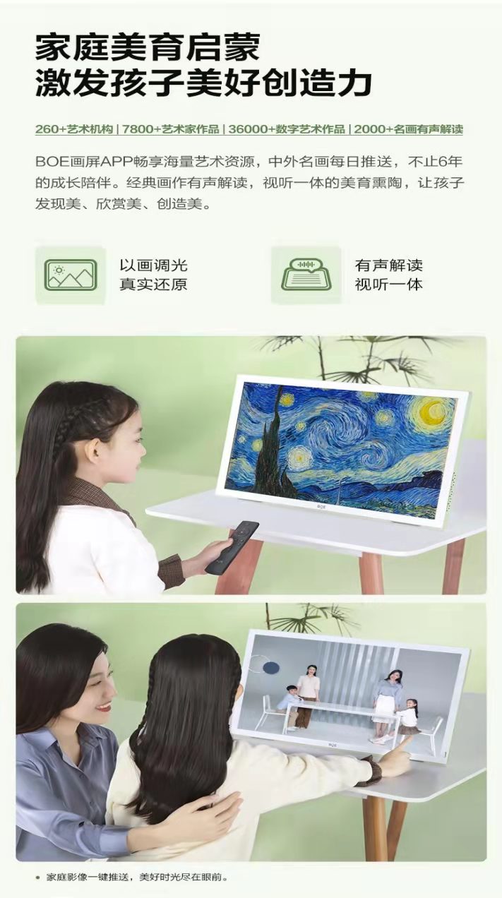 智联 BOE 画屏 APP 畅享海量艺术资源,中外名画每日推送,不止 6 年的成长陪伴。