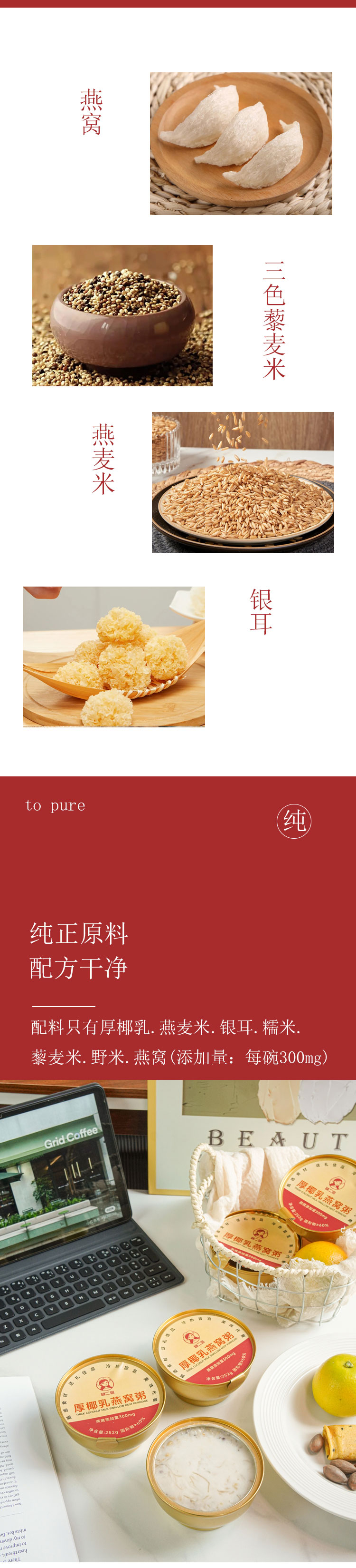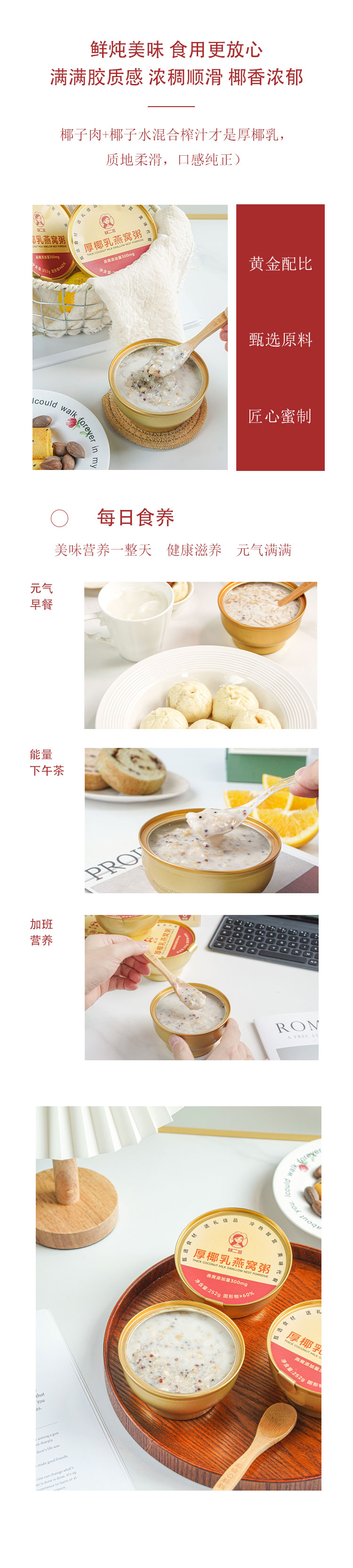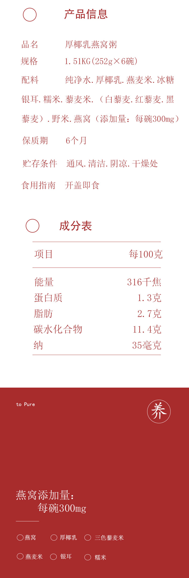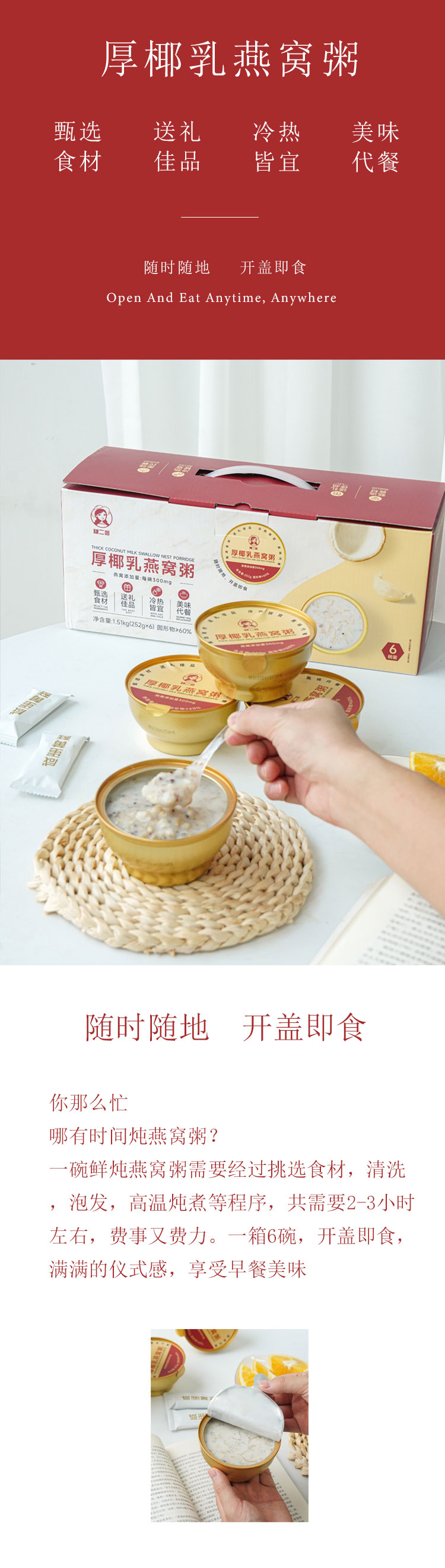 【赠品】【厚椰乳燕窝粥】配料表超干净 满满的五谷杂粮 超健康 早/午/晚餐 每碗燕窝投量>300mg 每箱252g*6碗
