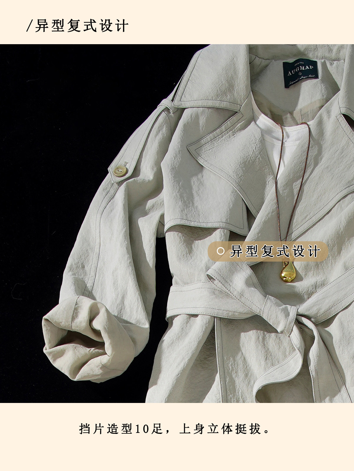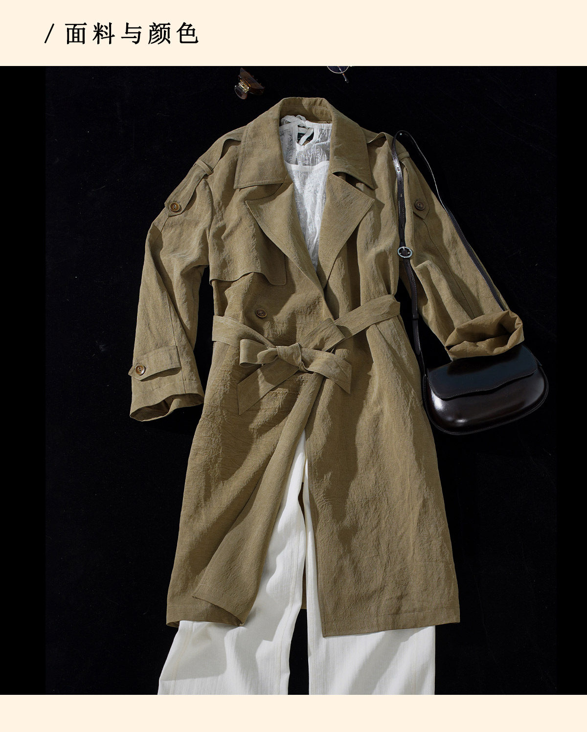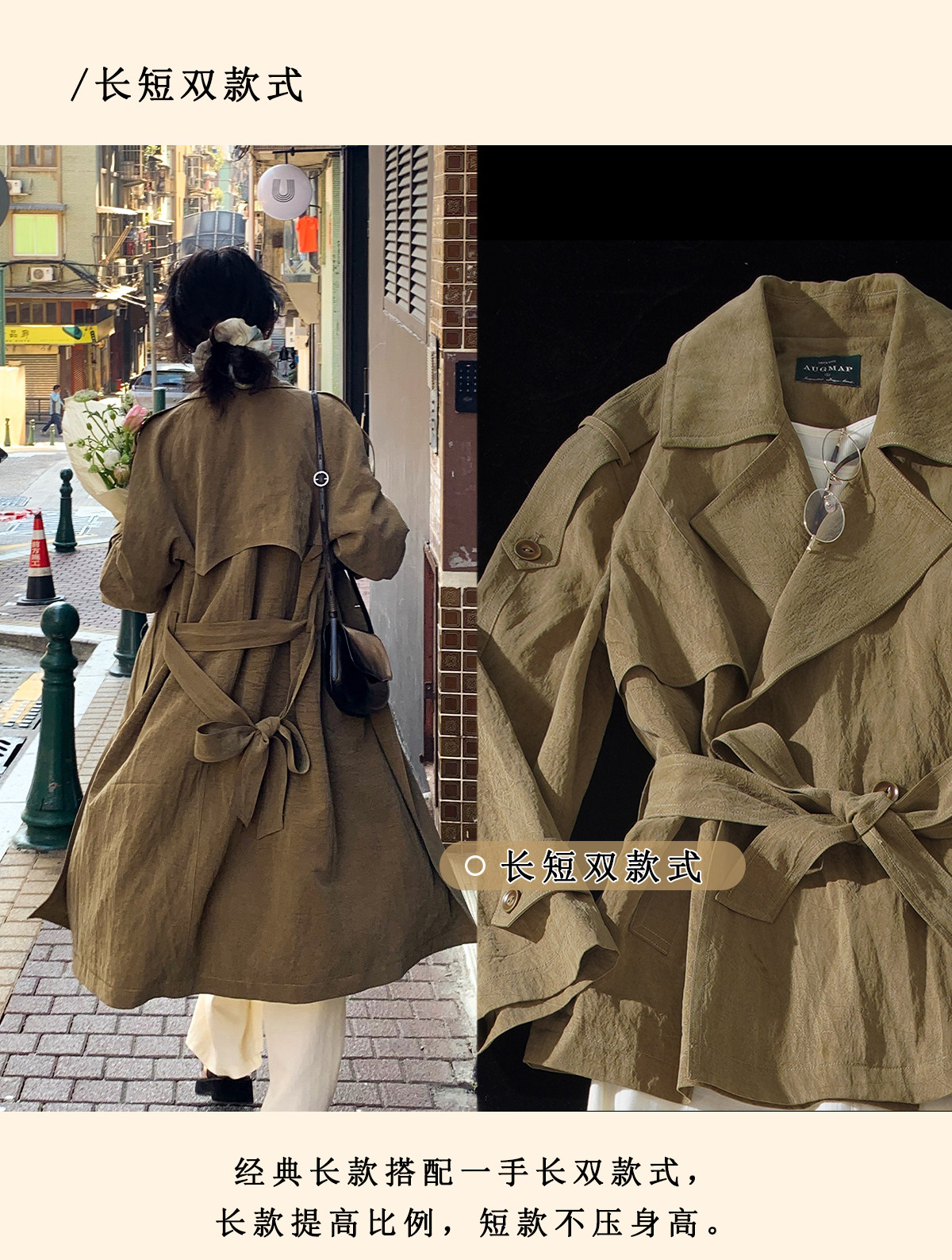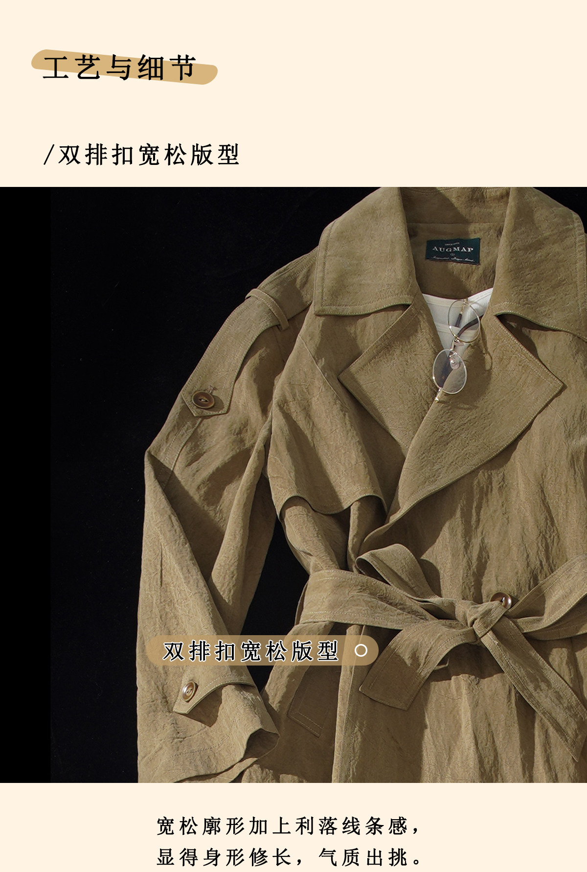 浮生八记/26A002/羊毛天丝肌理感垂坠双排扣长短款风衣