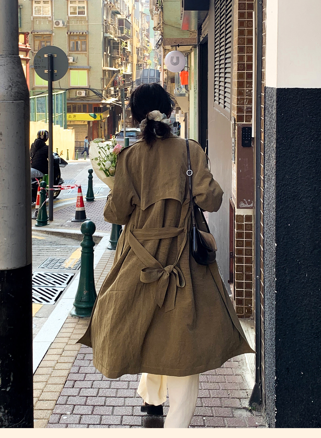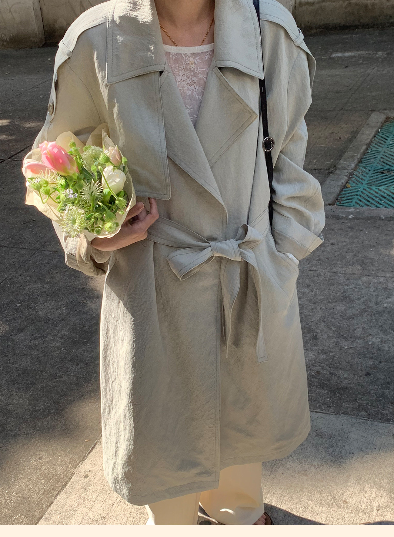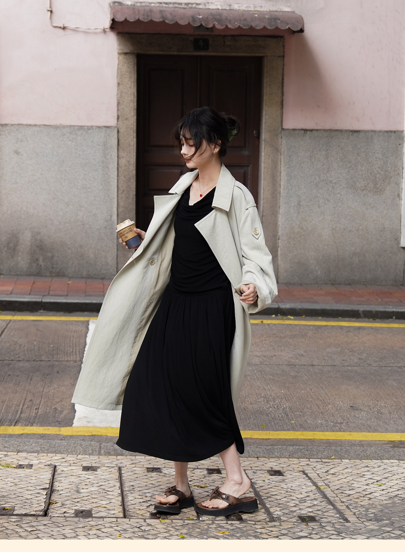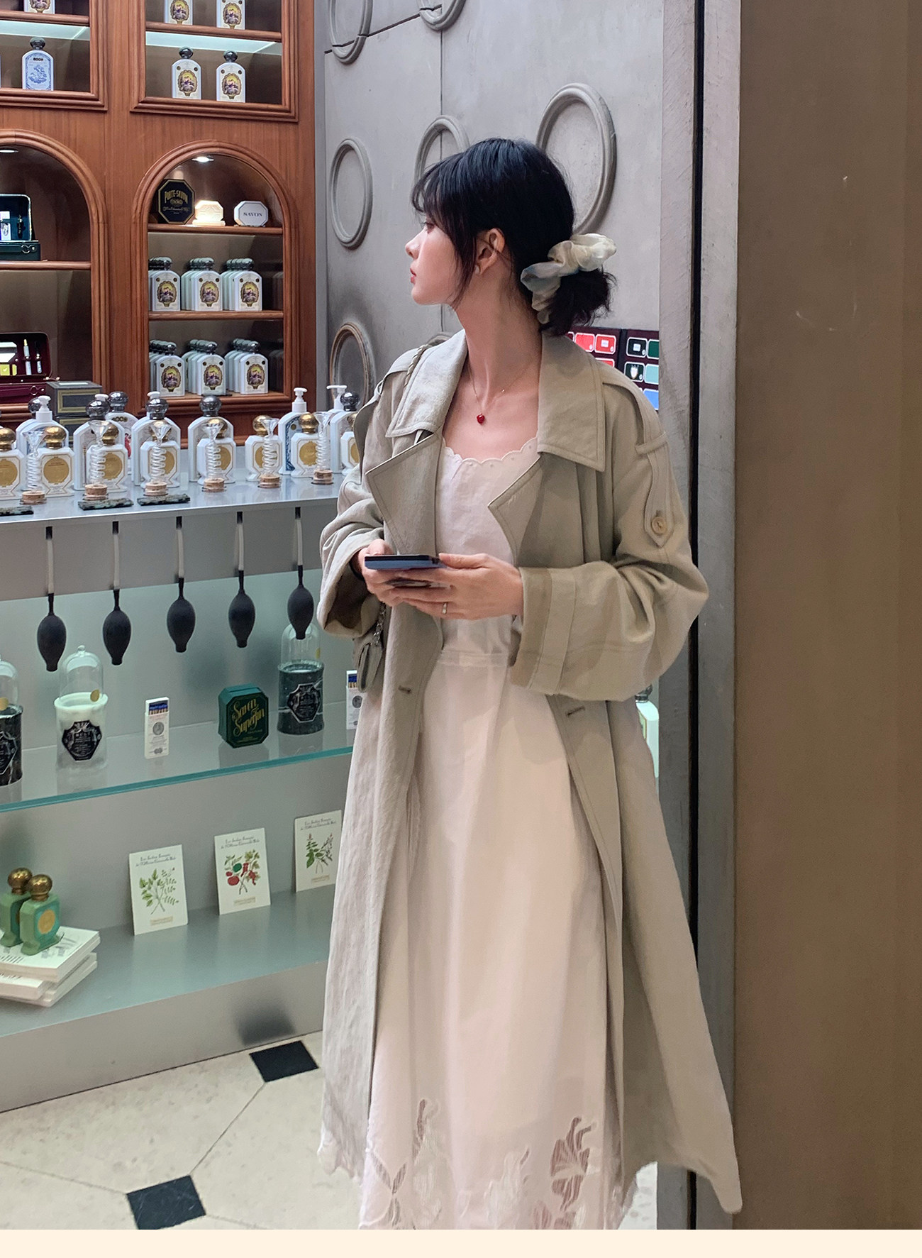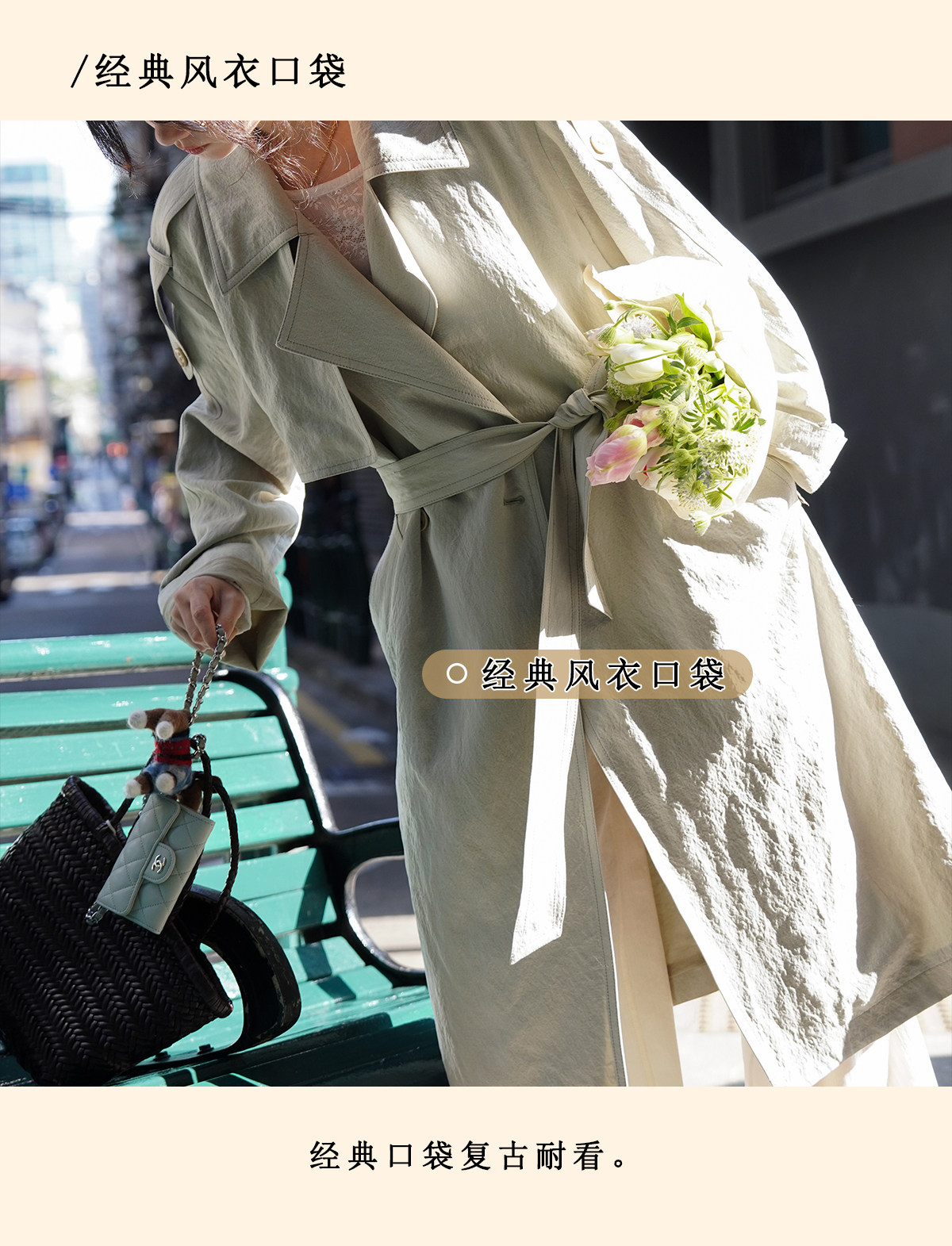 浮生八记/26A002/羊毛天丝肌理感垂坠双排扣长短款风衣