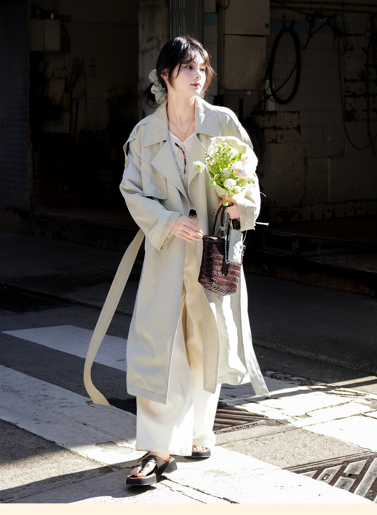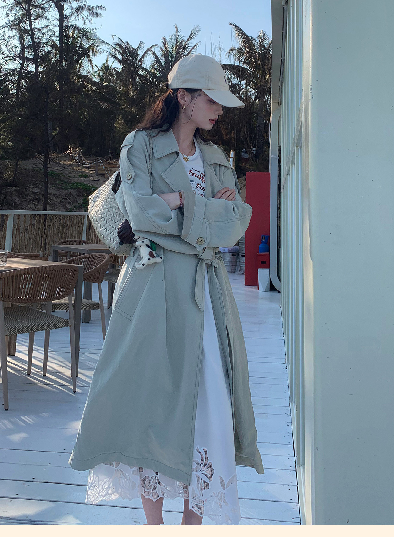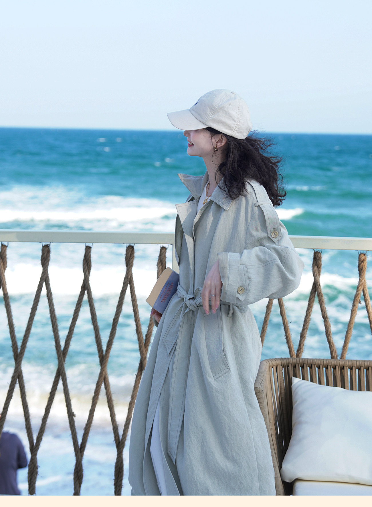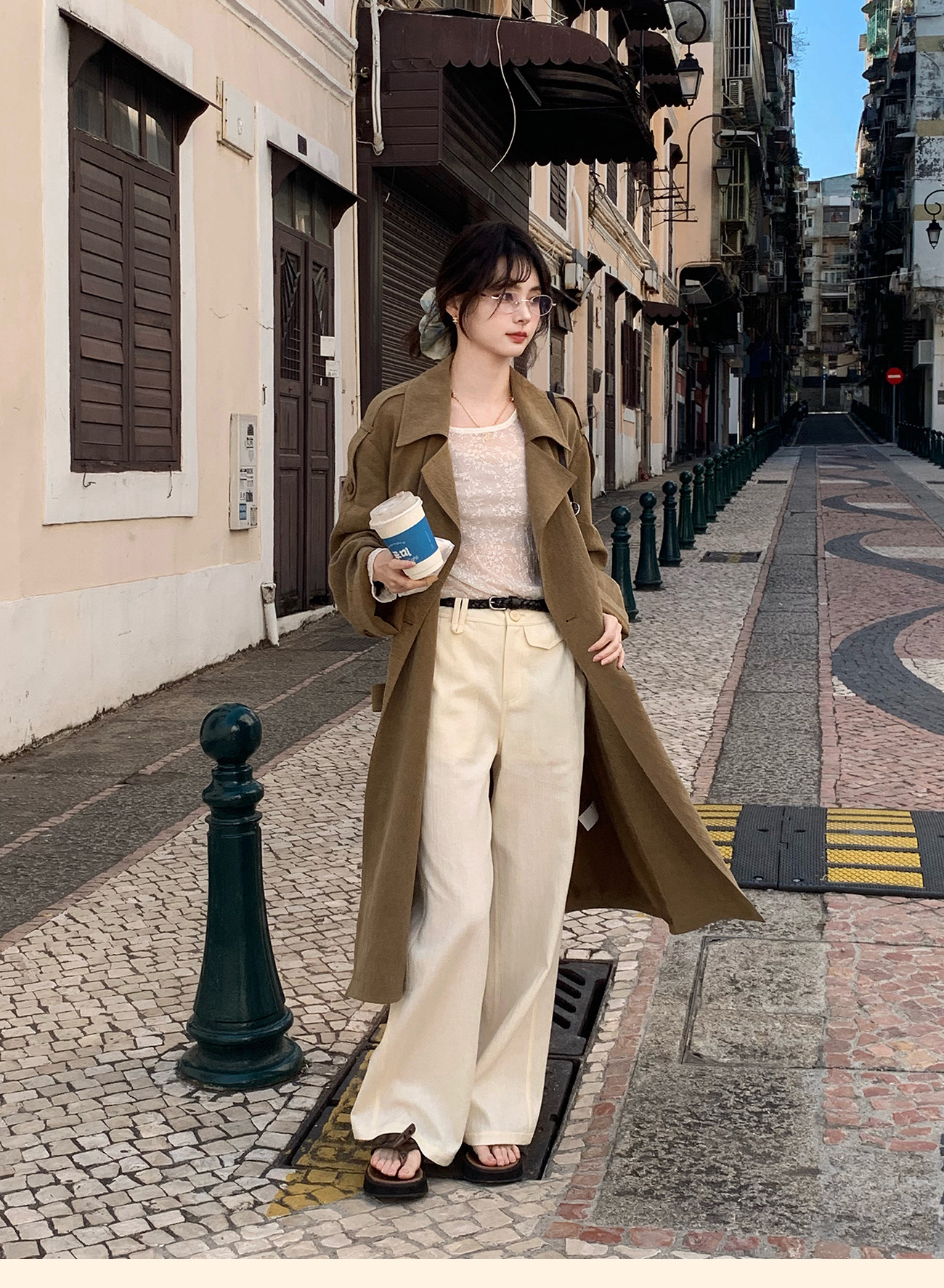浮生八记/26A002/羊毛天丝肌理感垂坠双排扣长短款风衣
