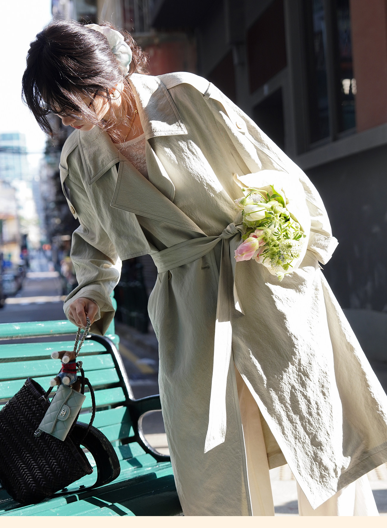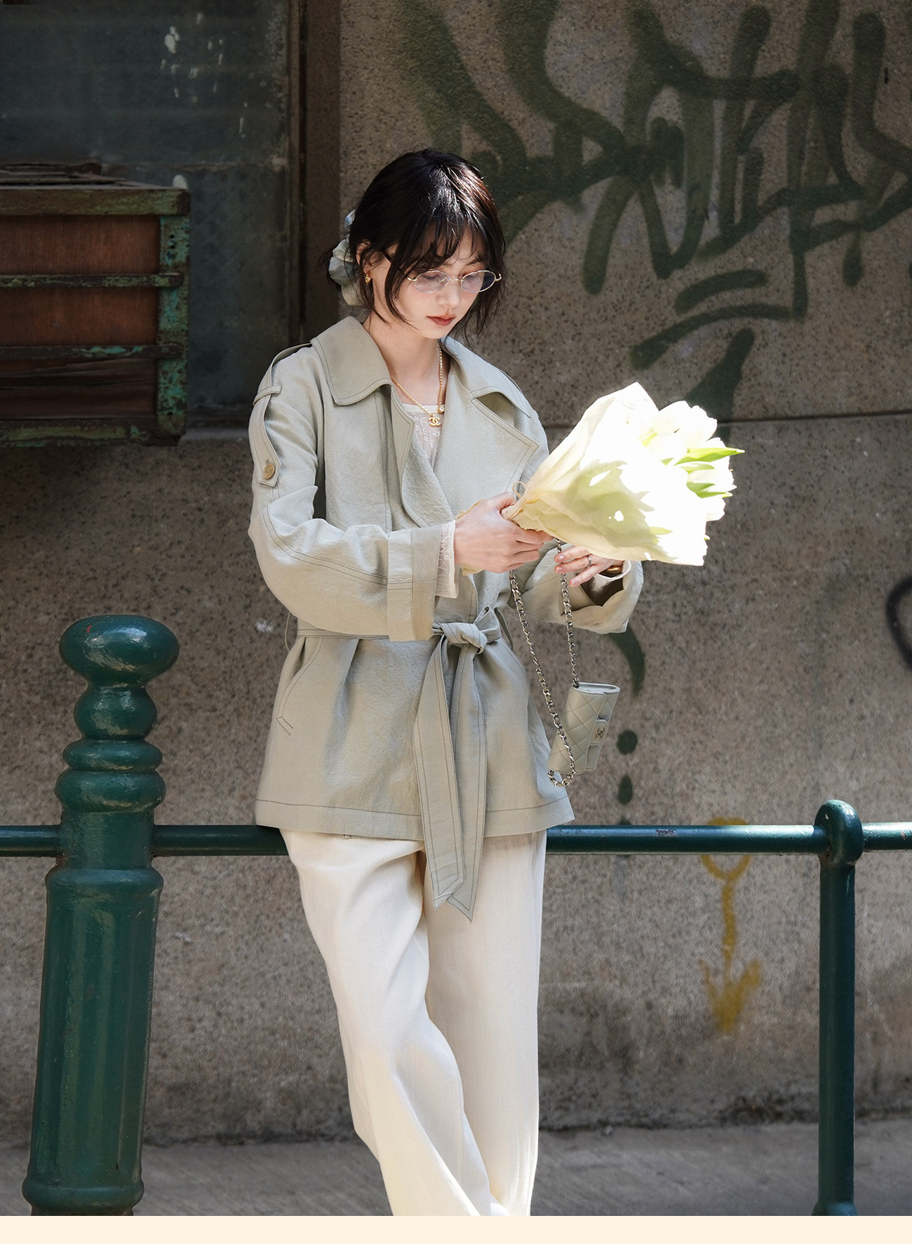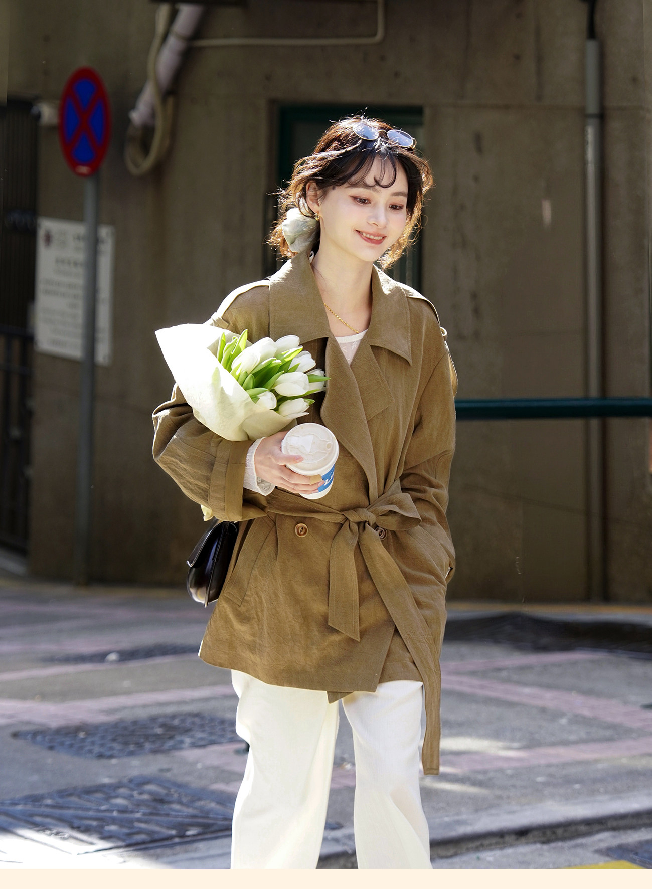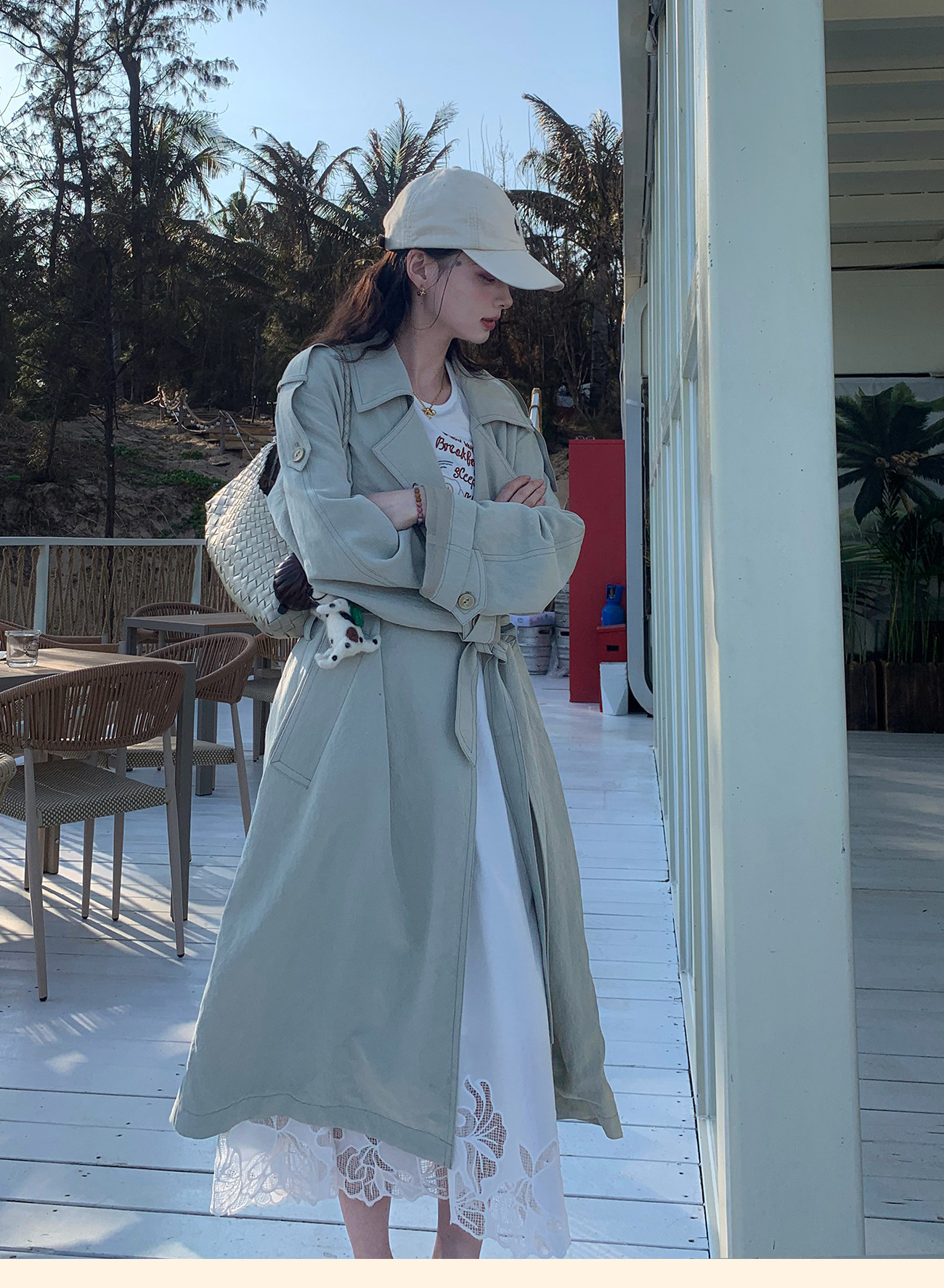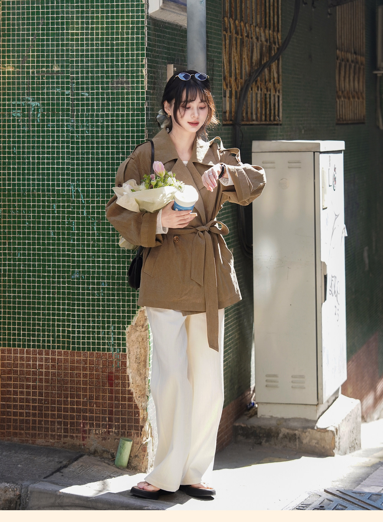 浮生八记/26A002/羊毛天丝肌理感垂坠双排扣长短款风衣