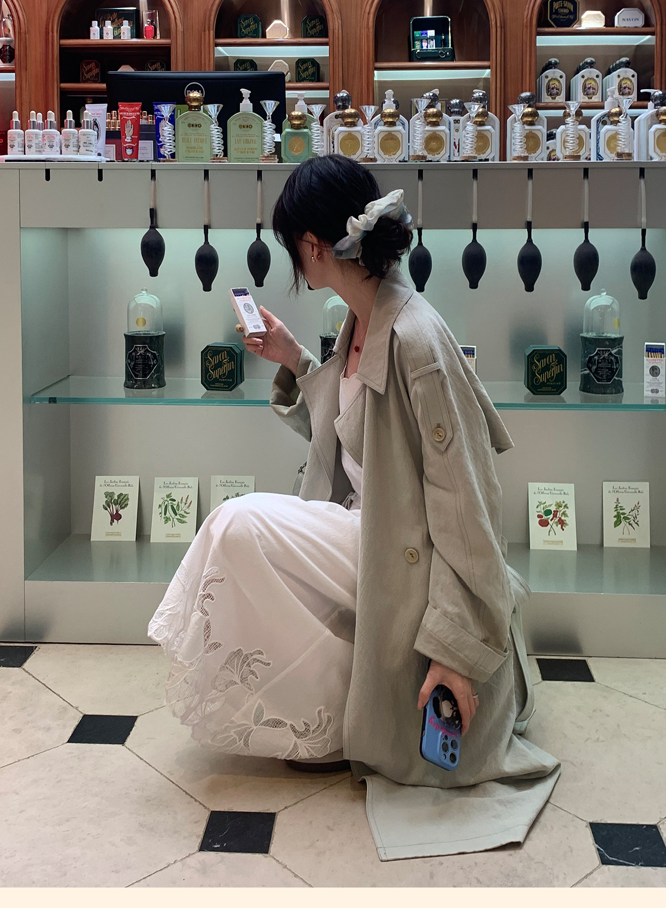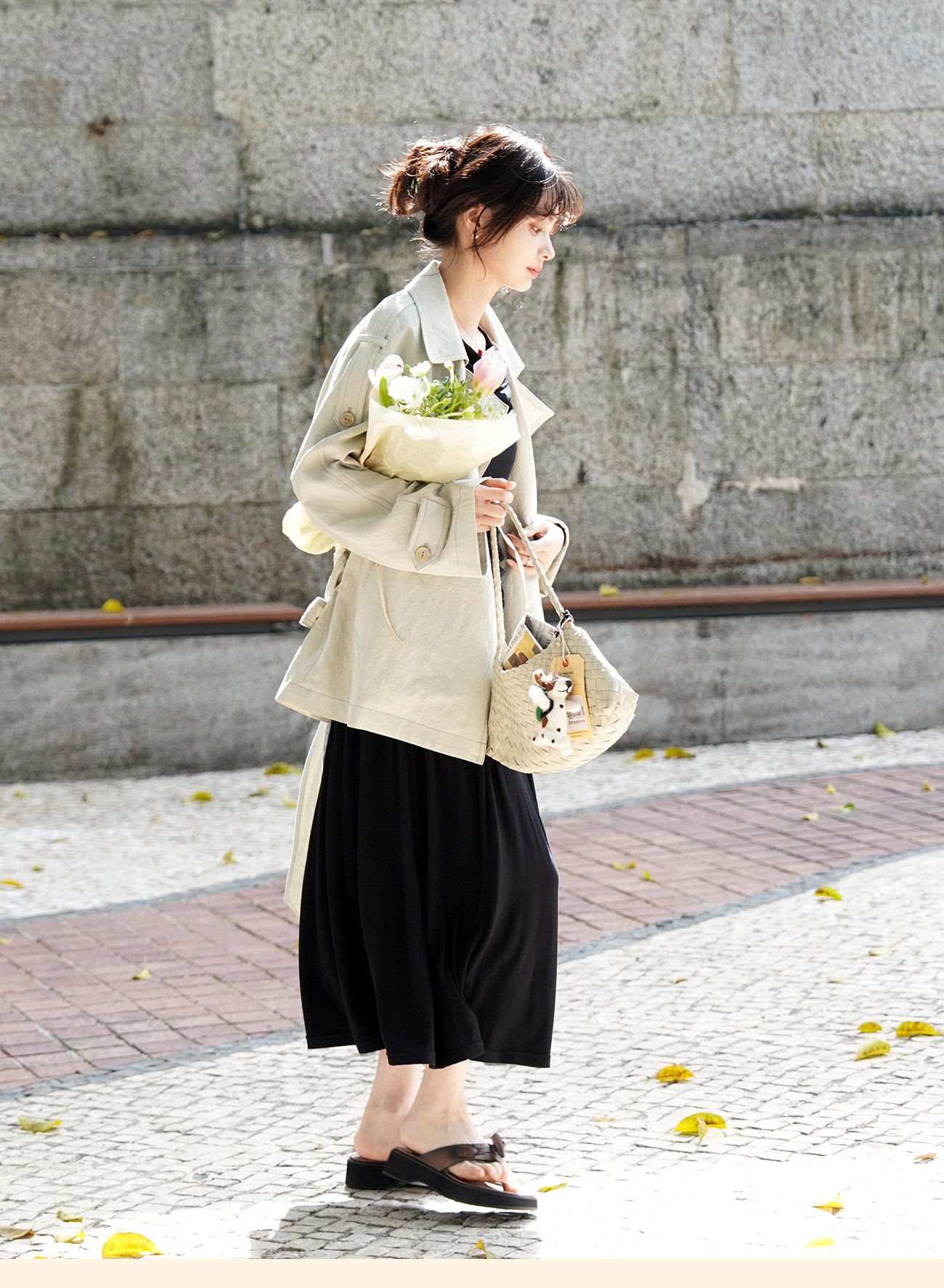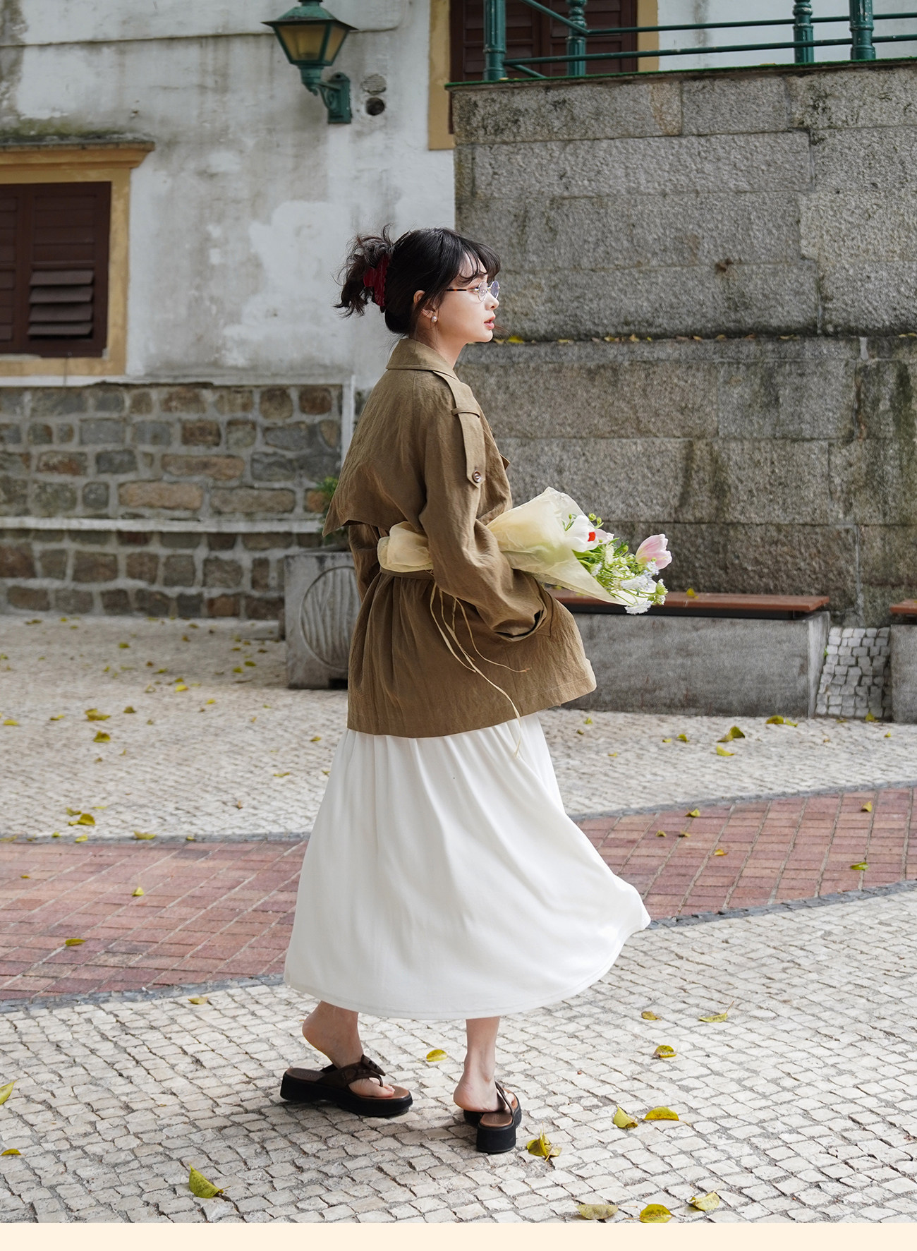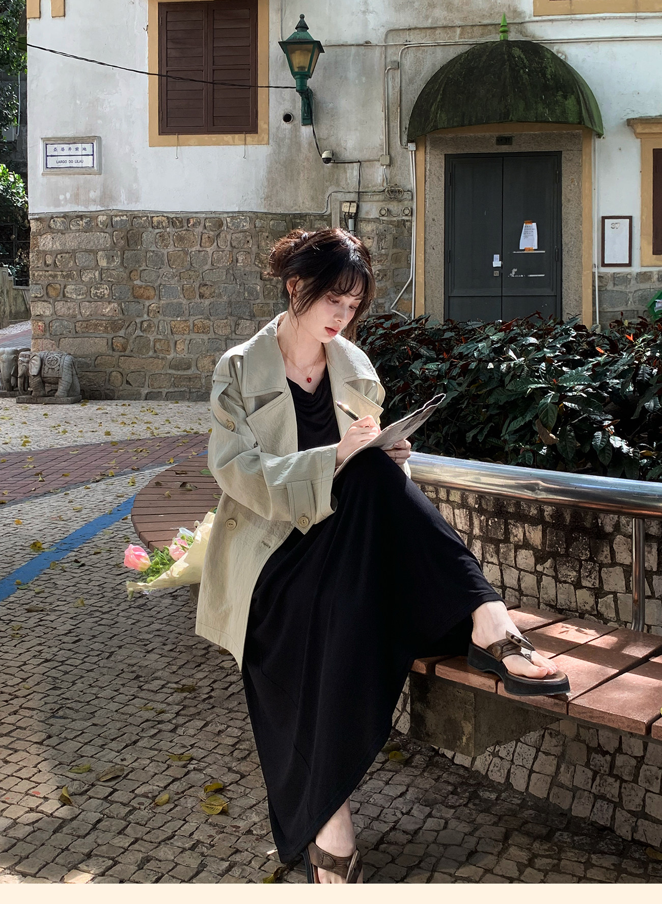 浮生八记/26A002/羊毛天丝肌理感垂坠双排扣长短款风衣