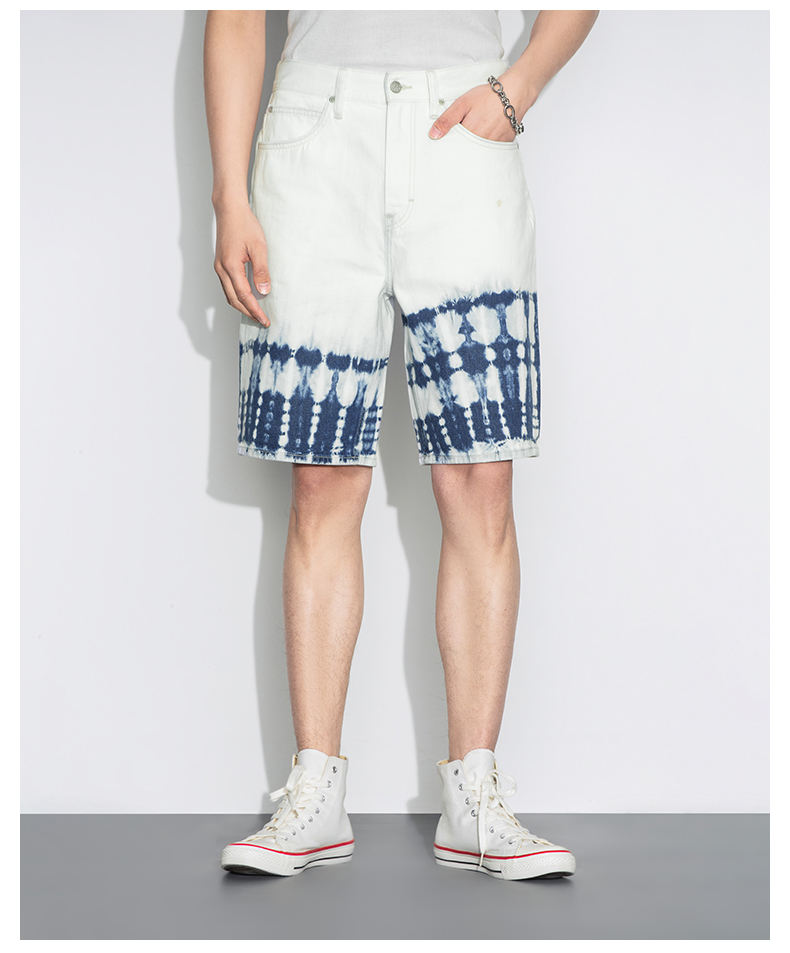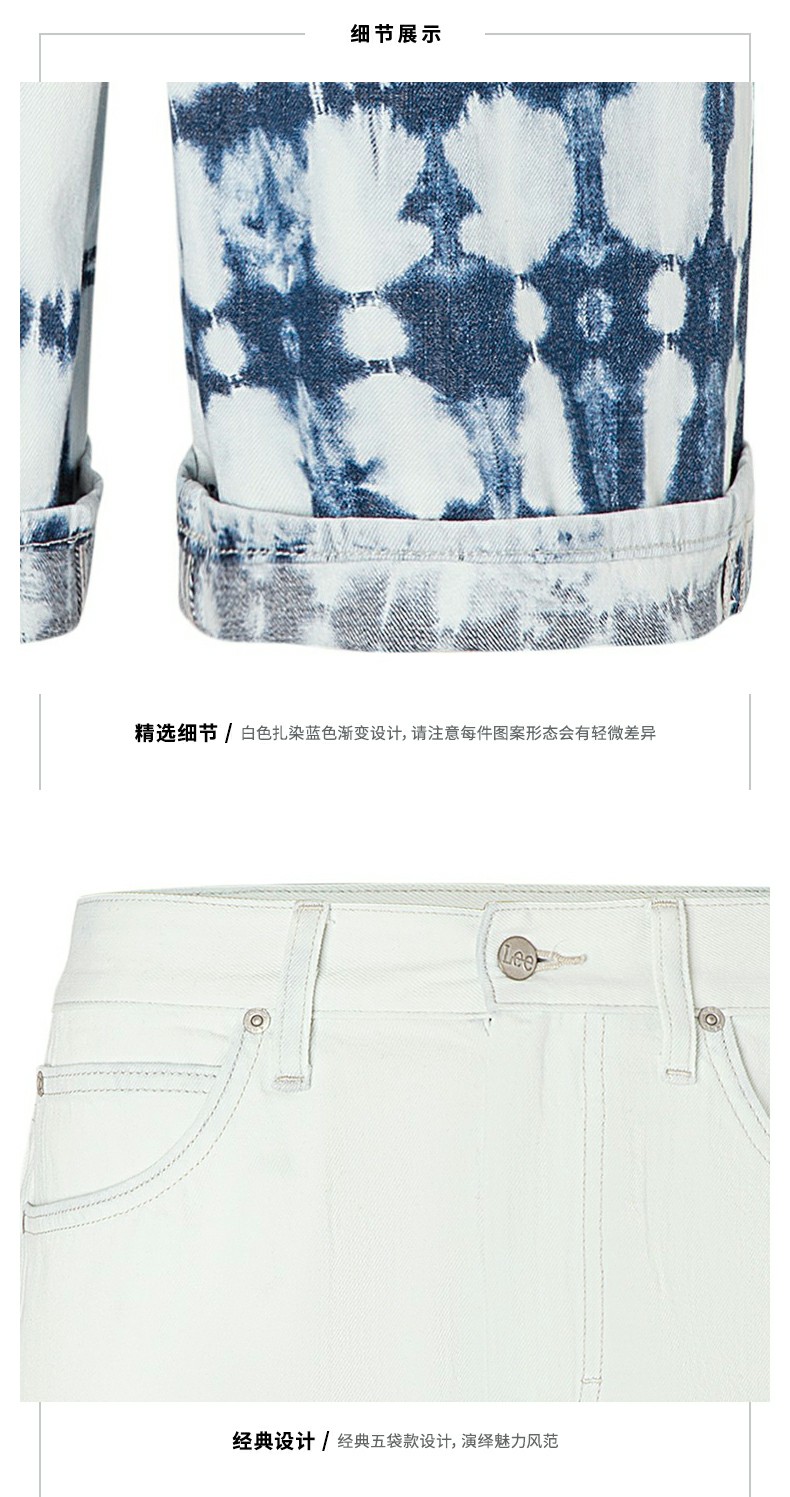 Lee商场同款22春夏新品白色扎染蓝色男牛仔短裤LMB1009033HH-483