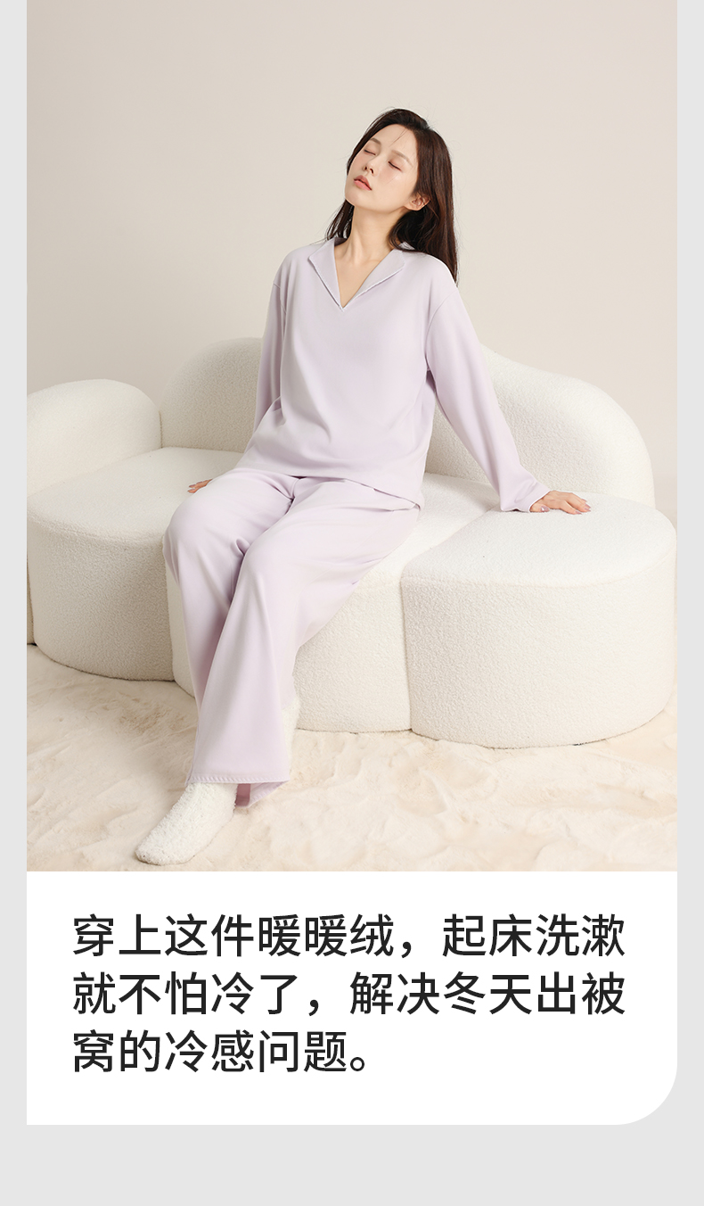 【保暖舒睡,细腻柔滑】【1000g高品质】印篱YINGLI秋冬新款男女款双面暖暖绒V领家居服聚暖发热睡衣套装