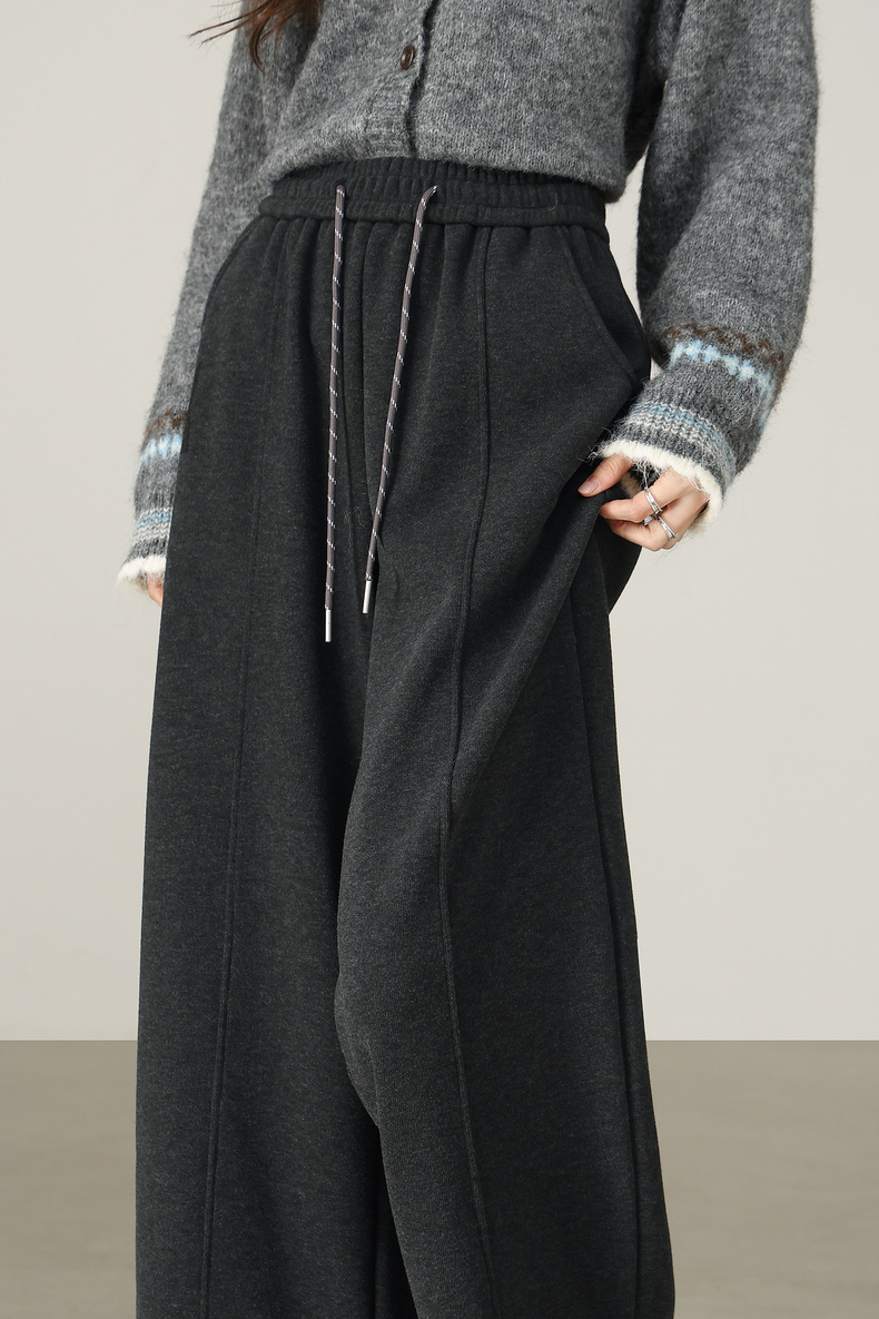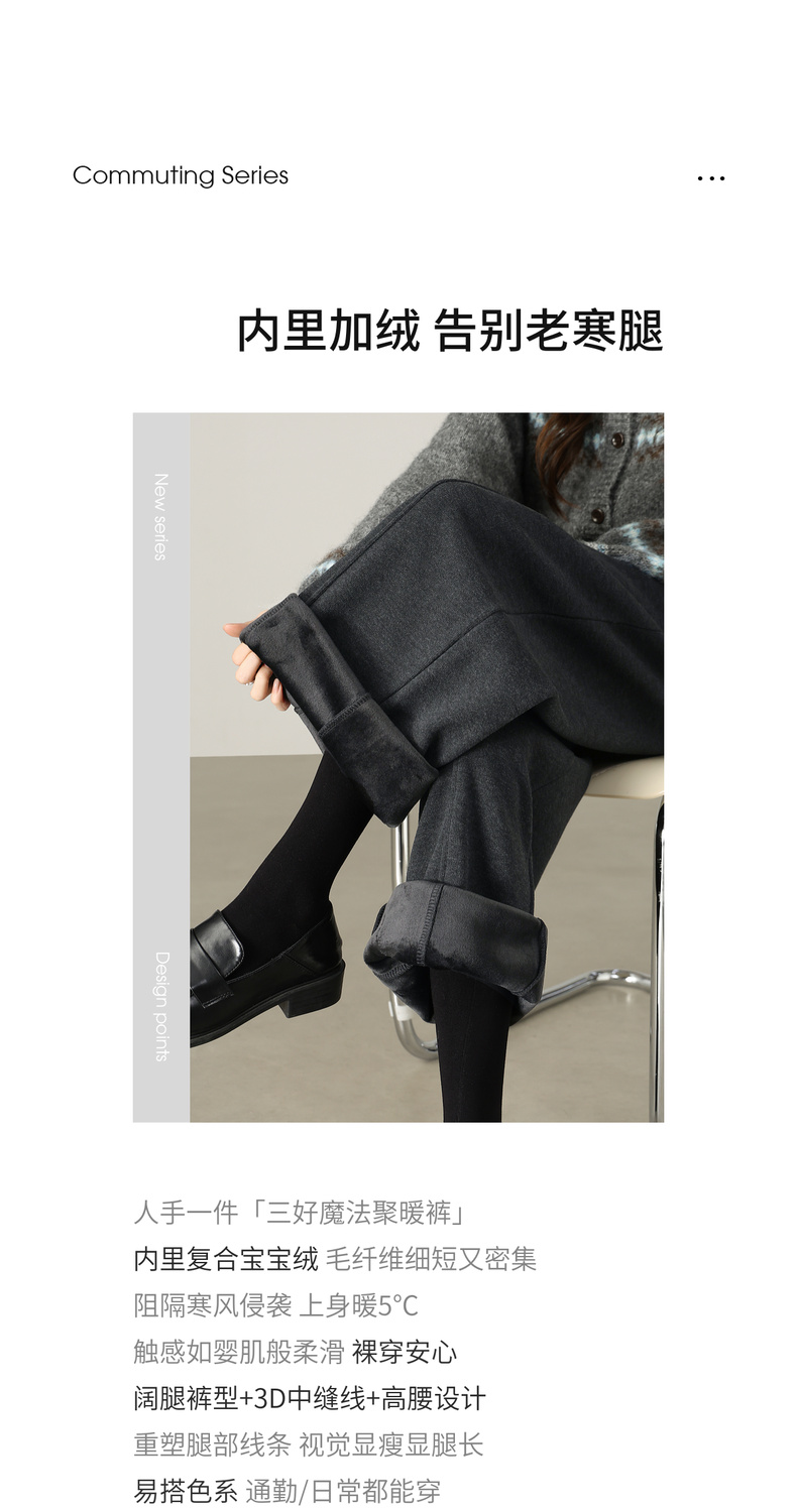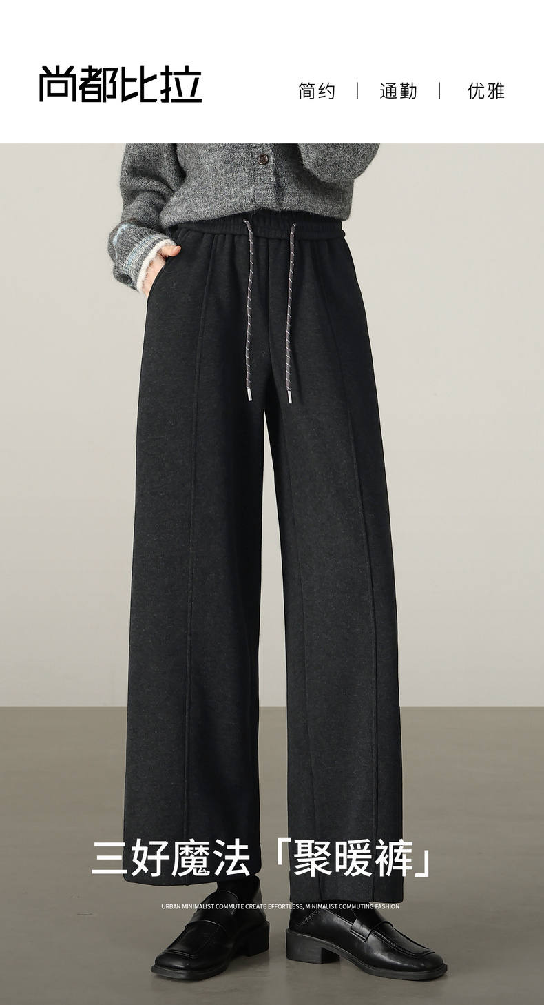 【内购】【聚暖裤】简约通勤抽绳松紧高腰加绒保暖宽松显瘦阔腿裤长裤-W54KD5028