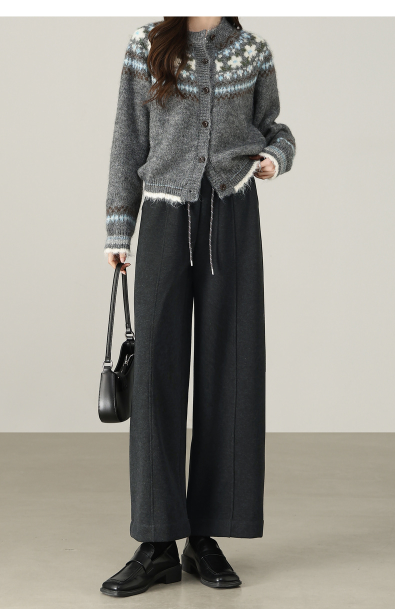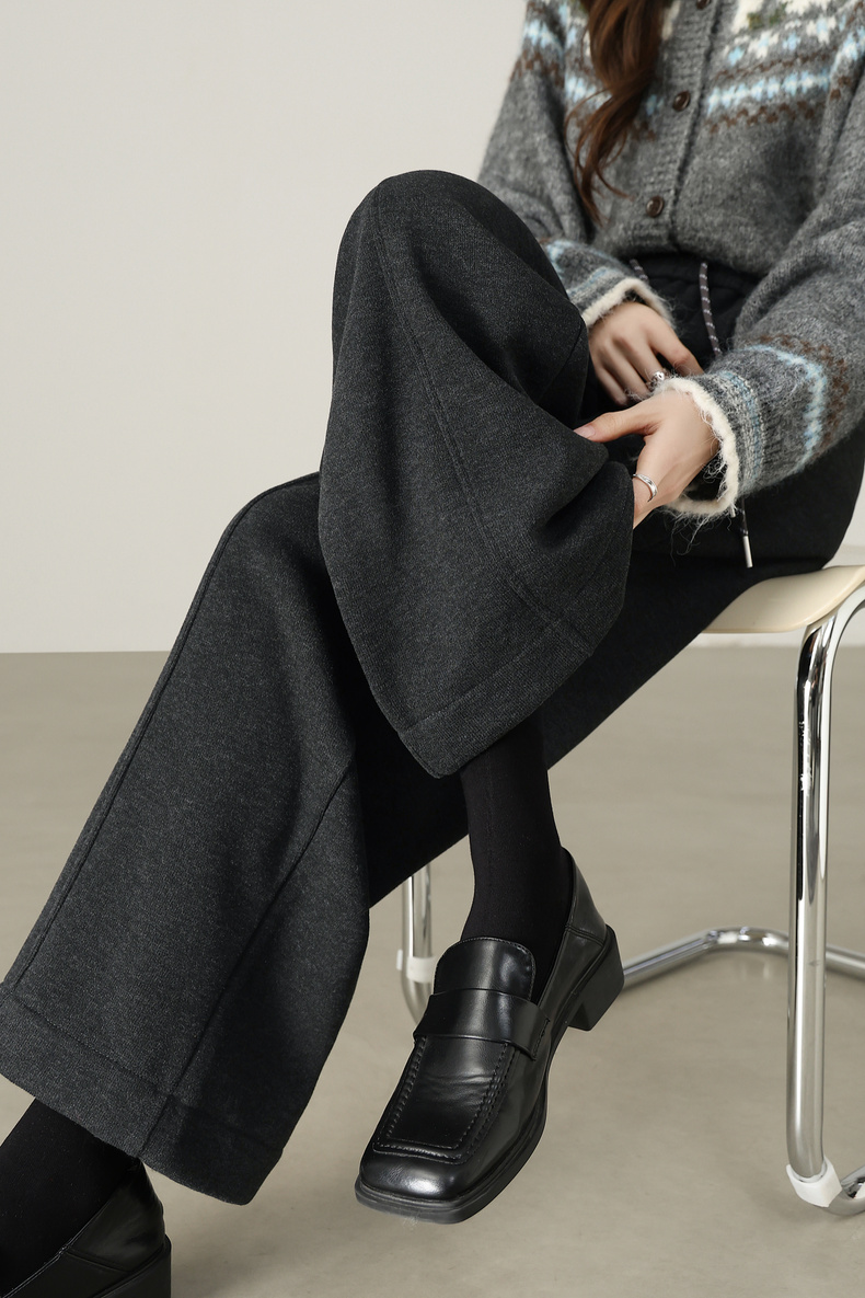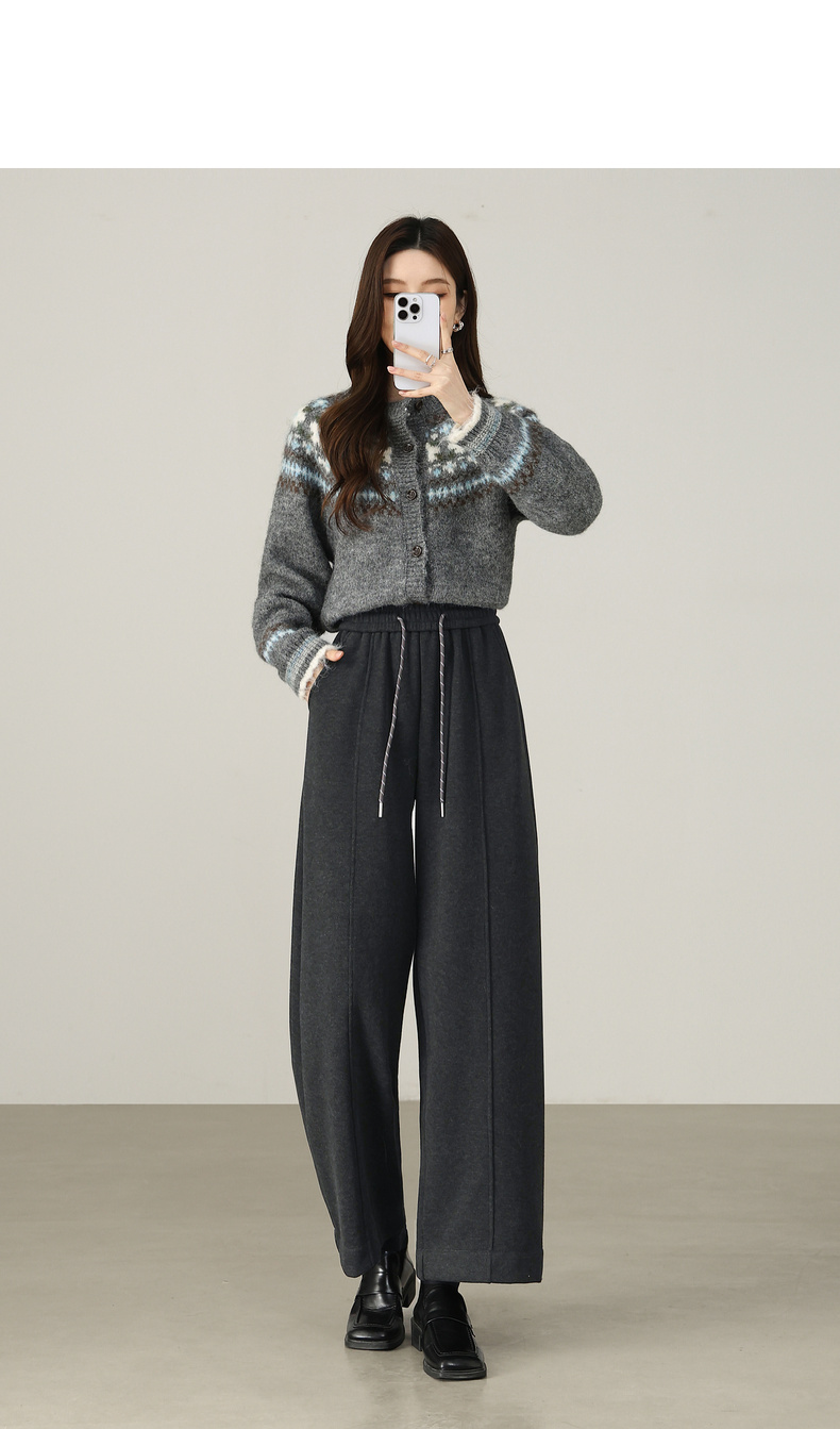 【内购】【聚暖裤】简约通勤抽绳松紧高腰加绒保暖宽松显瘦阔腿裤长裤-W54KD5028