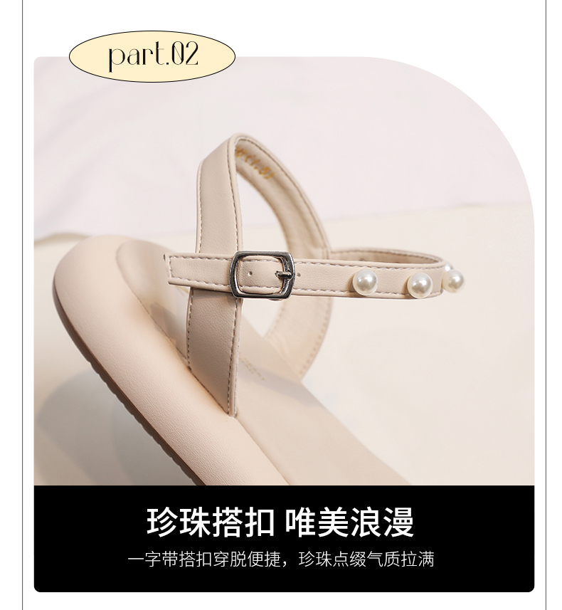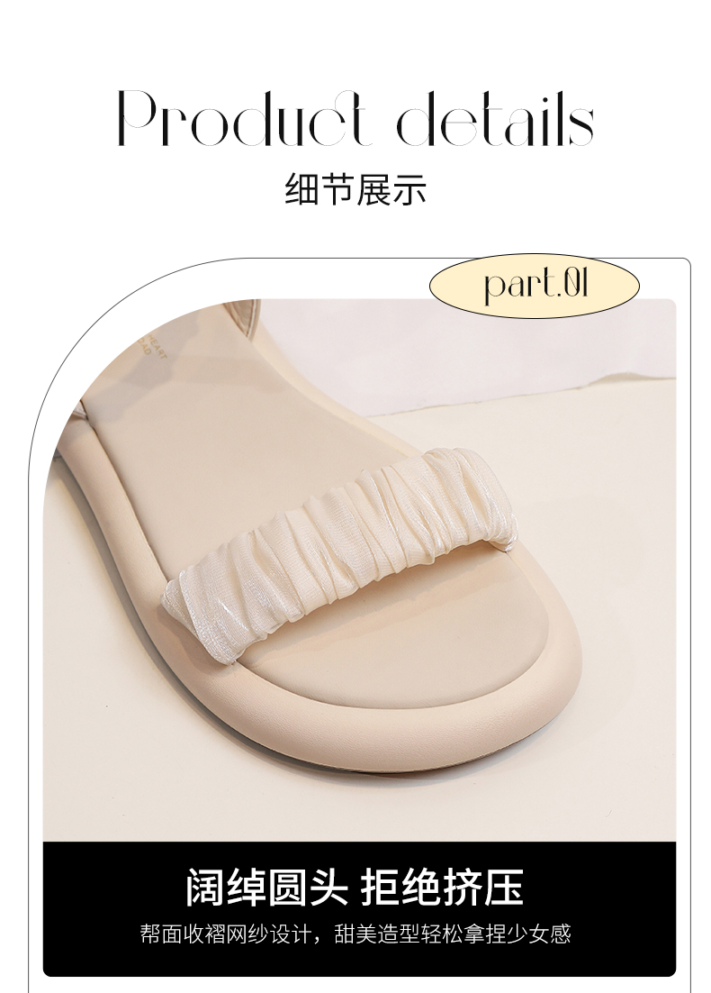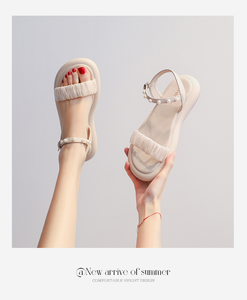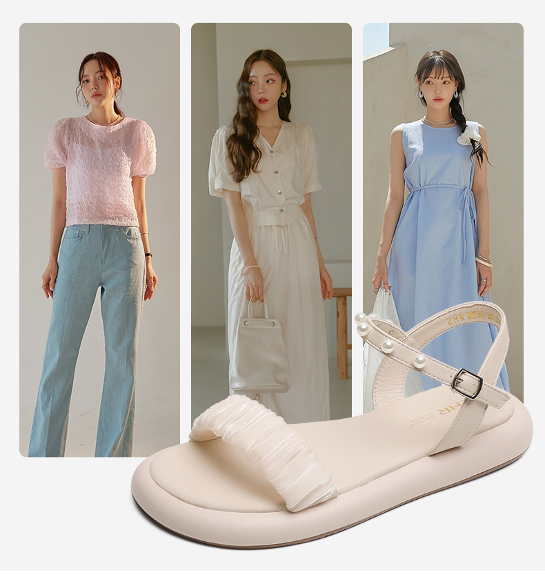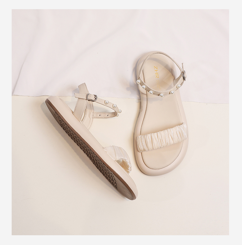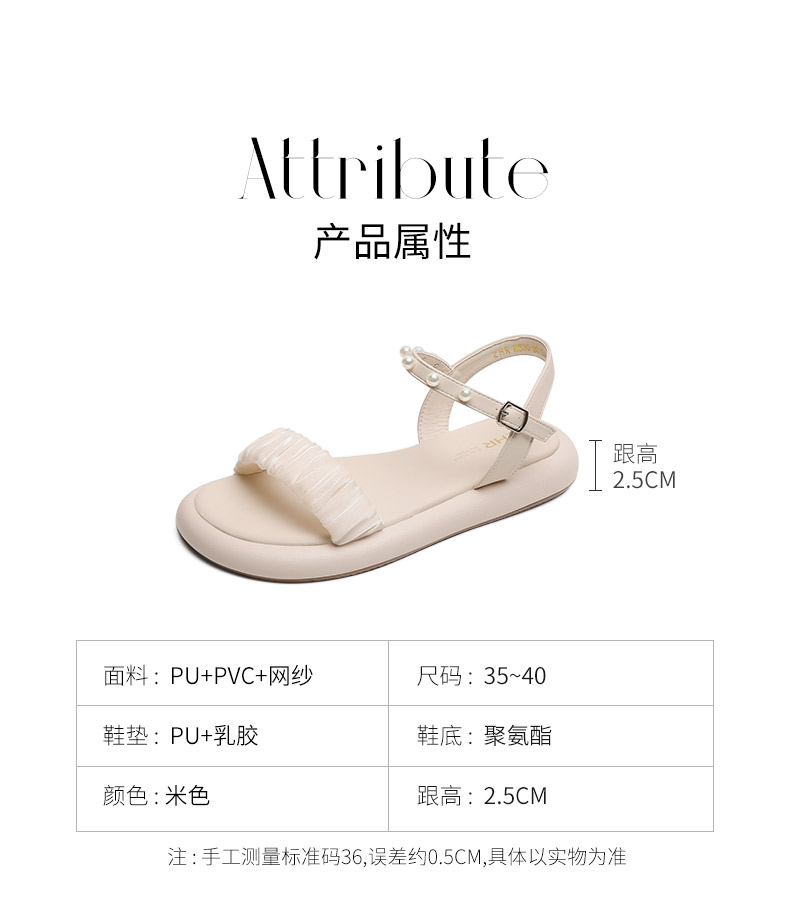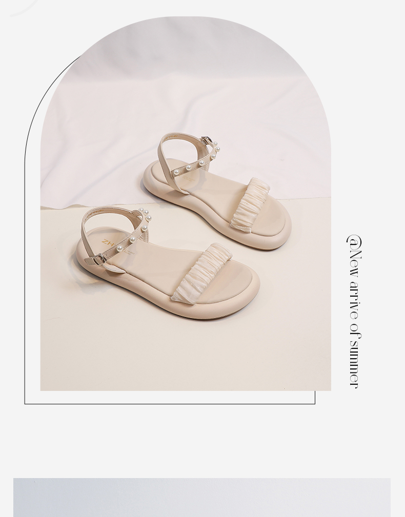 ZHR网纱珍珠凉鞋女2023夏季新款超仙一字带凉鞋甜美温柔气质女鞋
