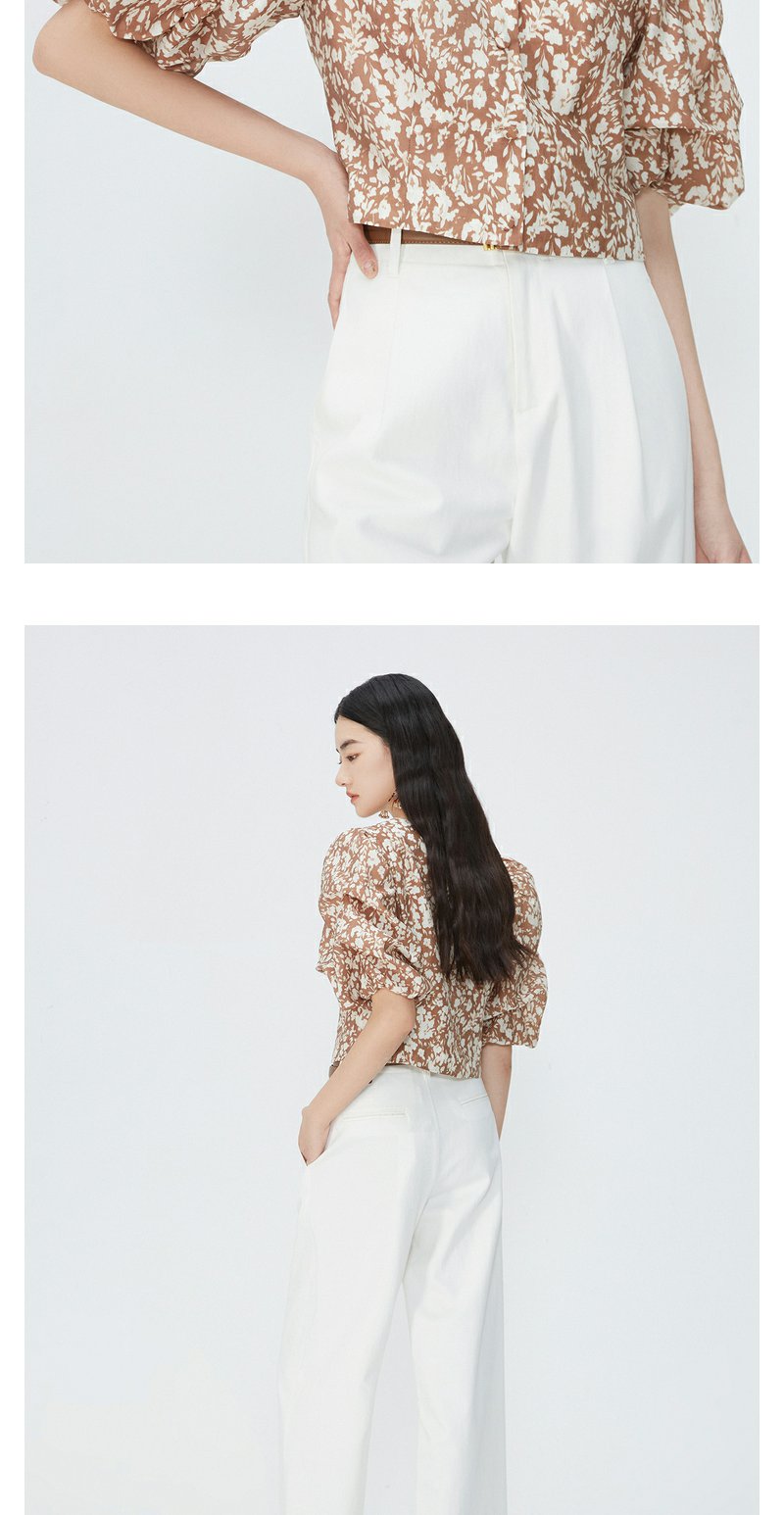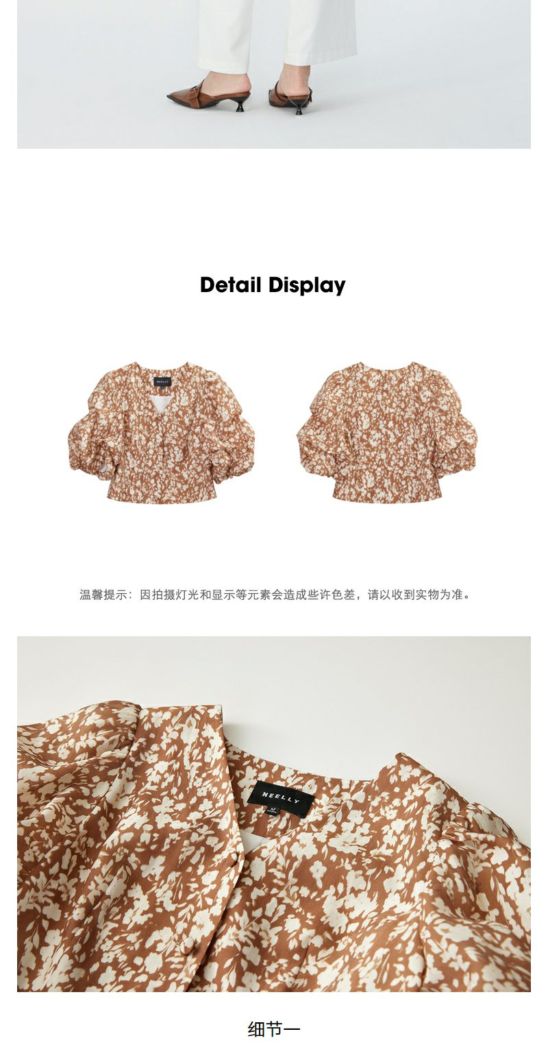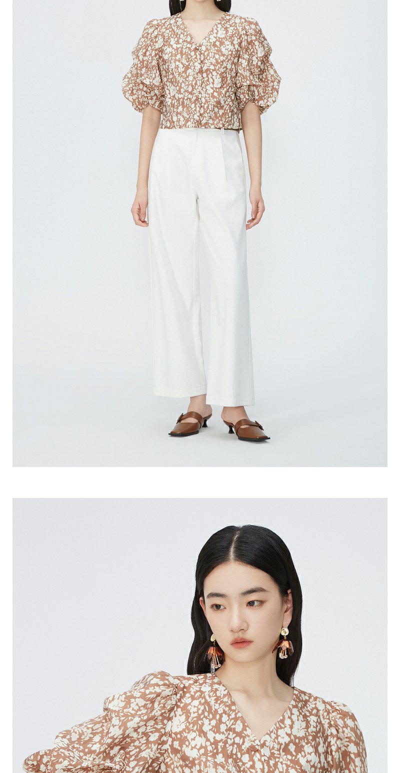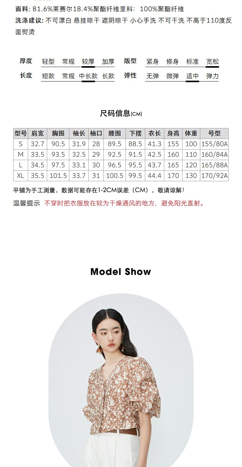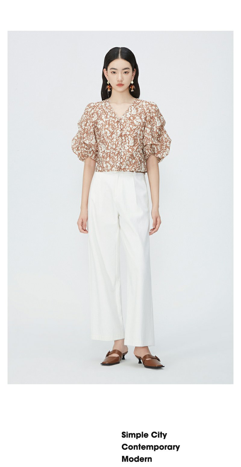 NEELLY纳俪商场同款夏新款泡泡袖V领衬衫女碎花桑蚕丝单排扣上衣N25054B04627