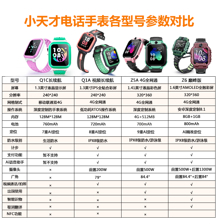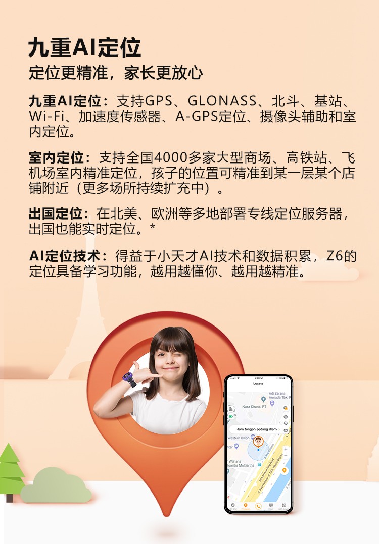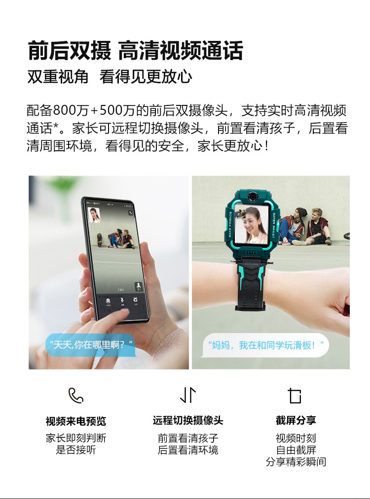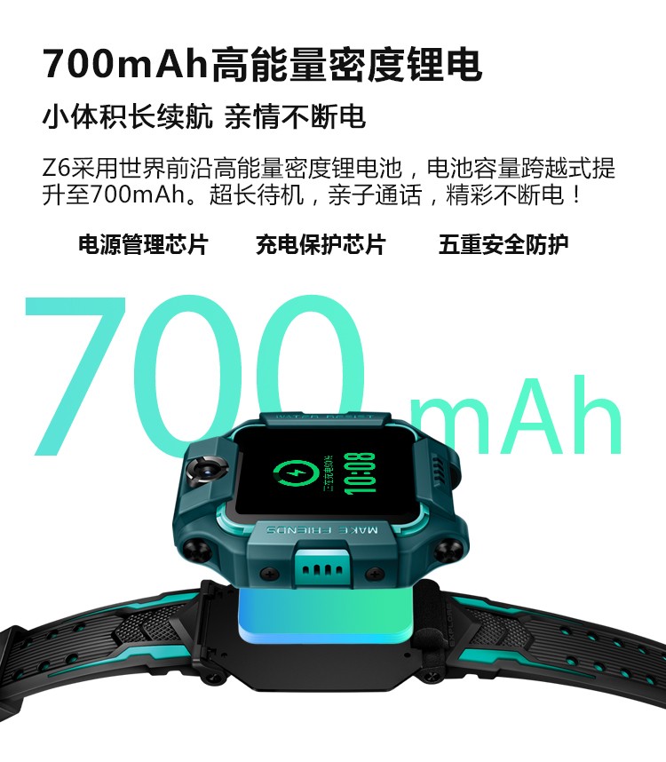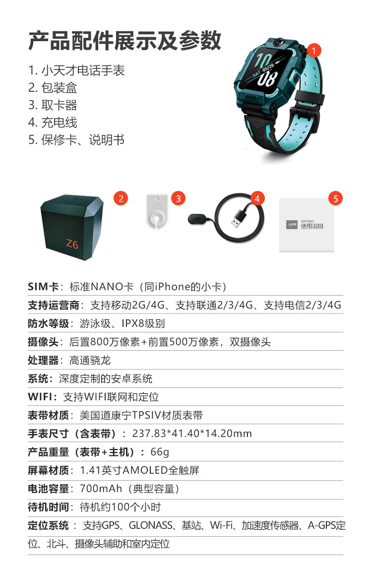 小天才儿童电话手表Z6防水GPS定位智能手表 学生儿童移动联通电信4G视频拍照前后双摄手表手机男女孩闪绿
