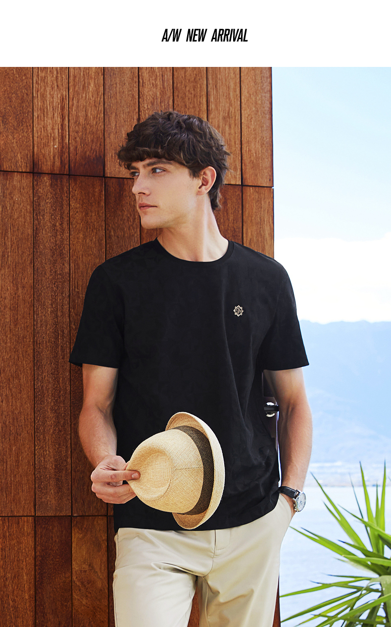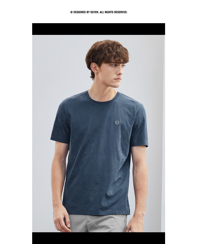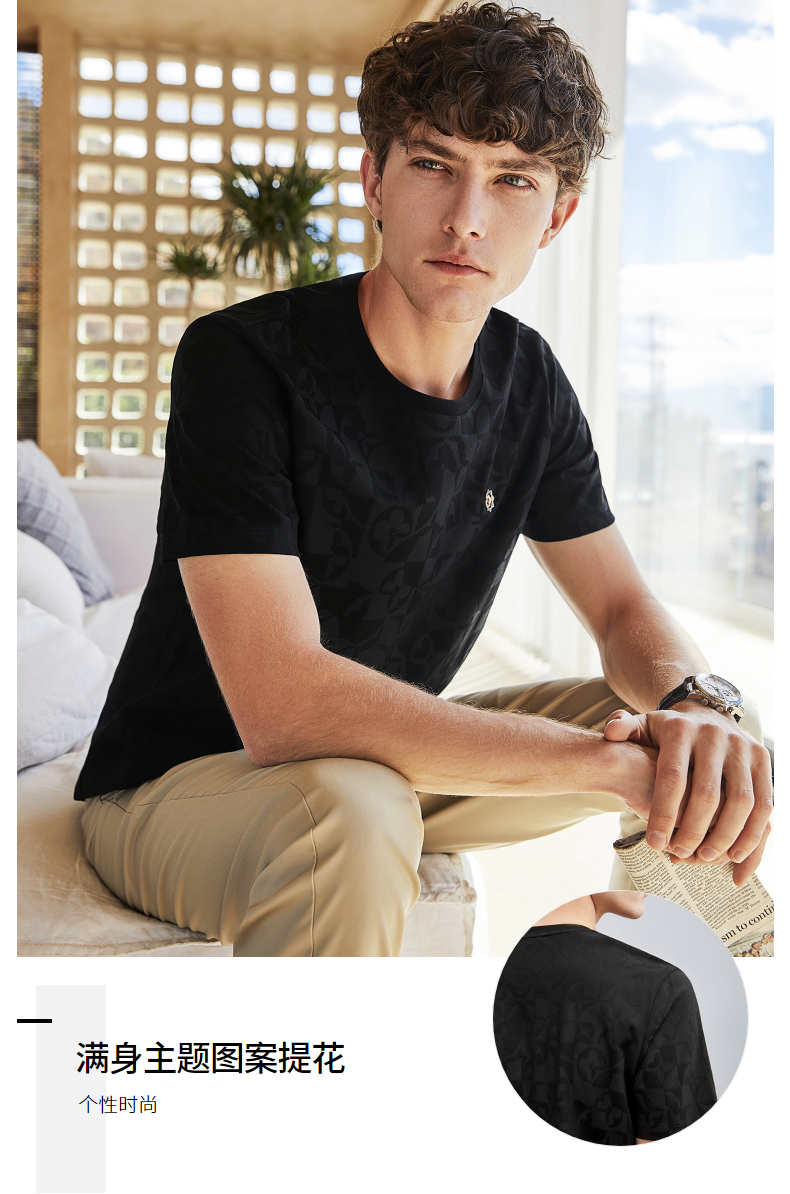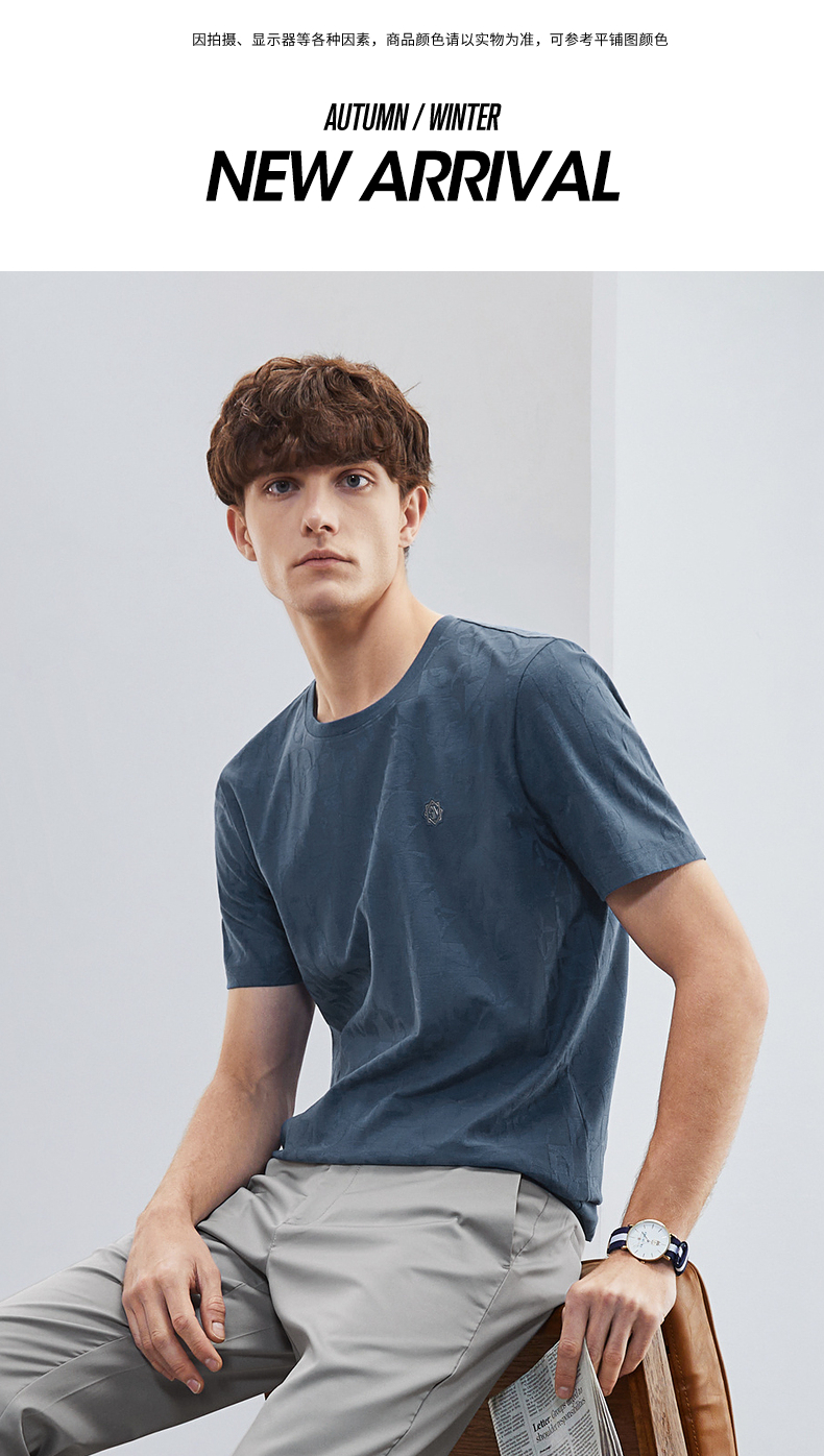 【凉感索罗纳】柒牌短袖t恤男时尚休闲满身提花夏季新款圆领上衣 124T71570