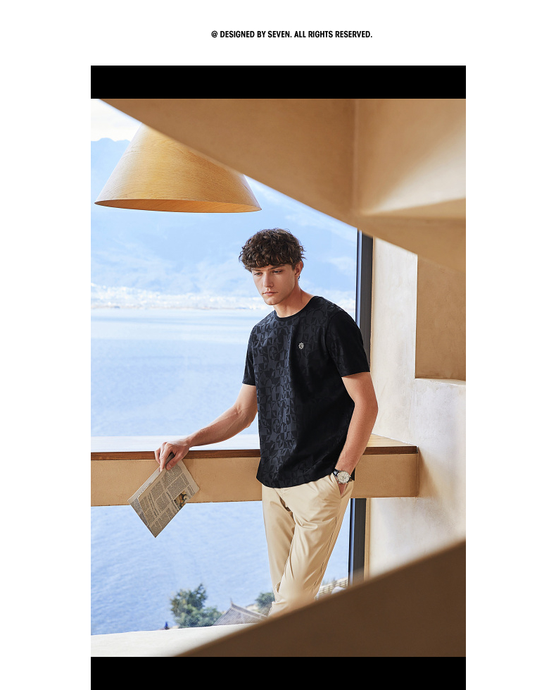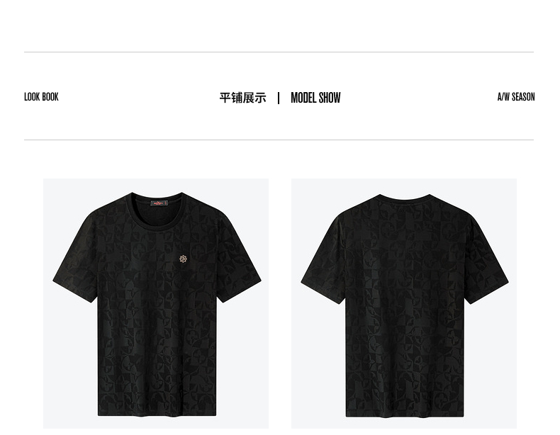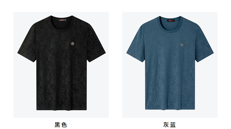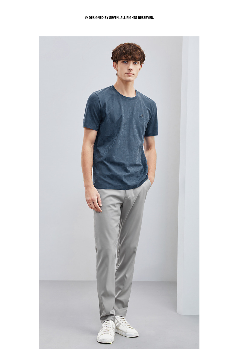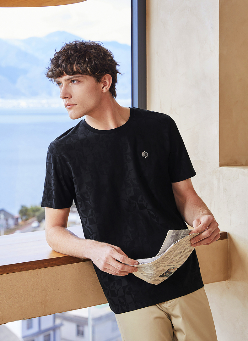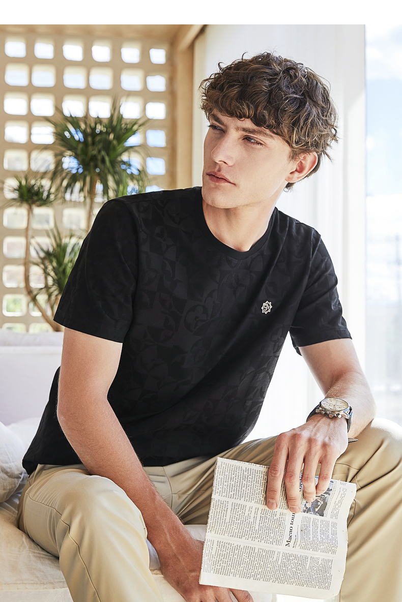 【凉感索罗纳】柒牌短袖t恤男时尚休闲满身提花夏季新款圆领上衣 124T71570