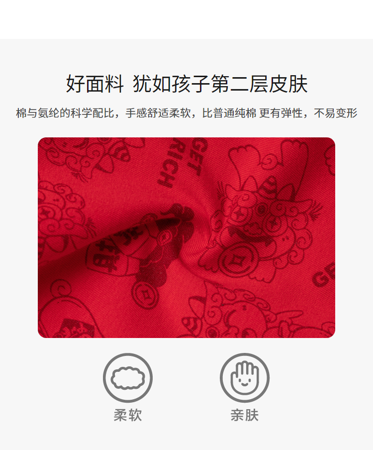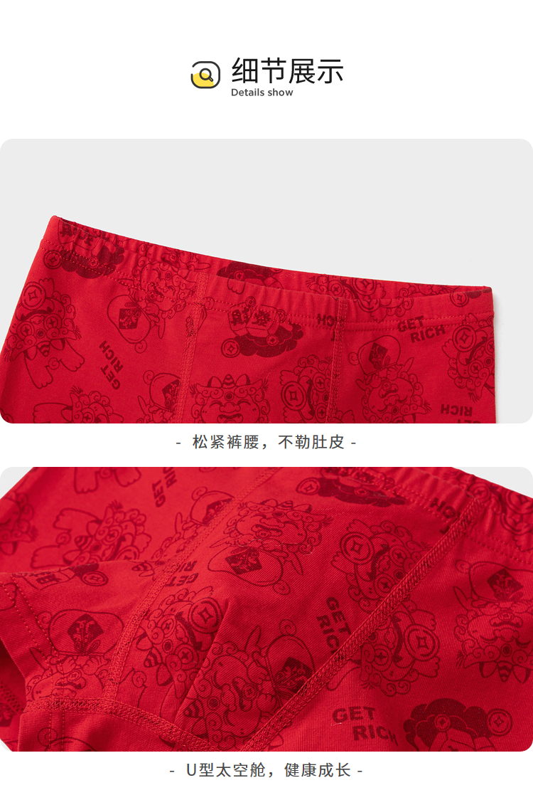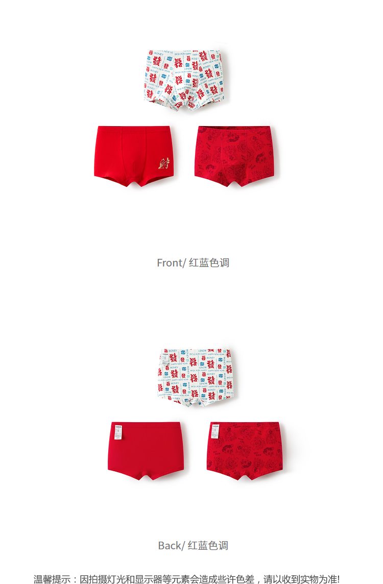 【品牌优选】巴拉巴拉男童内裤平角棉本命年红色儿童短裤四角蛇年新年款三条装