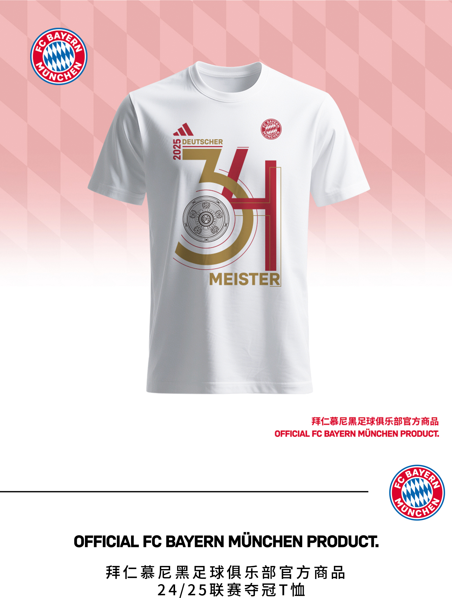 【官网同款】拜仁慕尼黑足球俱乐部丨24/25联赛夺冠T恤白色印花短袖德甲纪念款