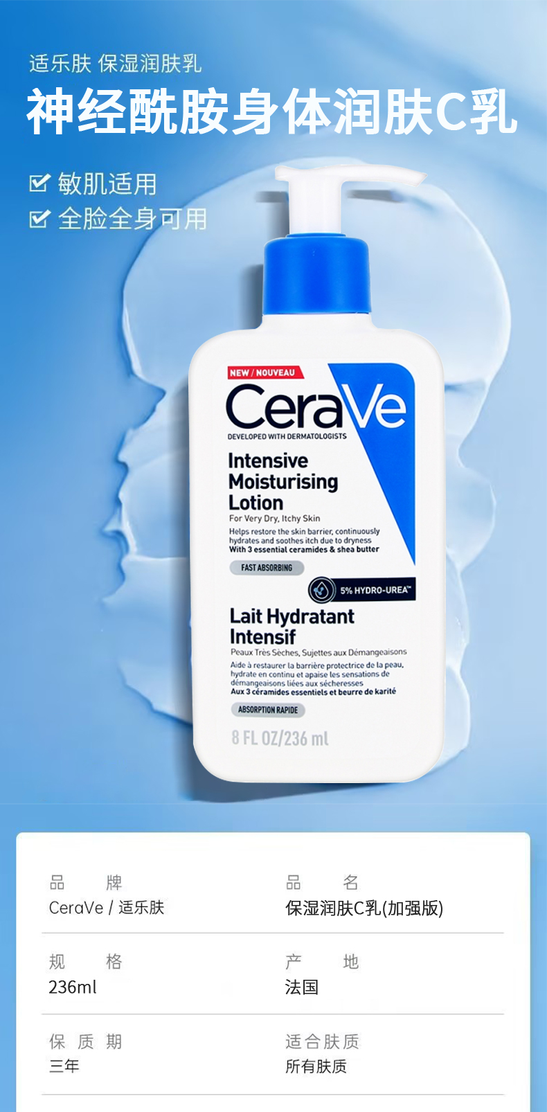 新包装加强版!Cerave适乐肤神经酰胺身体润肤乳236ml 修复屏障