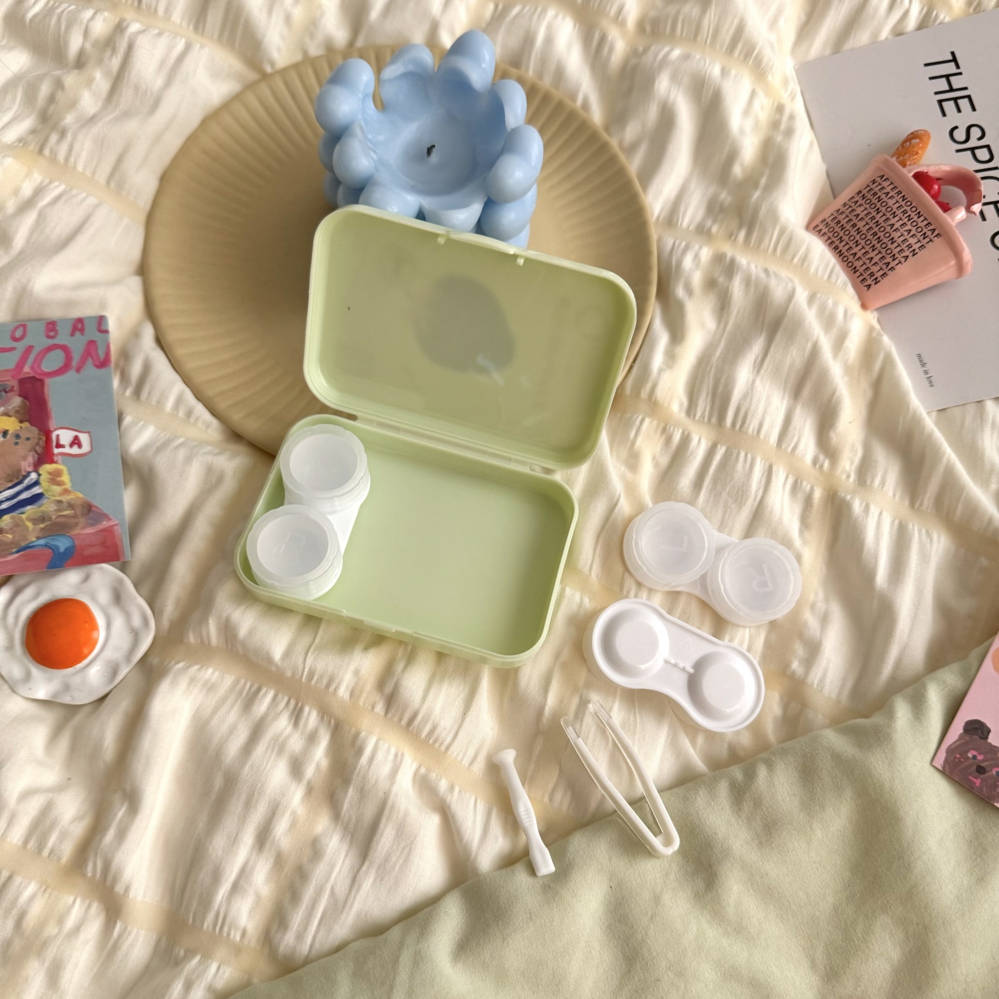 伴侣盒套装组成:双联盒、镊子 ,配戴棒。