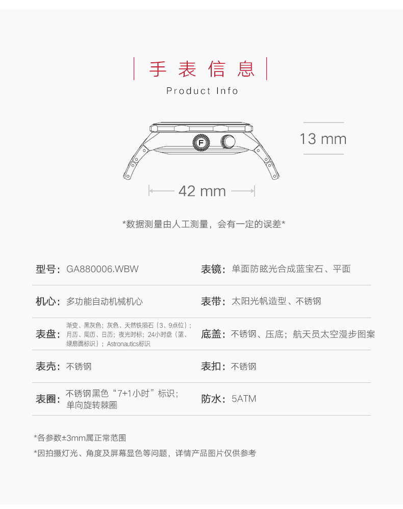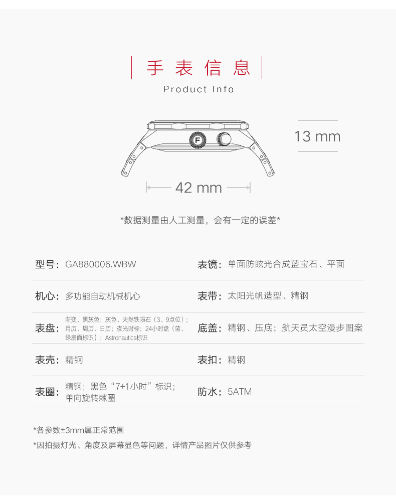飞亚达航天系列“小神七”机械男表GA880006.WBW
