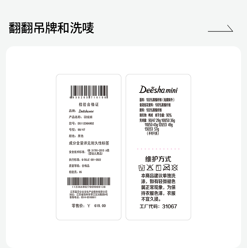 笛莎Deesha 童装女童羽绒裤2023冬季新款宝宝保暖加厚羽绒裤