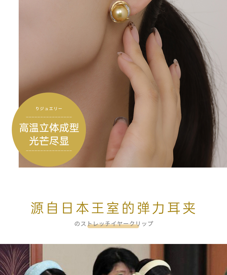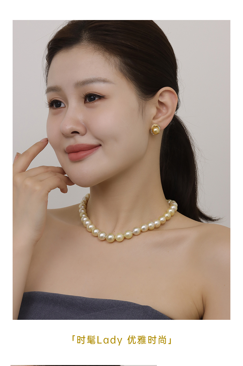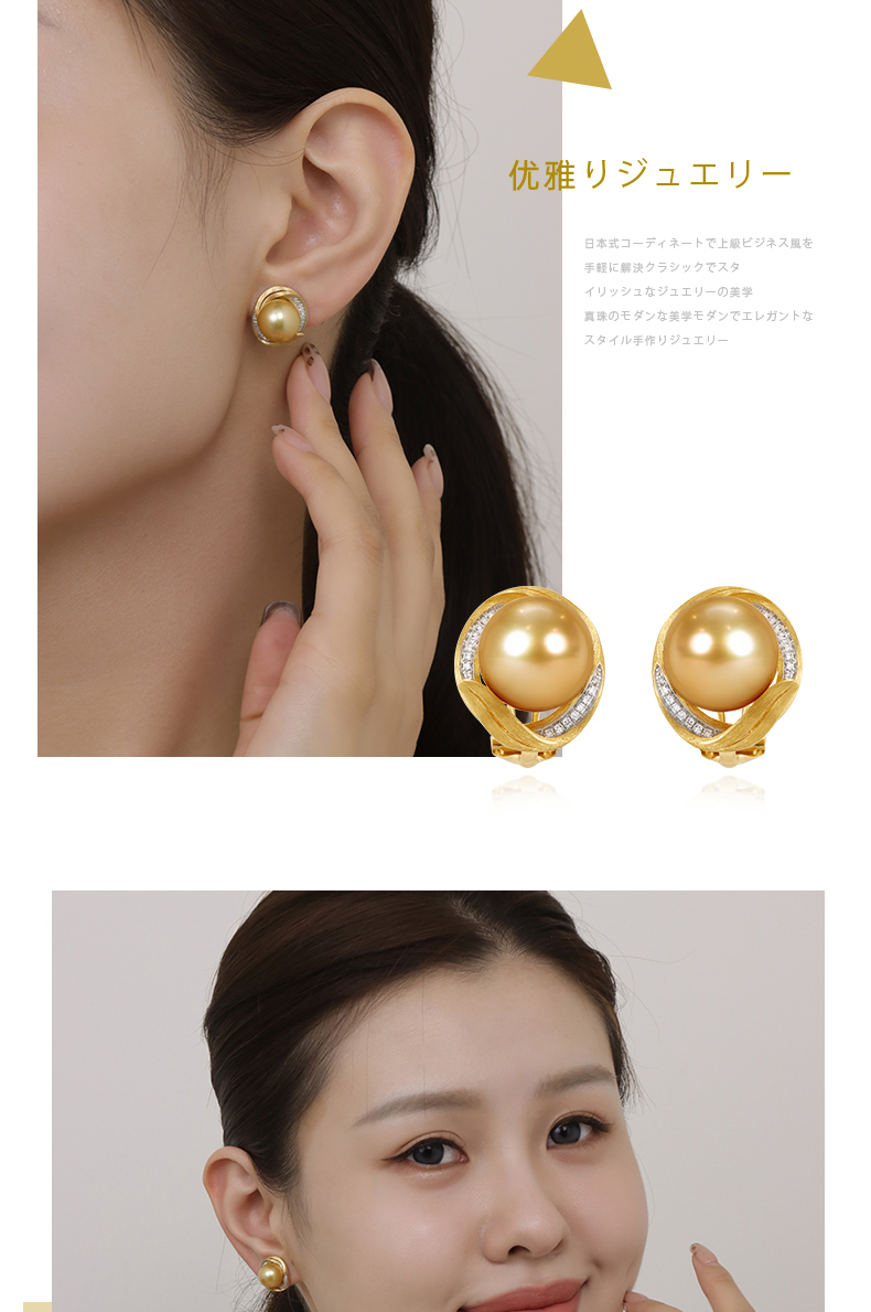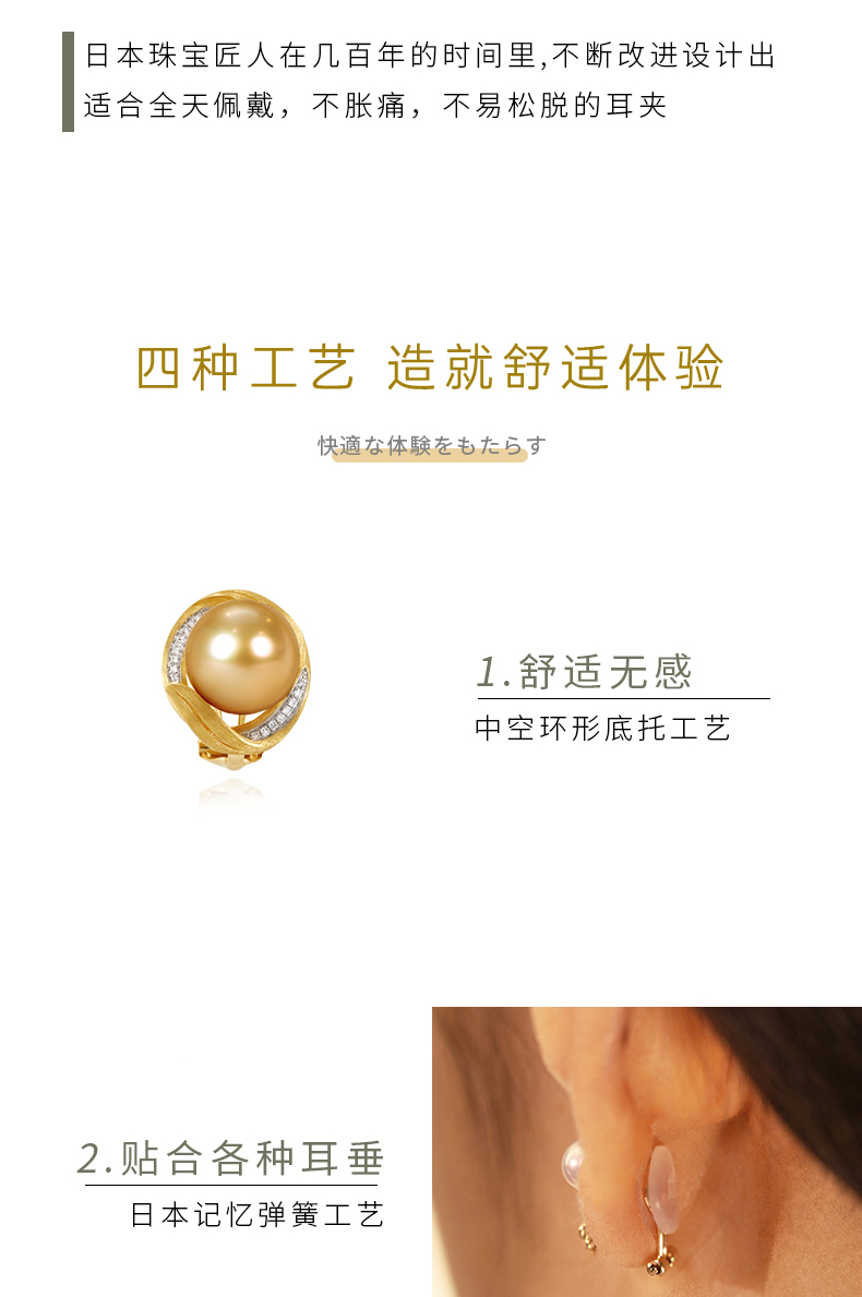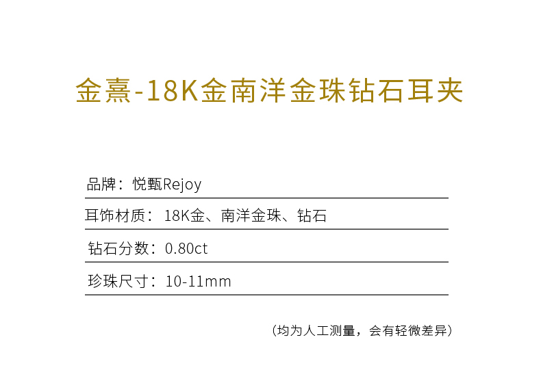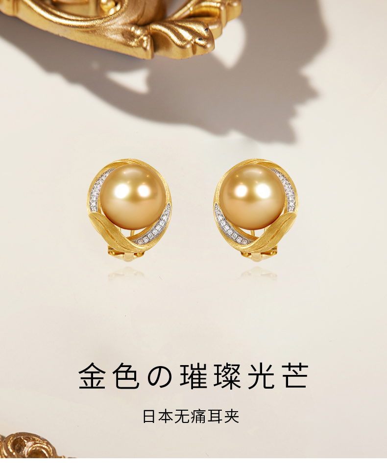 【天猫同款】金熹-18K金南洋金珠钻石耳夹10-11mm
