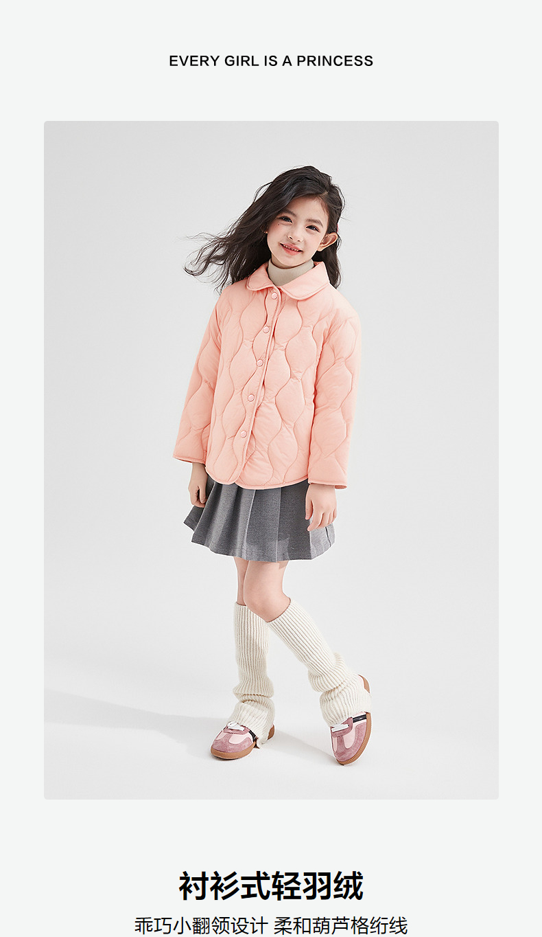 笛莎Deesha 童装女童羽绒服2025冬新款女童衬衫式轻羽绒