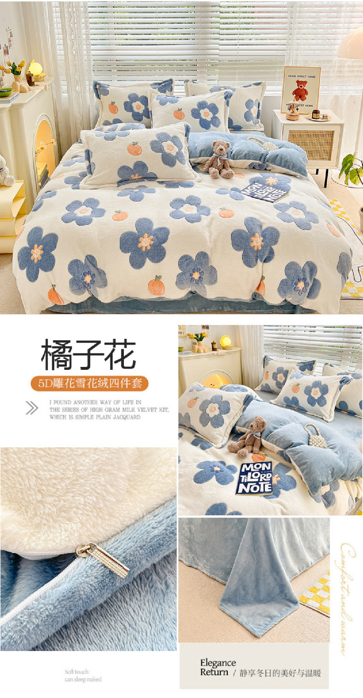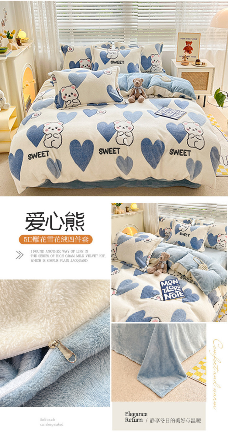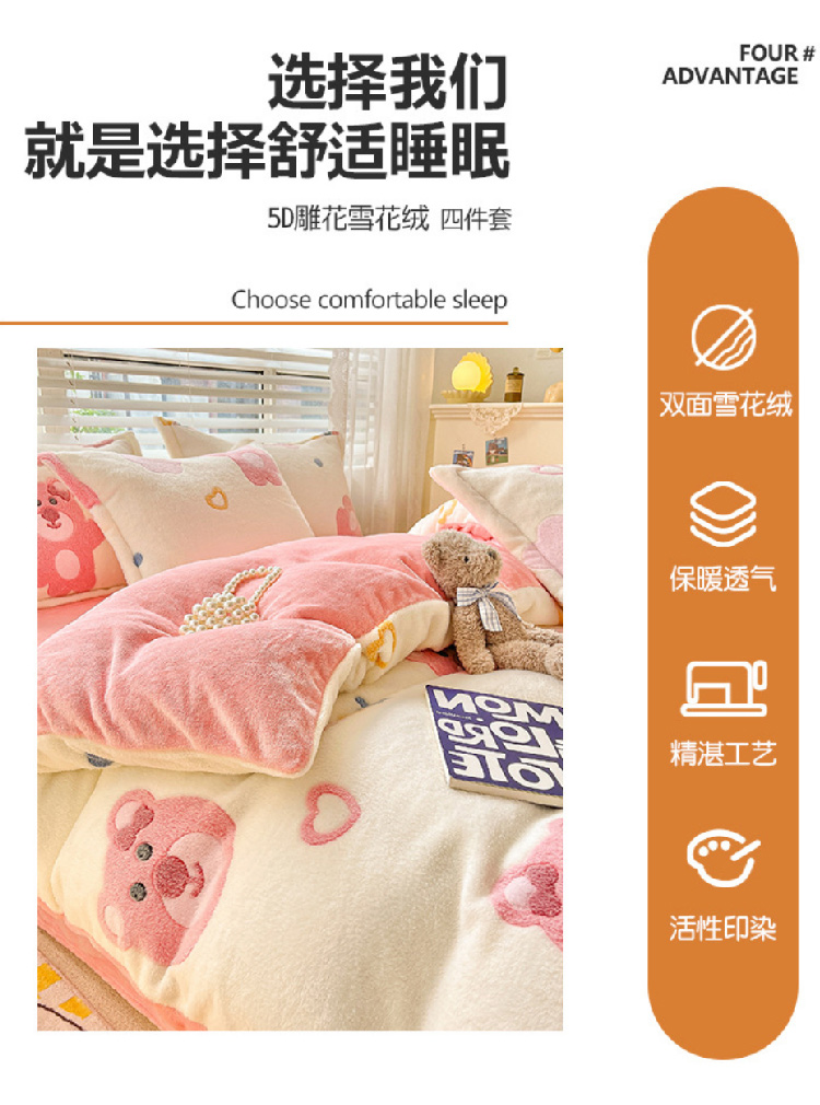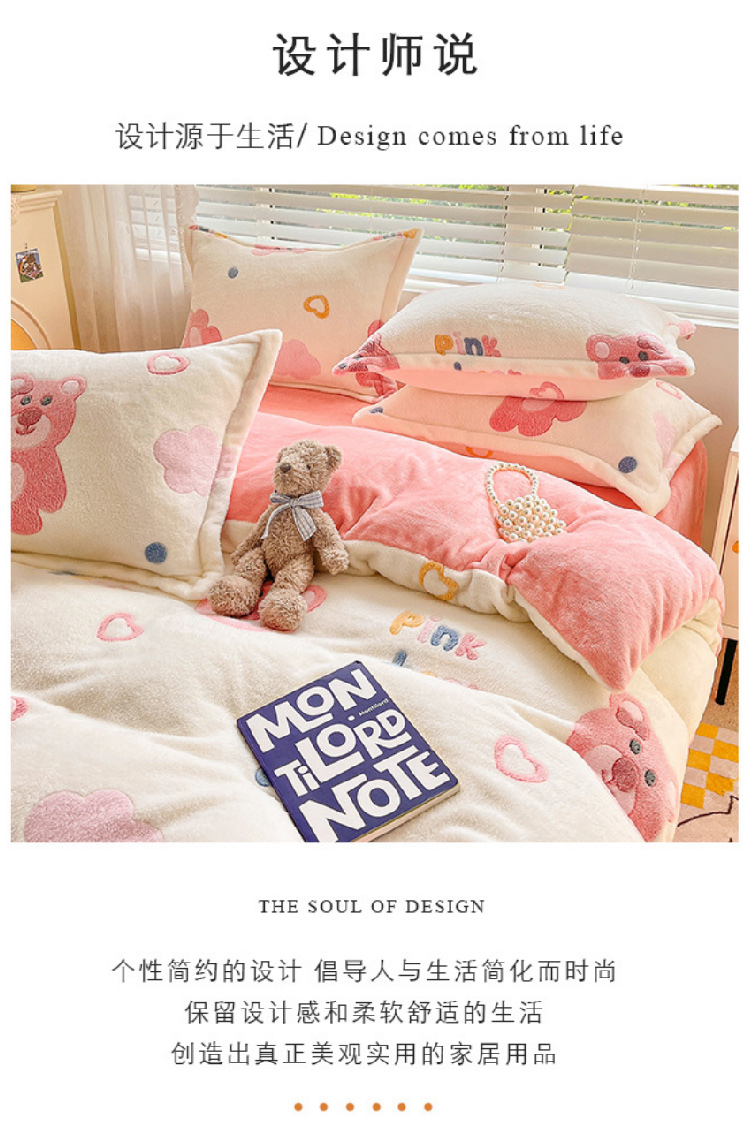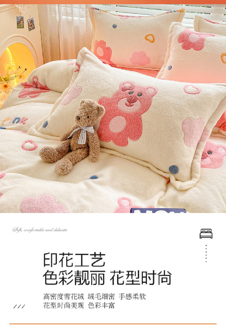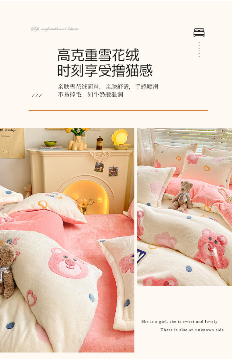 【牛奶绒四件套】冬季加绒加厚床上四件套 双面绒加厚枕套被套可爱迷人雪花绒