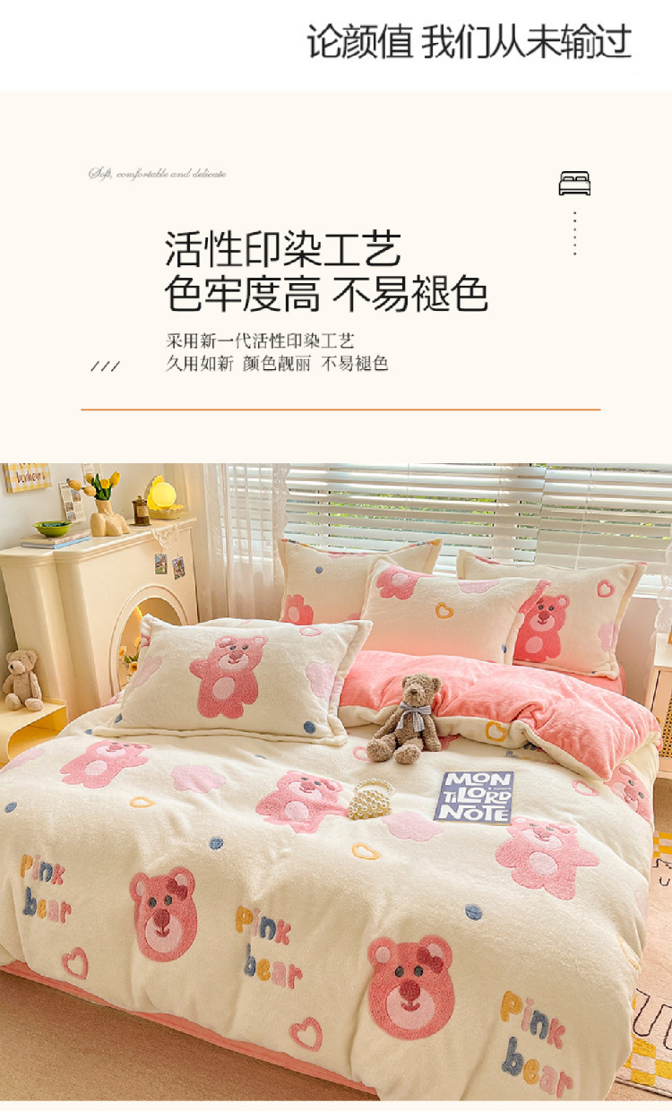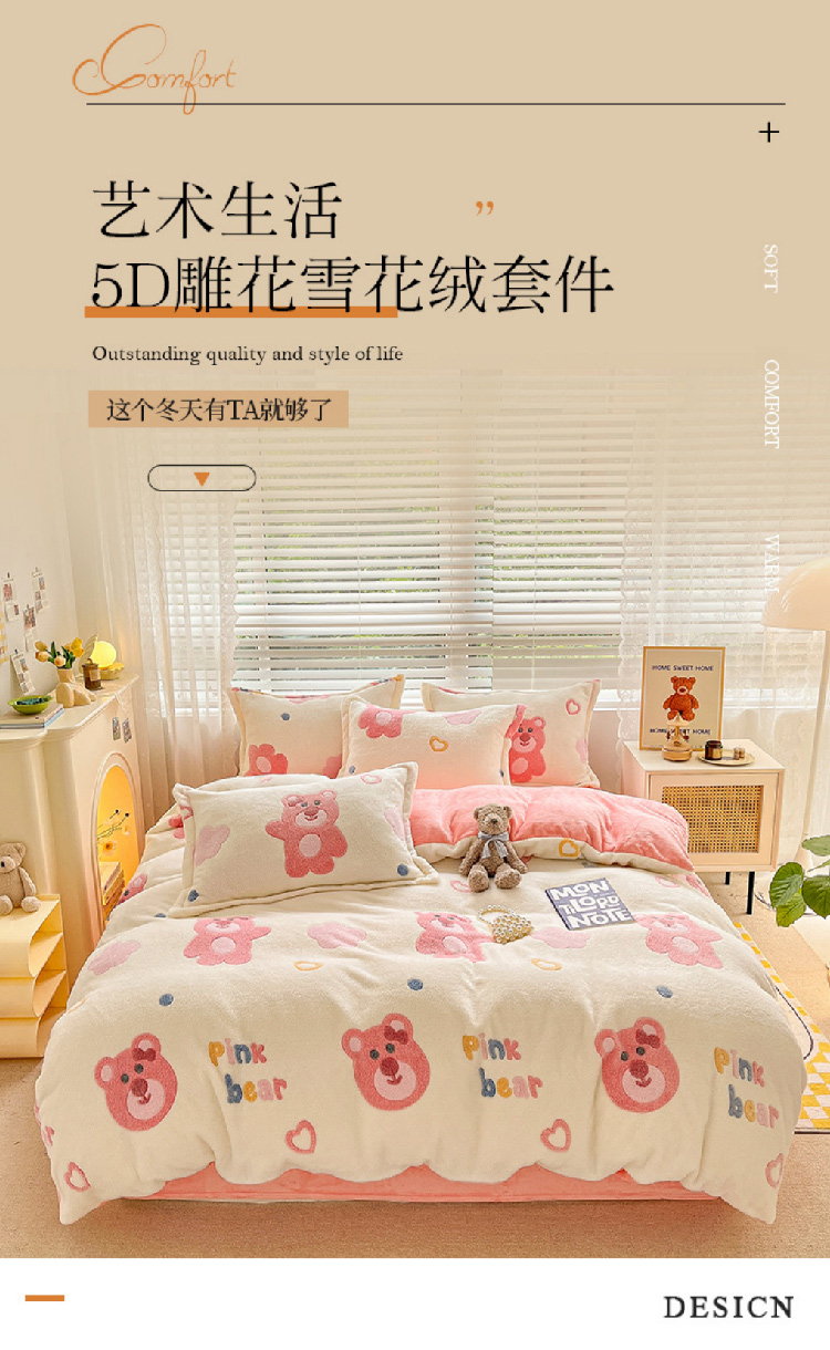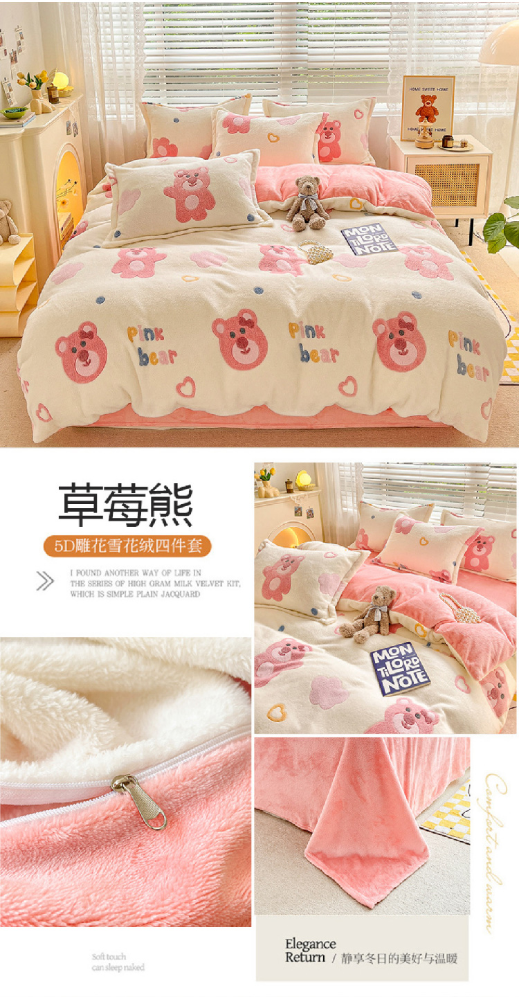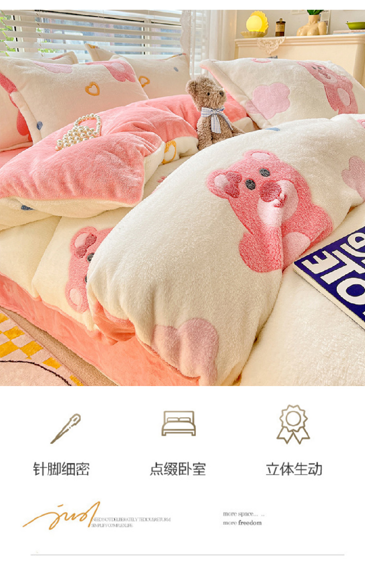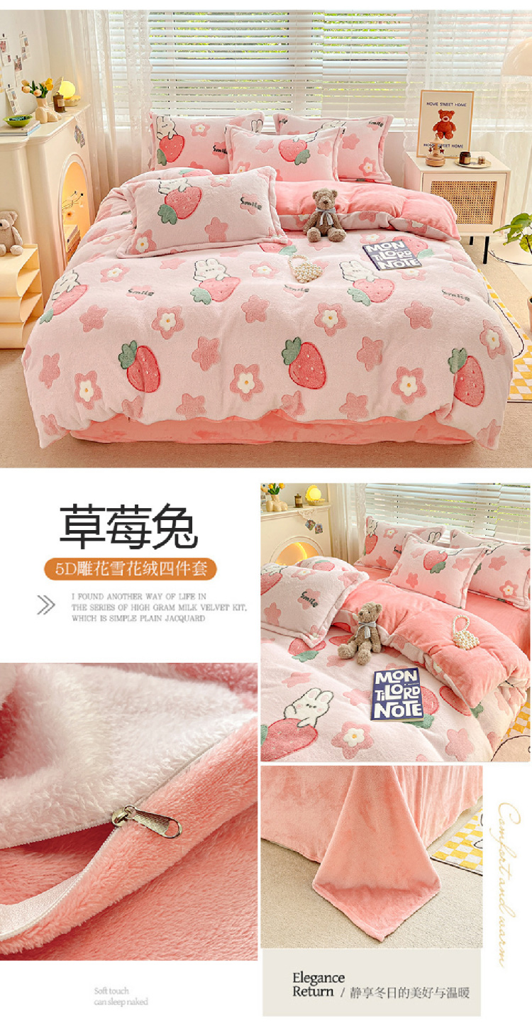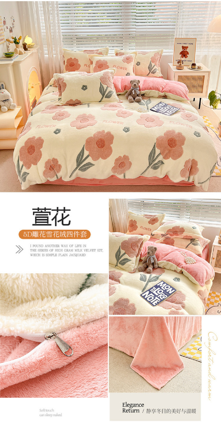 【牛奶绒四件套】冬季加绒加厚床上四件套 双面绒加厚枕套被套可爱迷人雪花绒