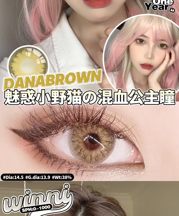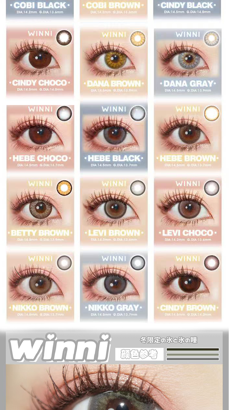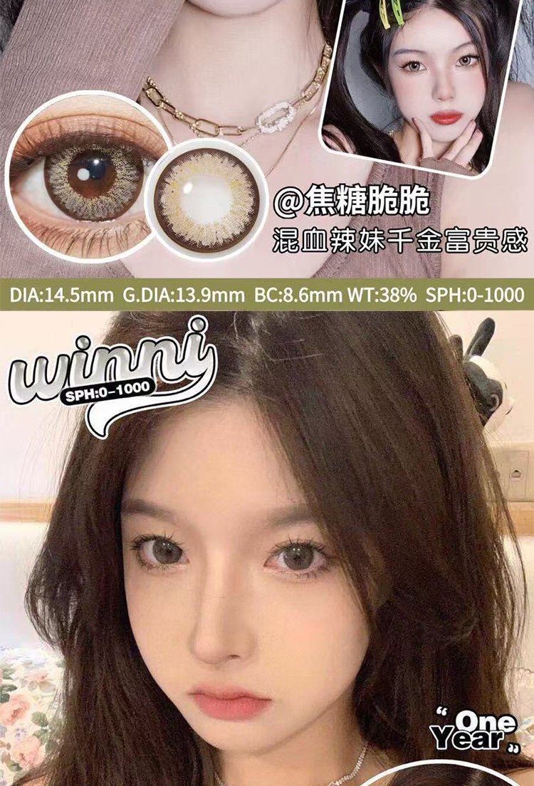 【年抛】winni新品上市 直径14.5/14.2 1片/盒(度数不同请拍两盒)