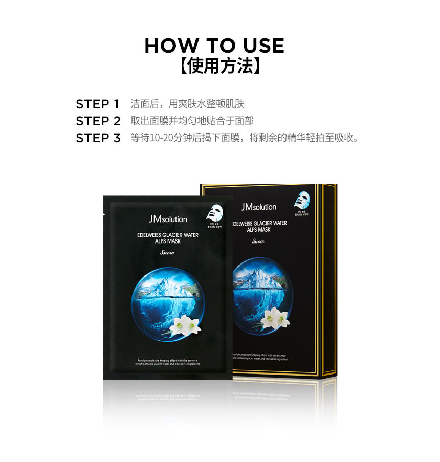【预售】JMsolution肌司研雪绒花阿尔卑斯冰川水面膜 30ml×10片 原价100元
