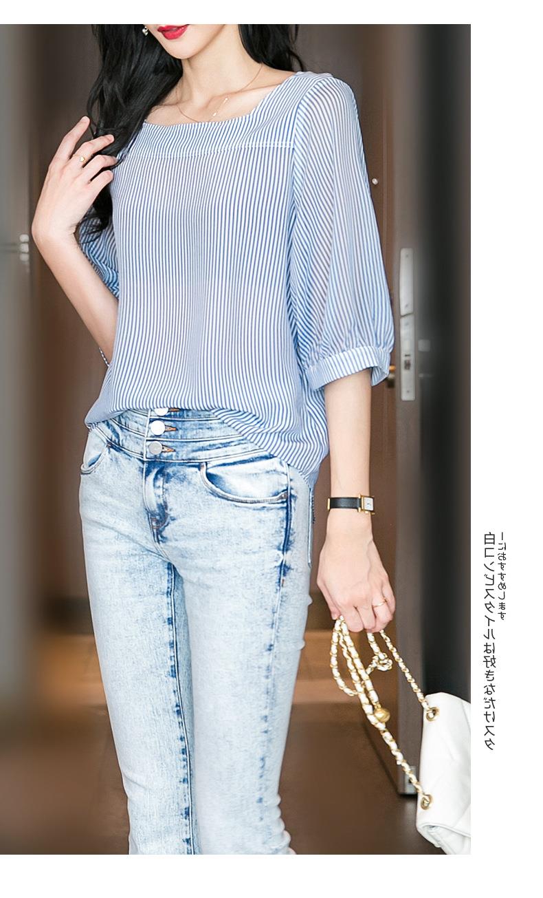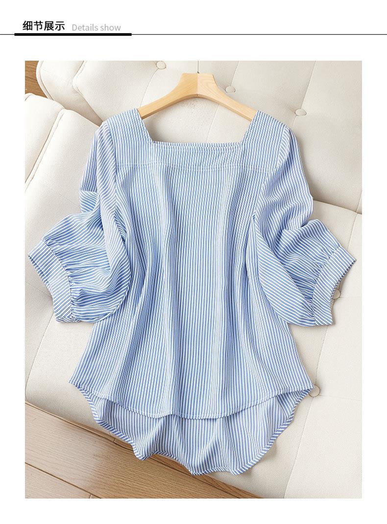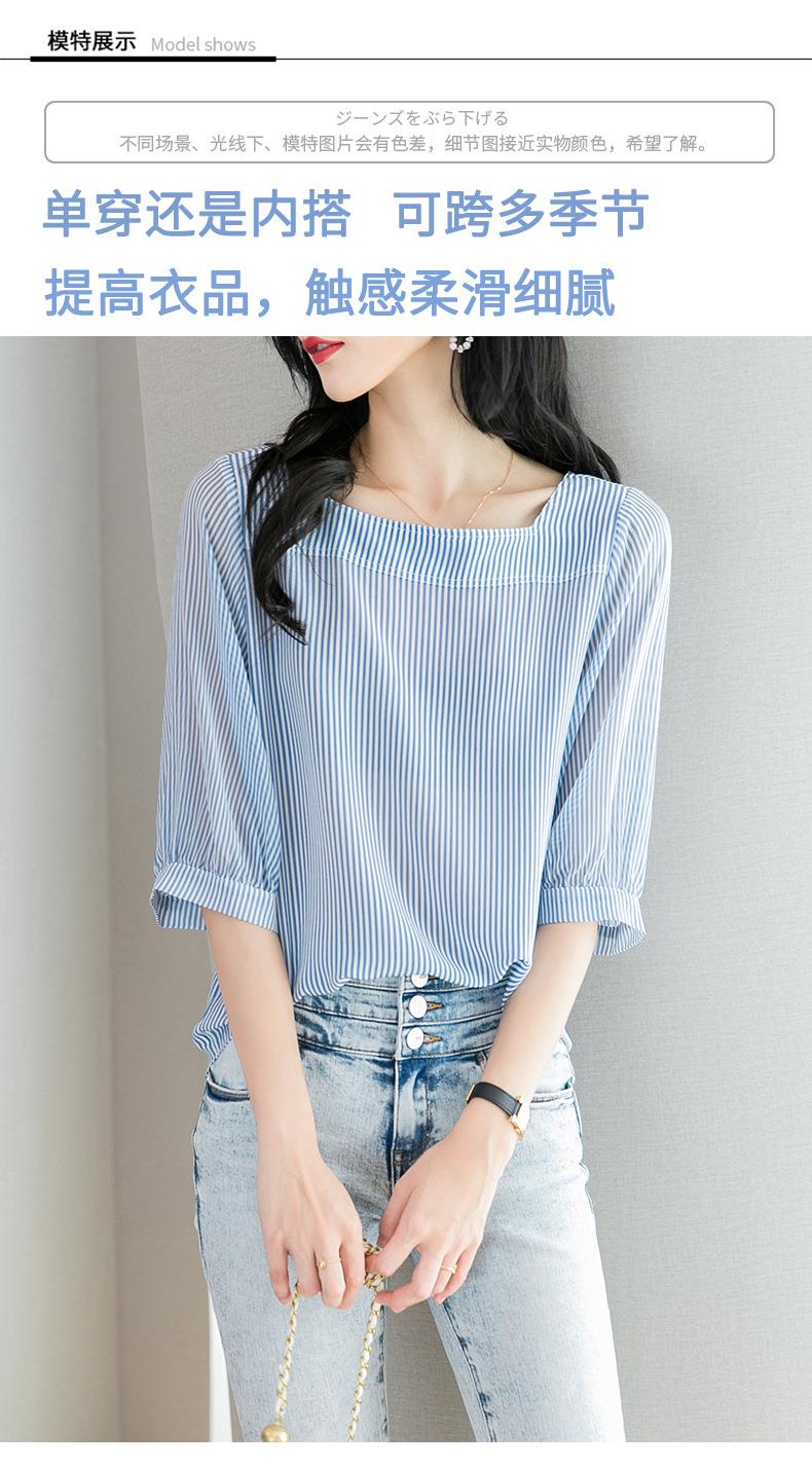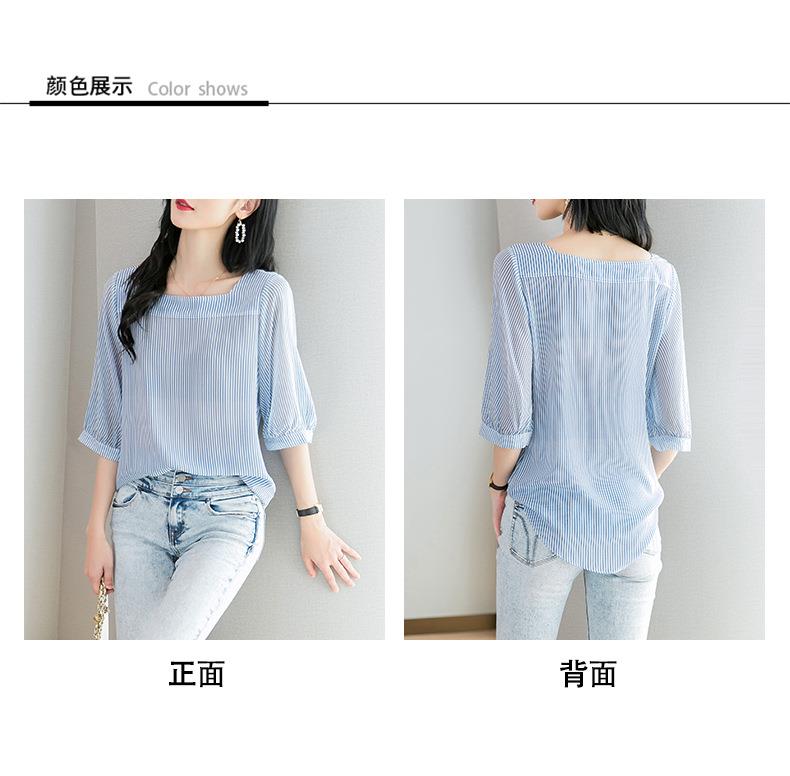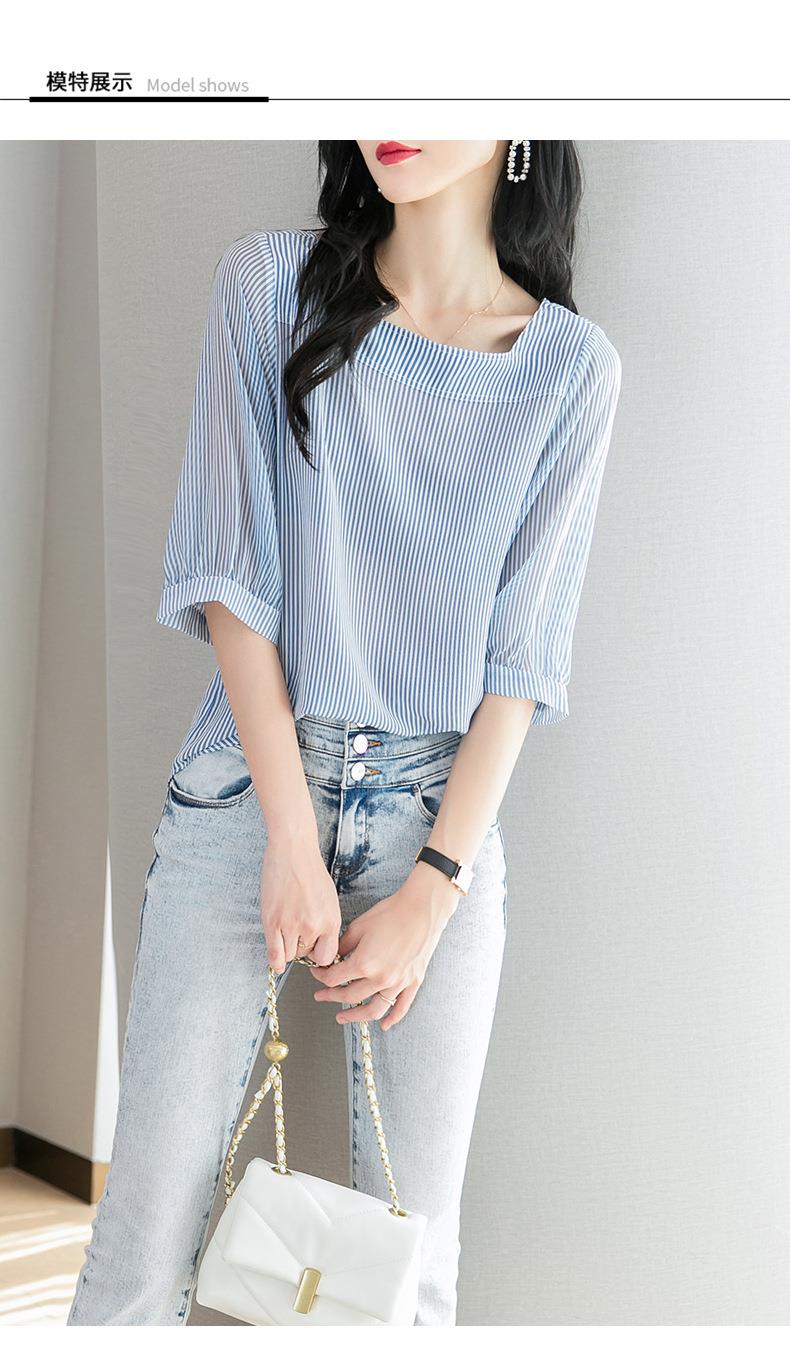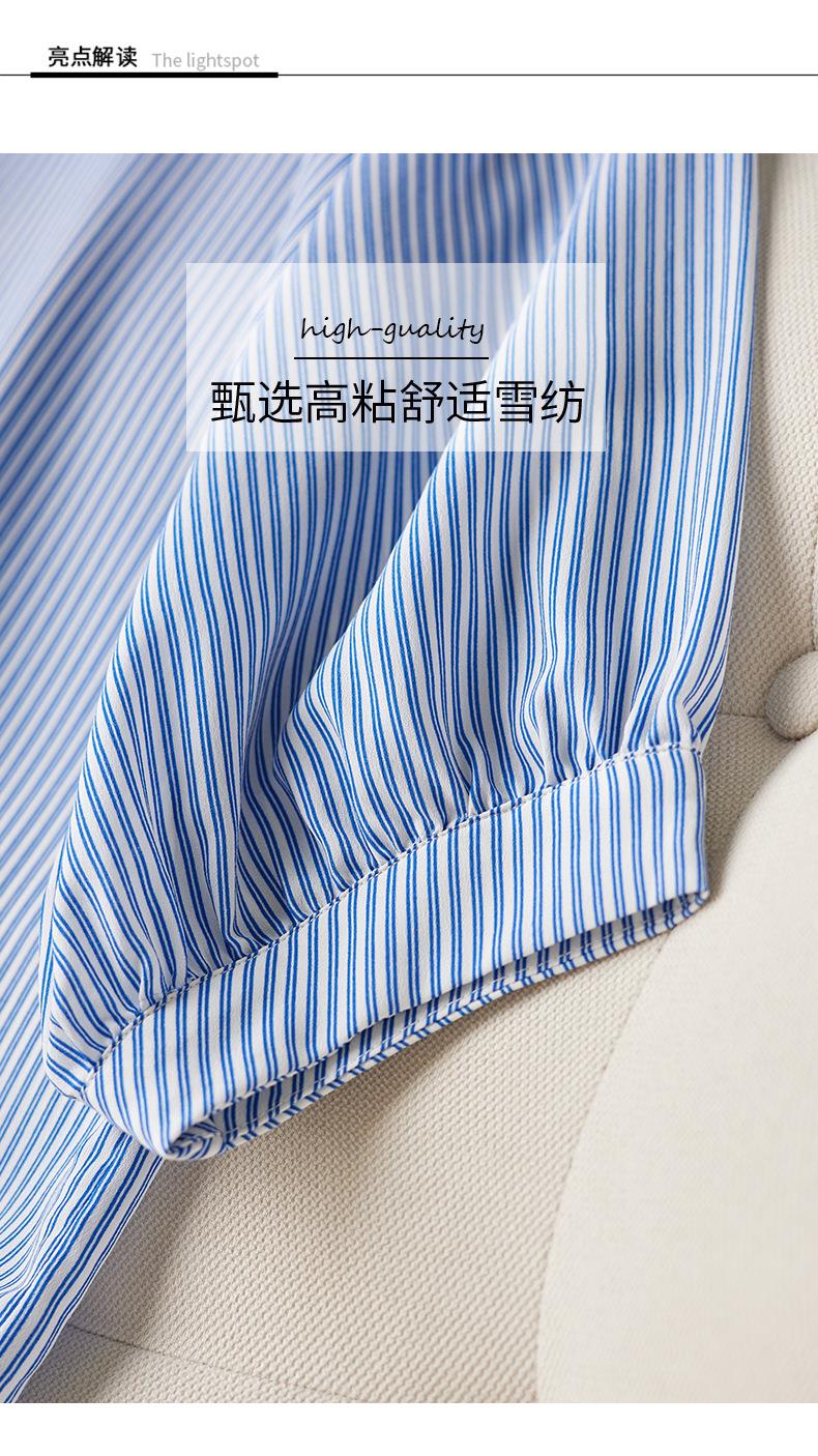 2023夏季新款衬衫女短袖韩版大码雪纺衫上衣条纹T恤1801