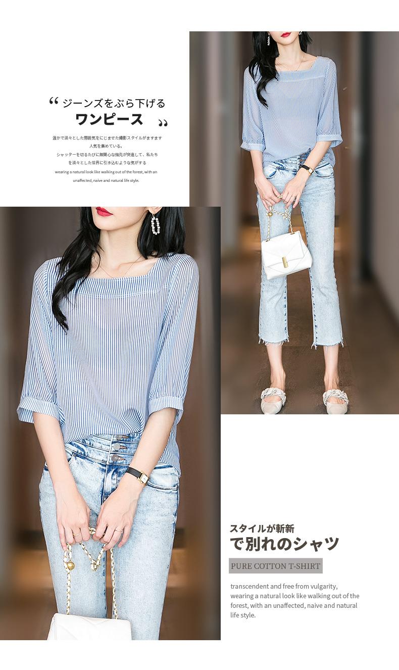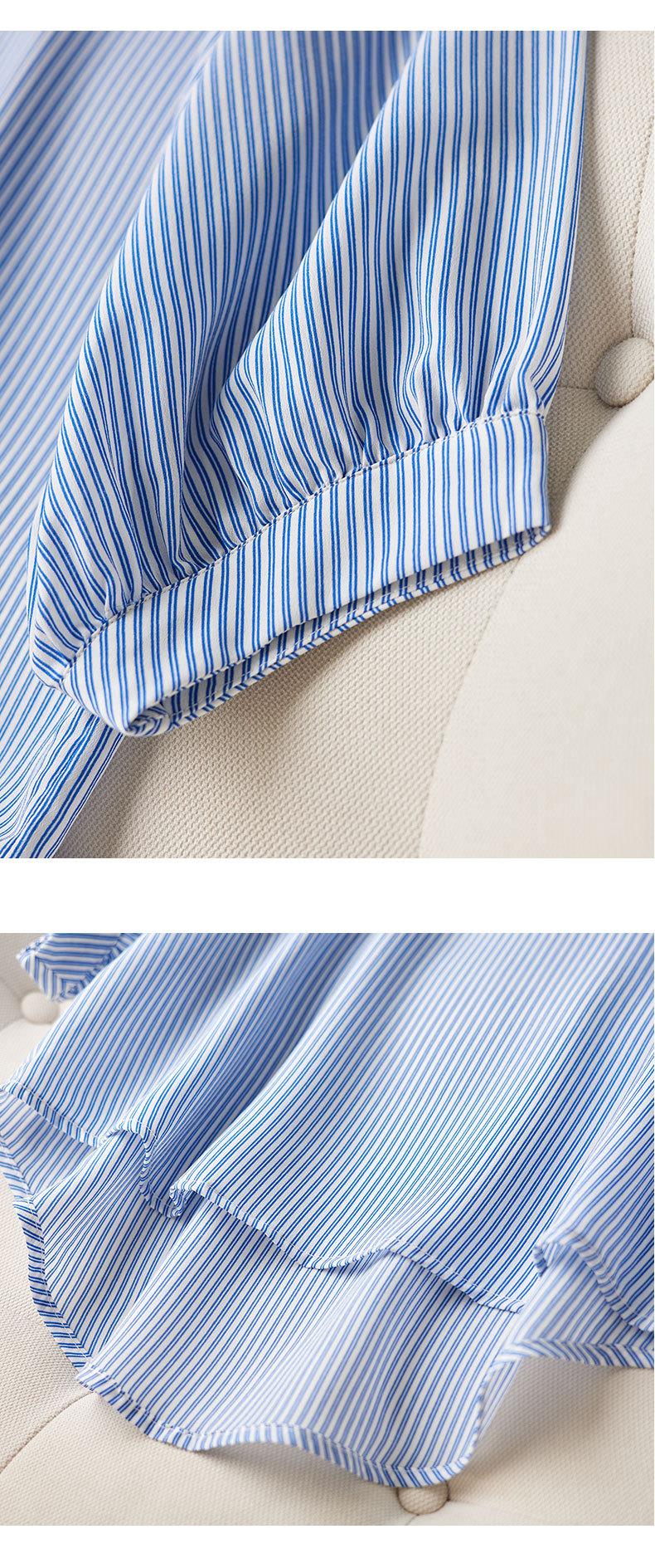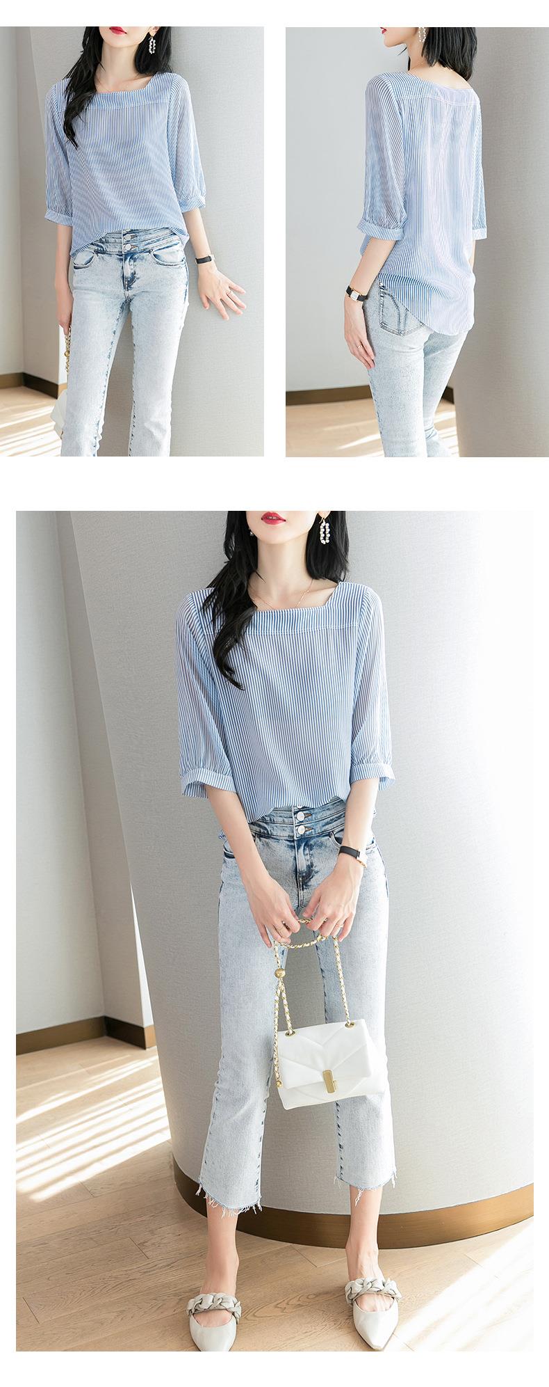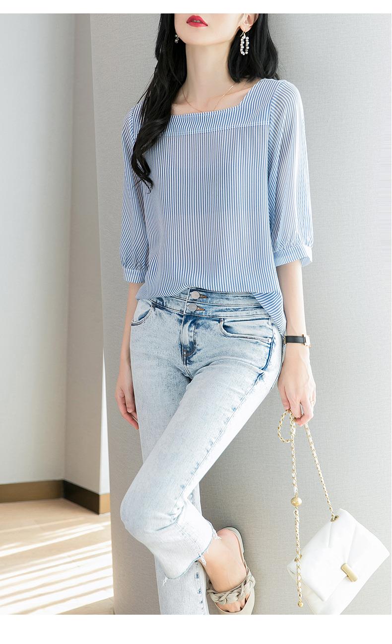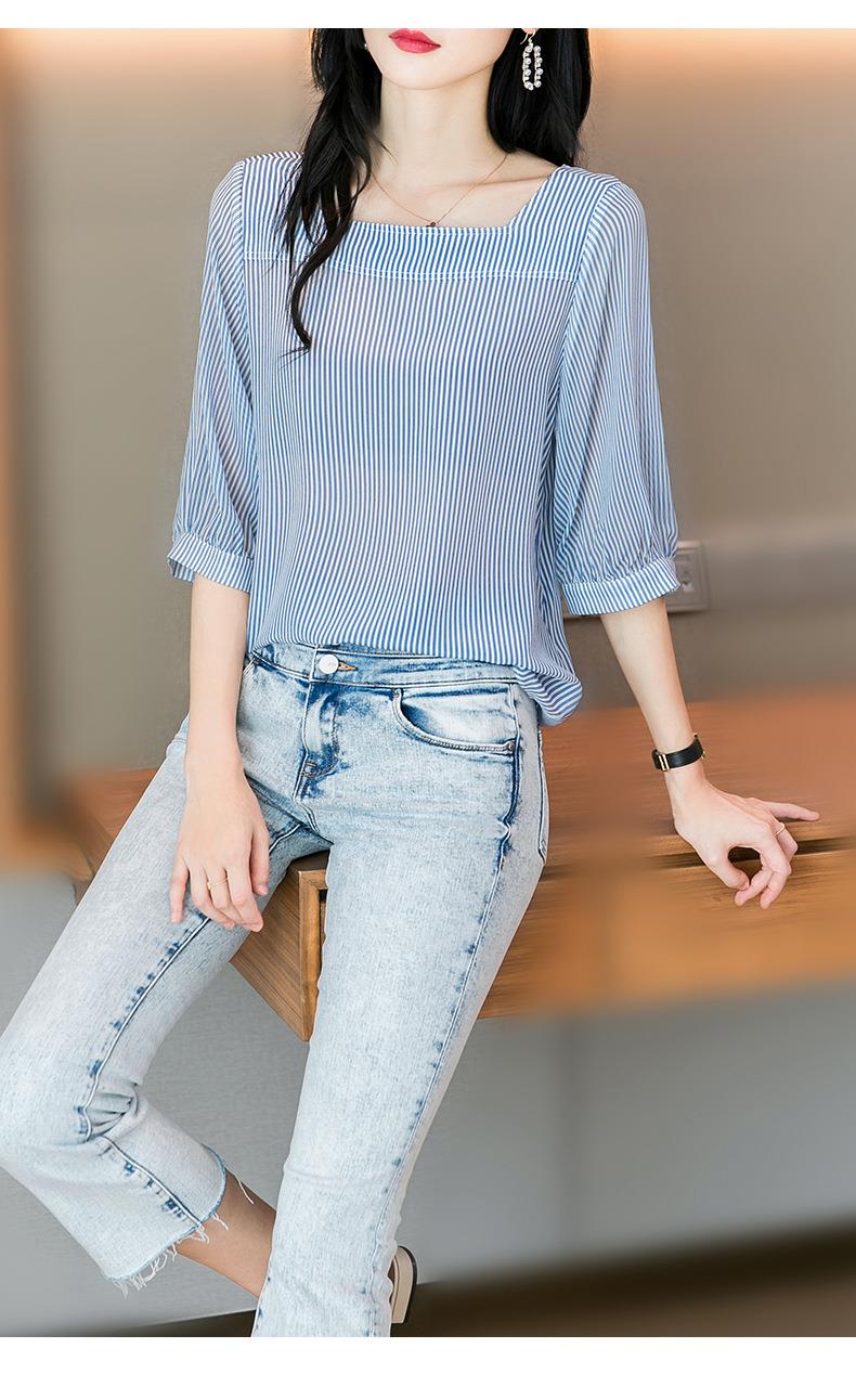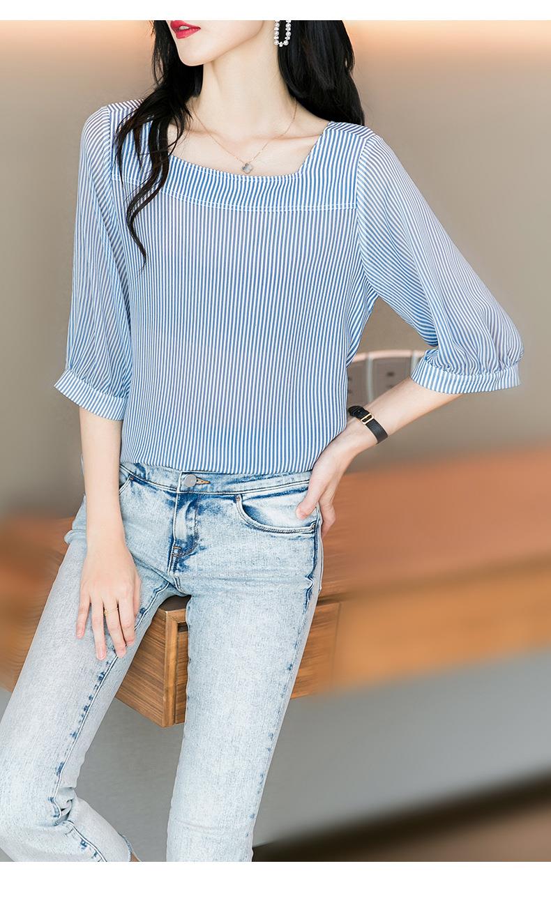 2023夏季新款衬衫女短袖韩版大码雪纺衫上衣条纹T恤1801
