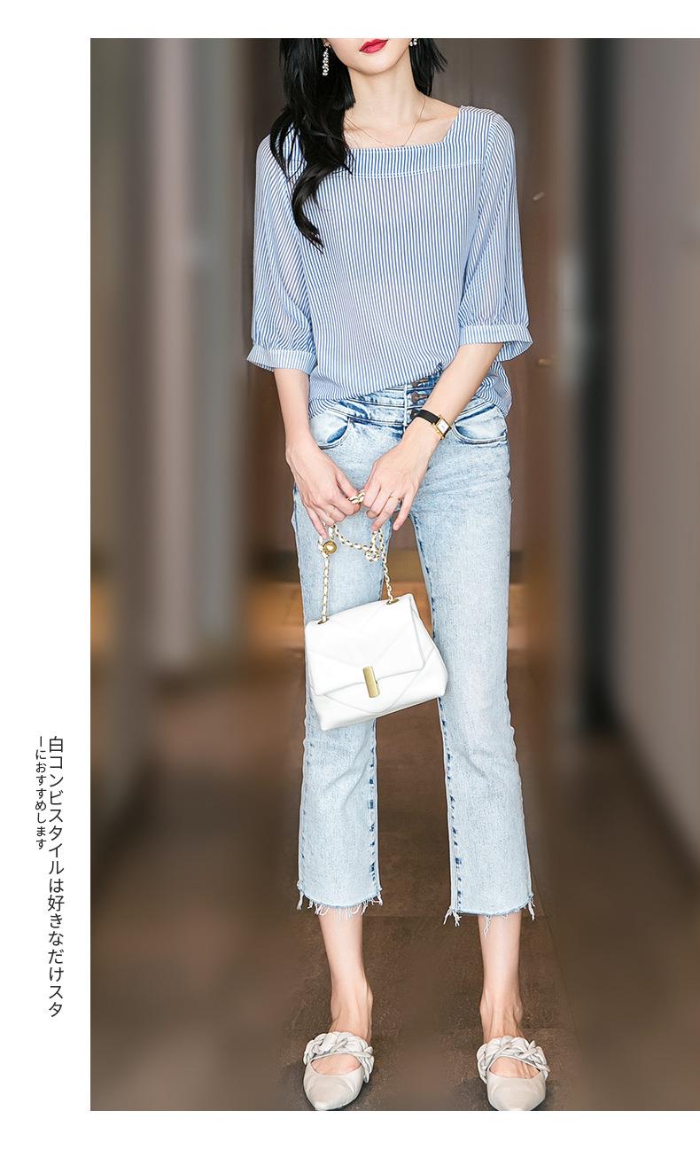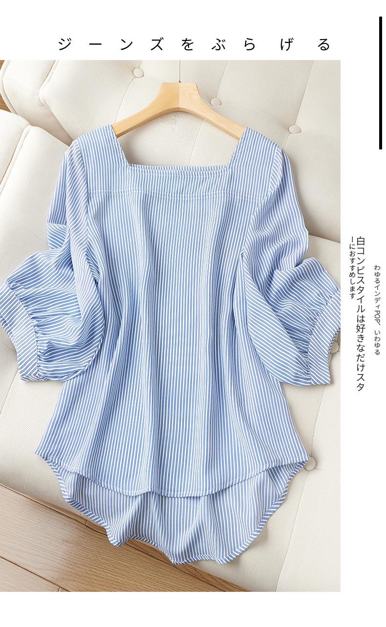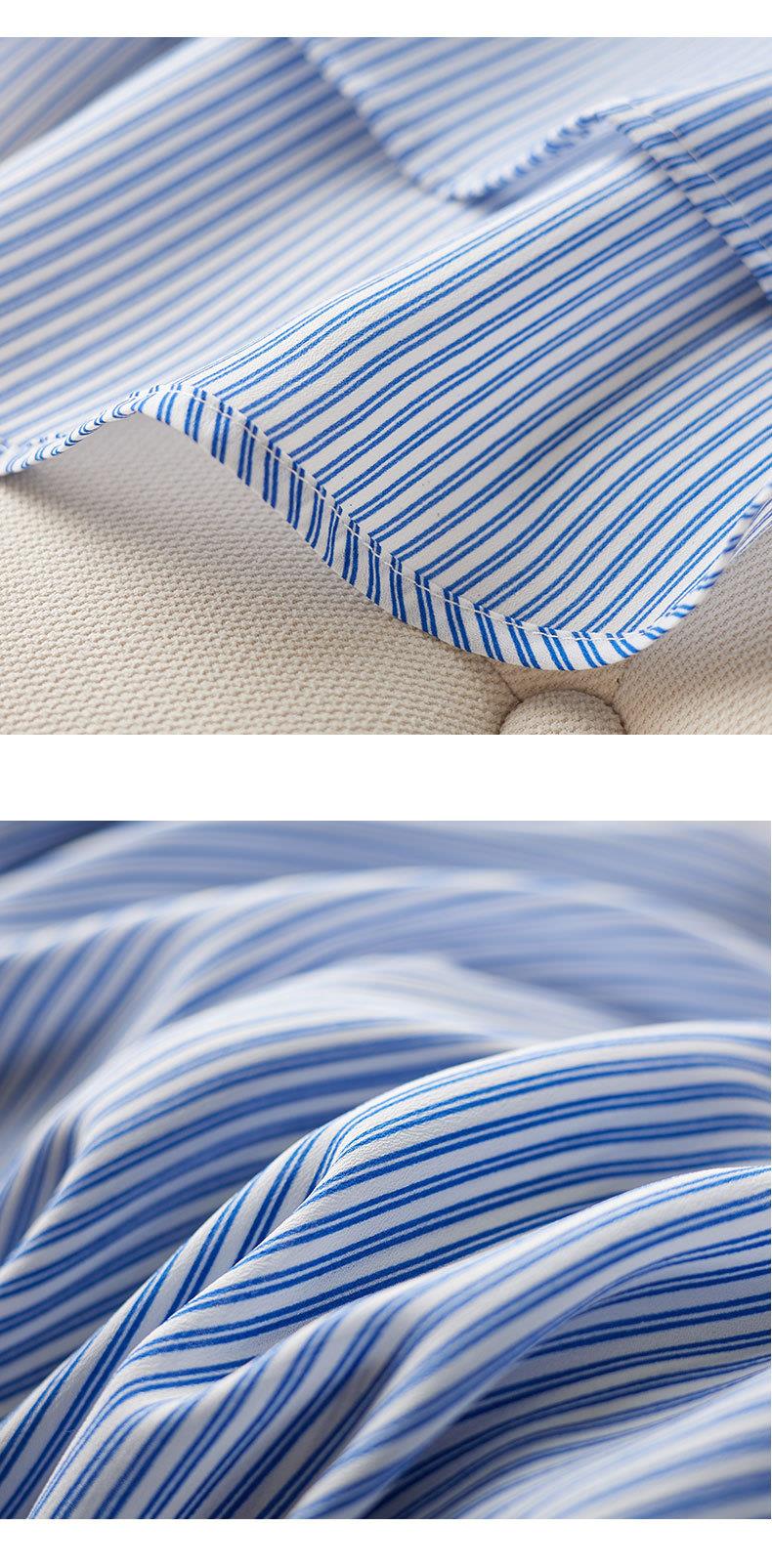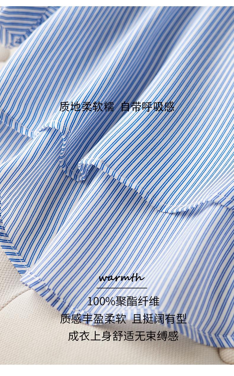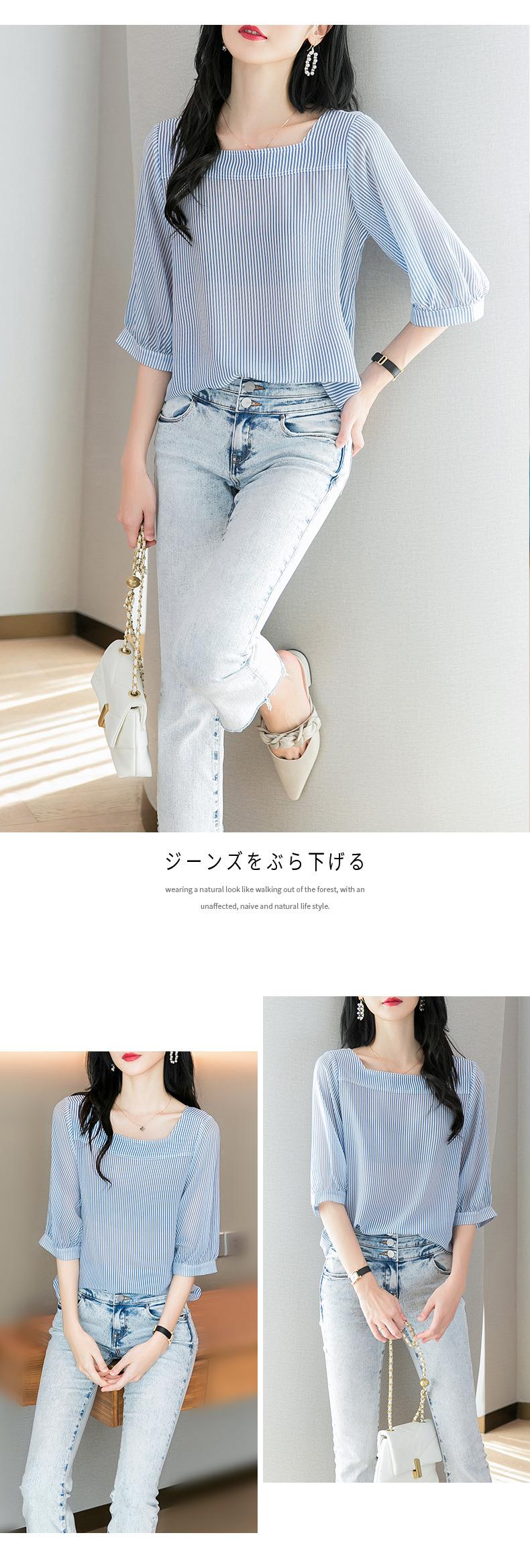 2023夏季新款衬衫女短袖韩版大码雪纺衫上衣条纹T恤1801