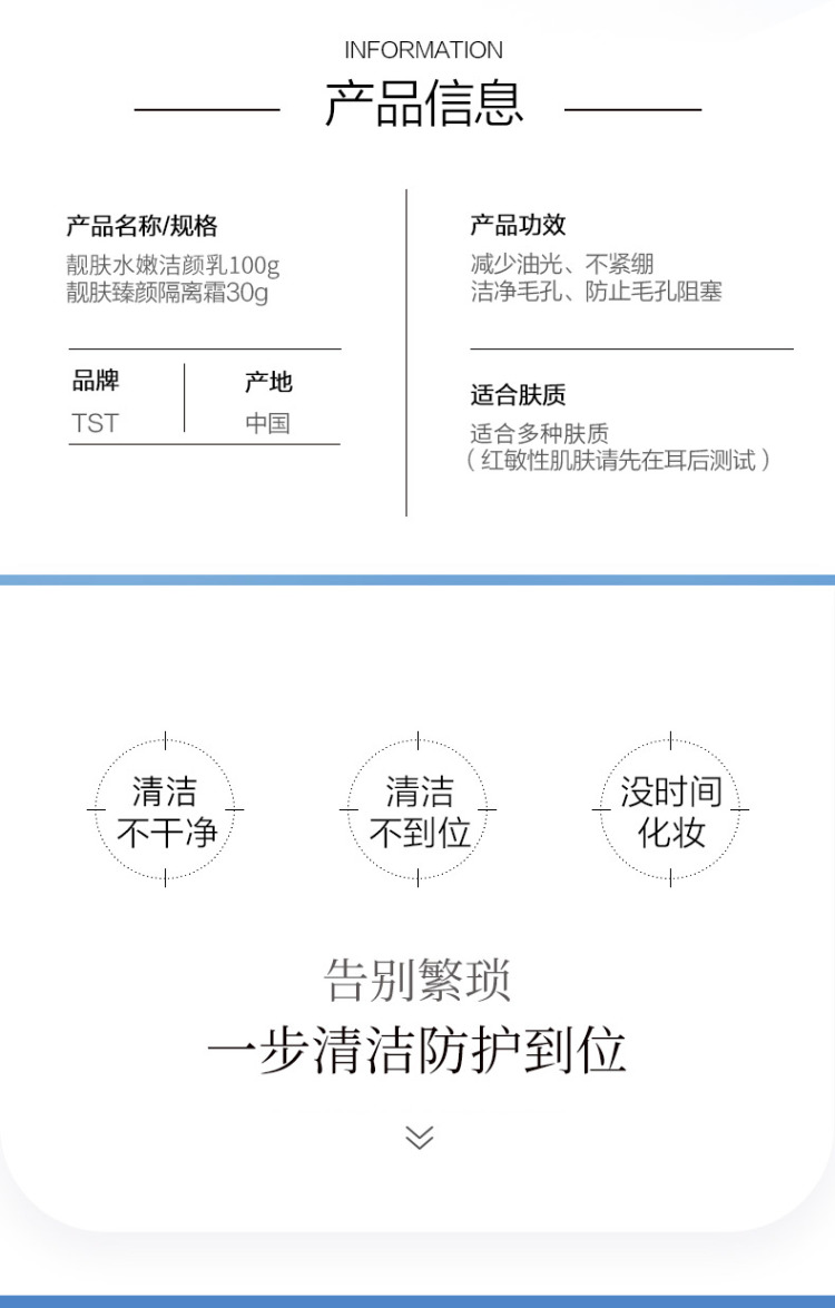 【新春】TST靓肤水嫩洁颜乳100g+靓肤臻颜隔离霜30g+卸妆乳150ml