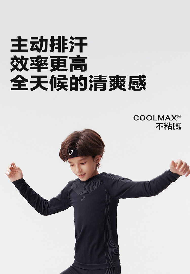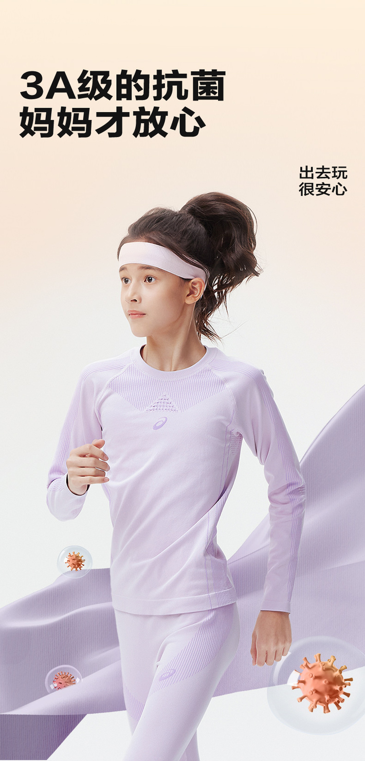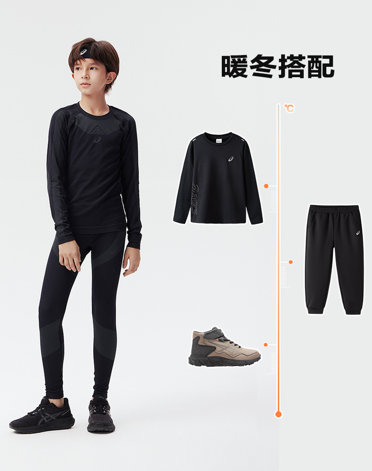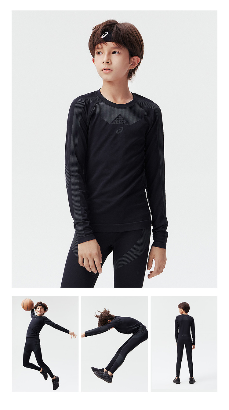 Asics/亚瑟士童装秋冬新款针织长袖长裤保暖运动吸湿速干薄款