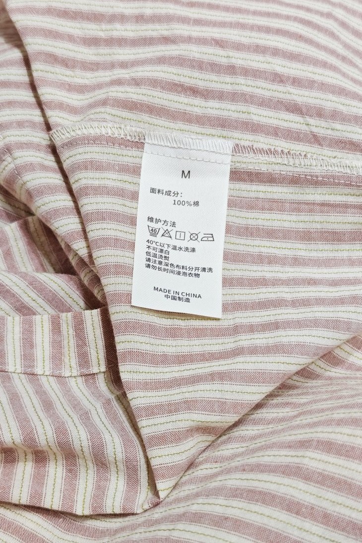 🧺 清洗保养指南(延长穿着寿命) 首次洗涤:建议用 30℃以下温水单独手洗 / 轻柔机洗,避免长时间浸泡,防止串色。 洗涤剂选择:选用中性洗涤剂,请勿使用漂白剂、碱性过强的洗衣液,以免破坏面料柔软度和条纹色 泽。 晾晒方式:阴干晾晒,避免阳光长时间暴晒,防止面料褪色、发硬,保持柔软质感。 收纳建议:洗净晾干后,平整折叠收纳,避免长时间悬挂导致版型变形。