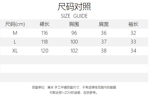 7.服饰类:产品由于拍摄灯光和天气原因,显示器的差异可能会有轻微色差,颜色以收到实物为准。如有误差1-3CM为正常,不属于售后问题!