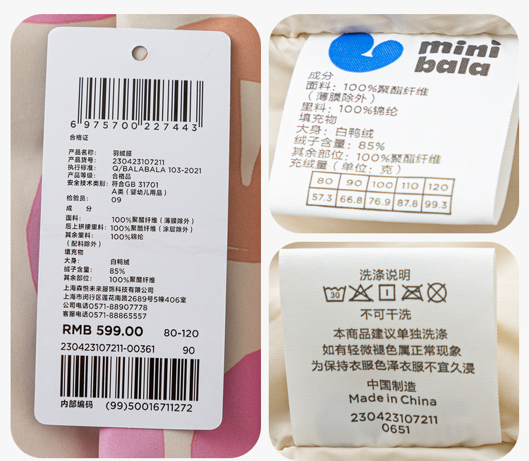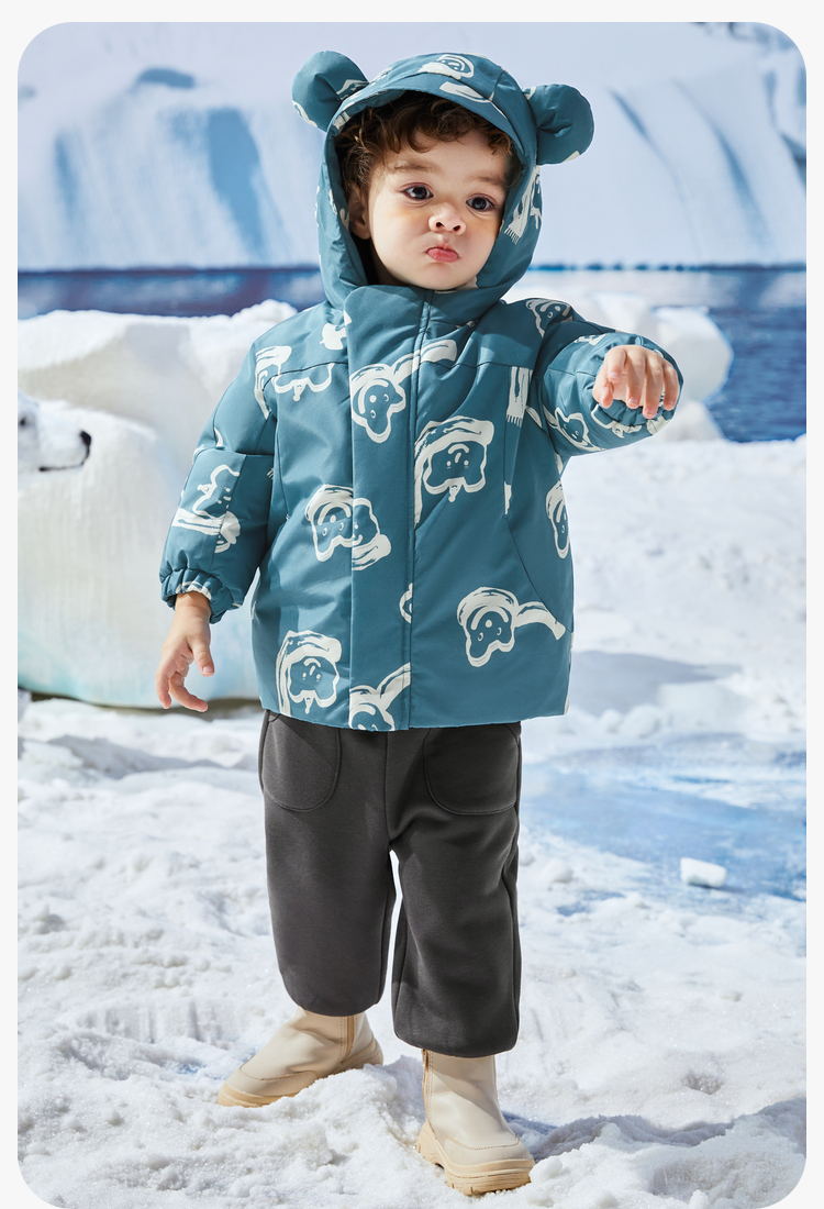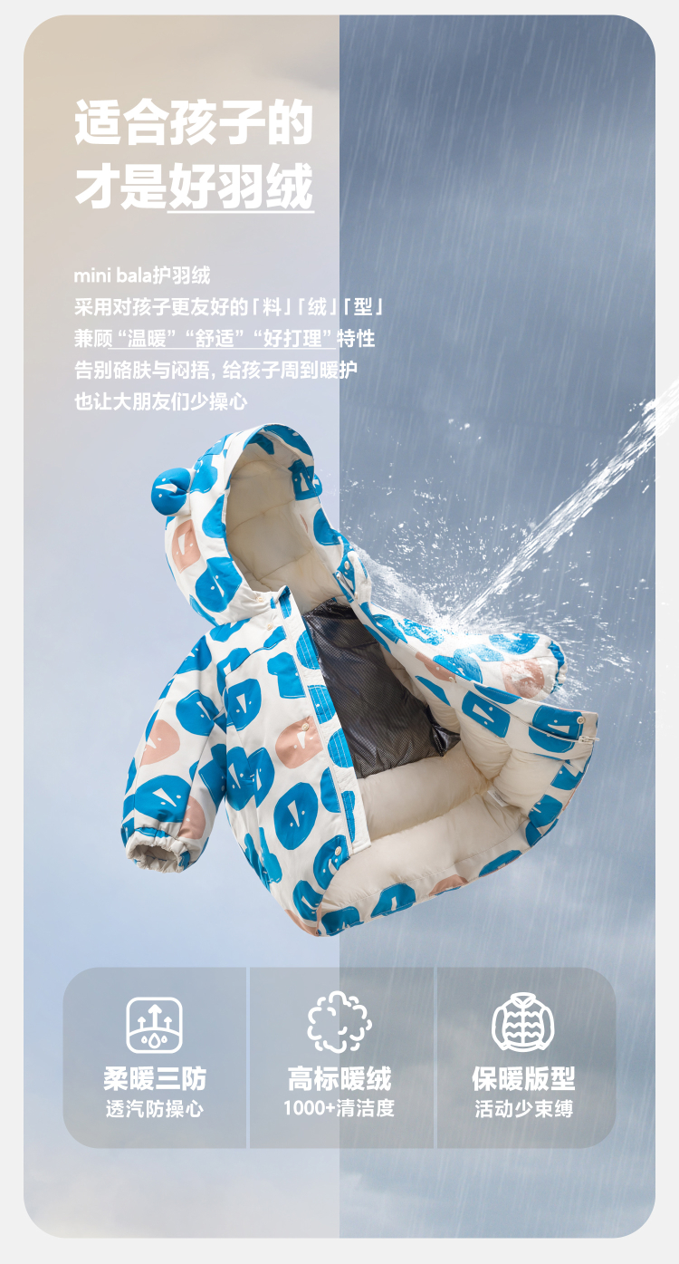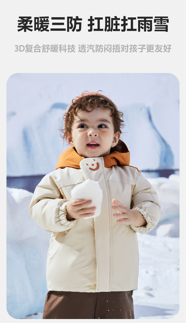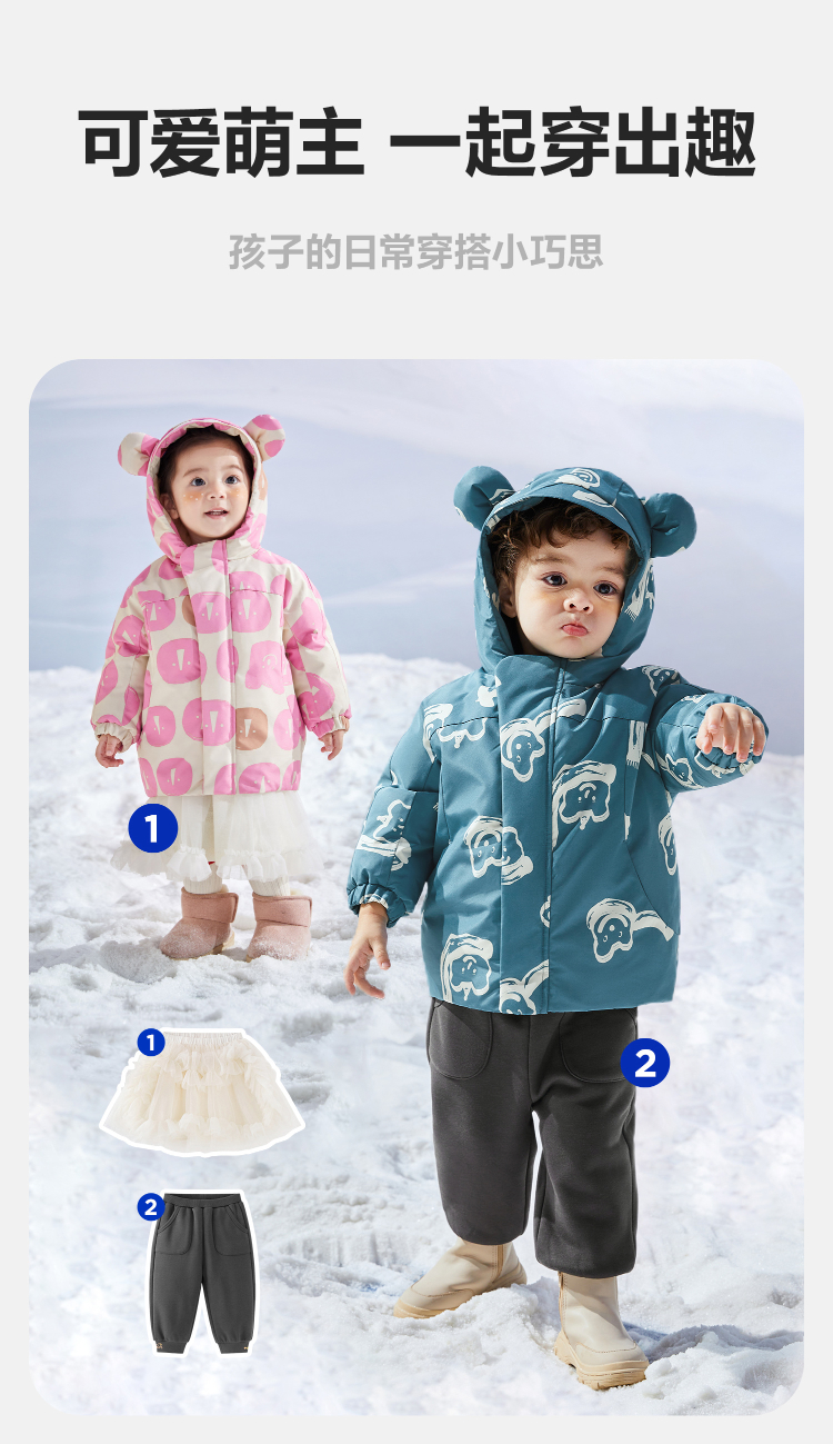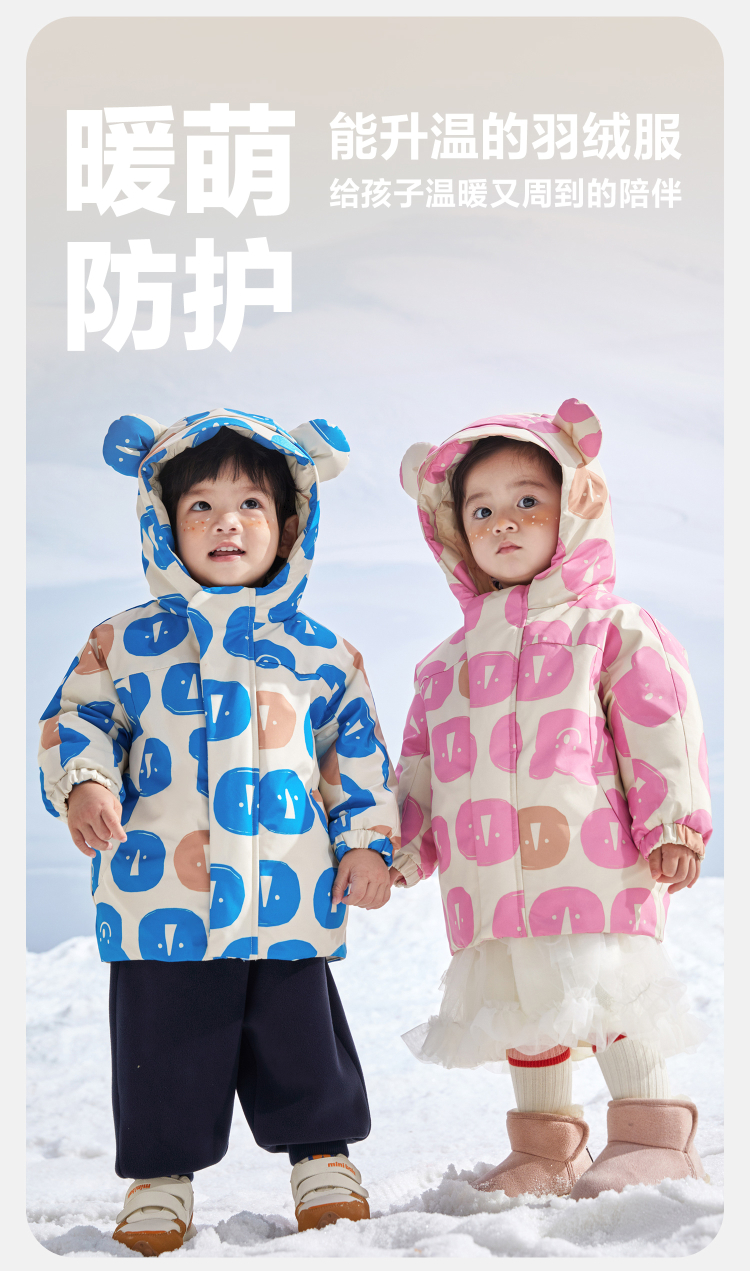 迷你巴拉男童女童外出羽绒服冬新款宝宝时髦保暖儿童连帽外套