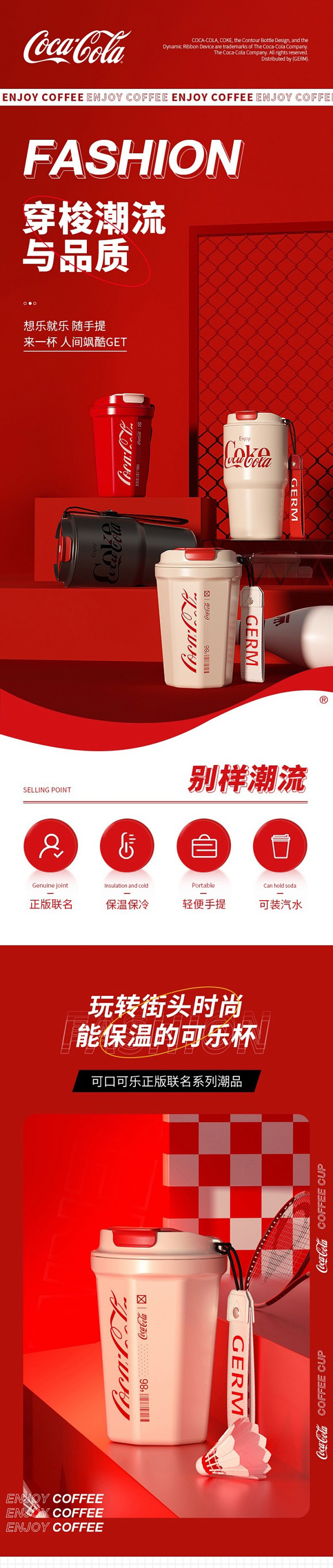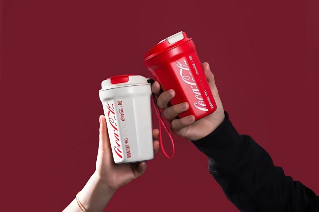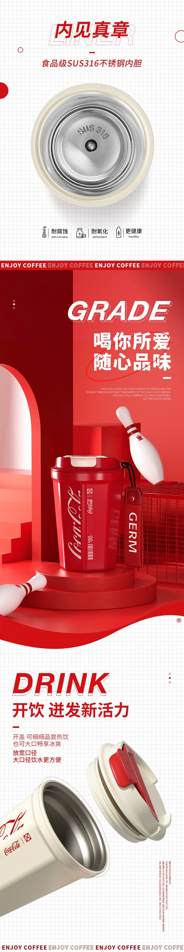 年后发!孙颖莎同款!【正品GERM&可口可乐联名款菱形咖啡杯】可保冷 可保温 内杯316医用钢!咖啡杯,圆形,菱形两种设计风格,两种容量选择【品牌直发】 送礼物