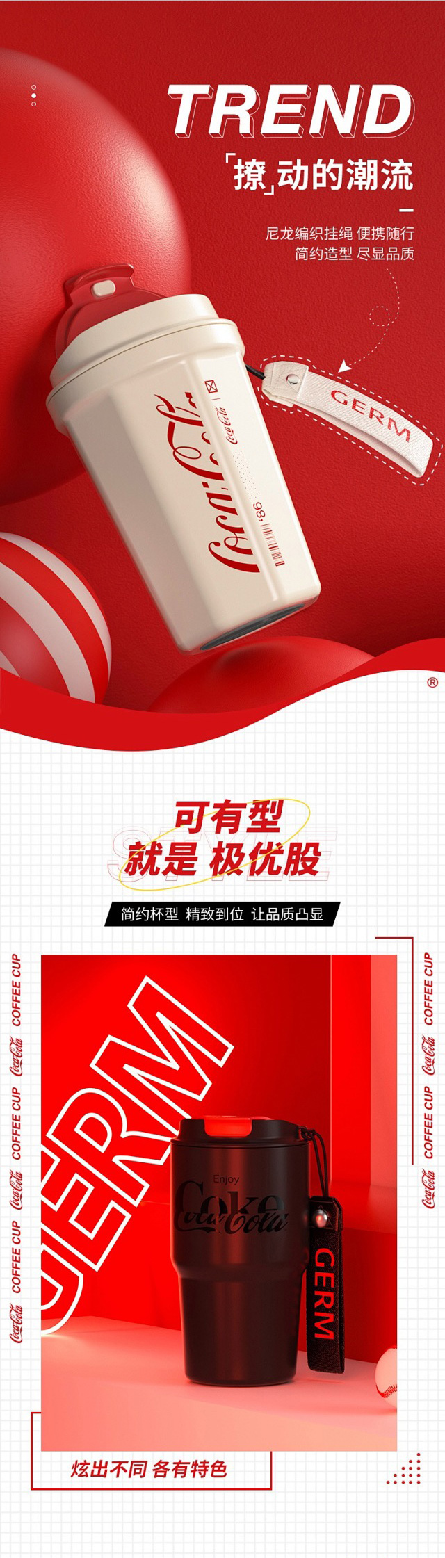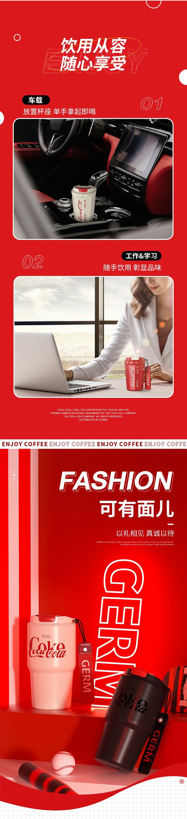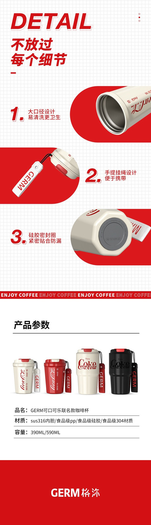 年后发!孙颖莎同款!【正品GERM&可口可乐联名款菱形咖啡杯】可保冷 可保温 内杯316医用钢!咖啡杯,圆形,菱形两种设计风格,两种容量选择【品牌直发】 送礼物