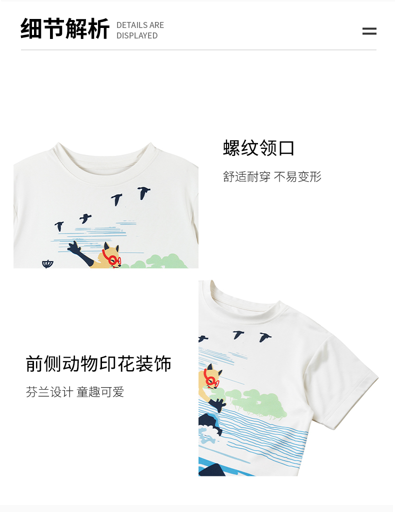 reima男女儿童T恤2024春夏新款运动宽松短袖圆领可爱印花套头上衣
