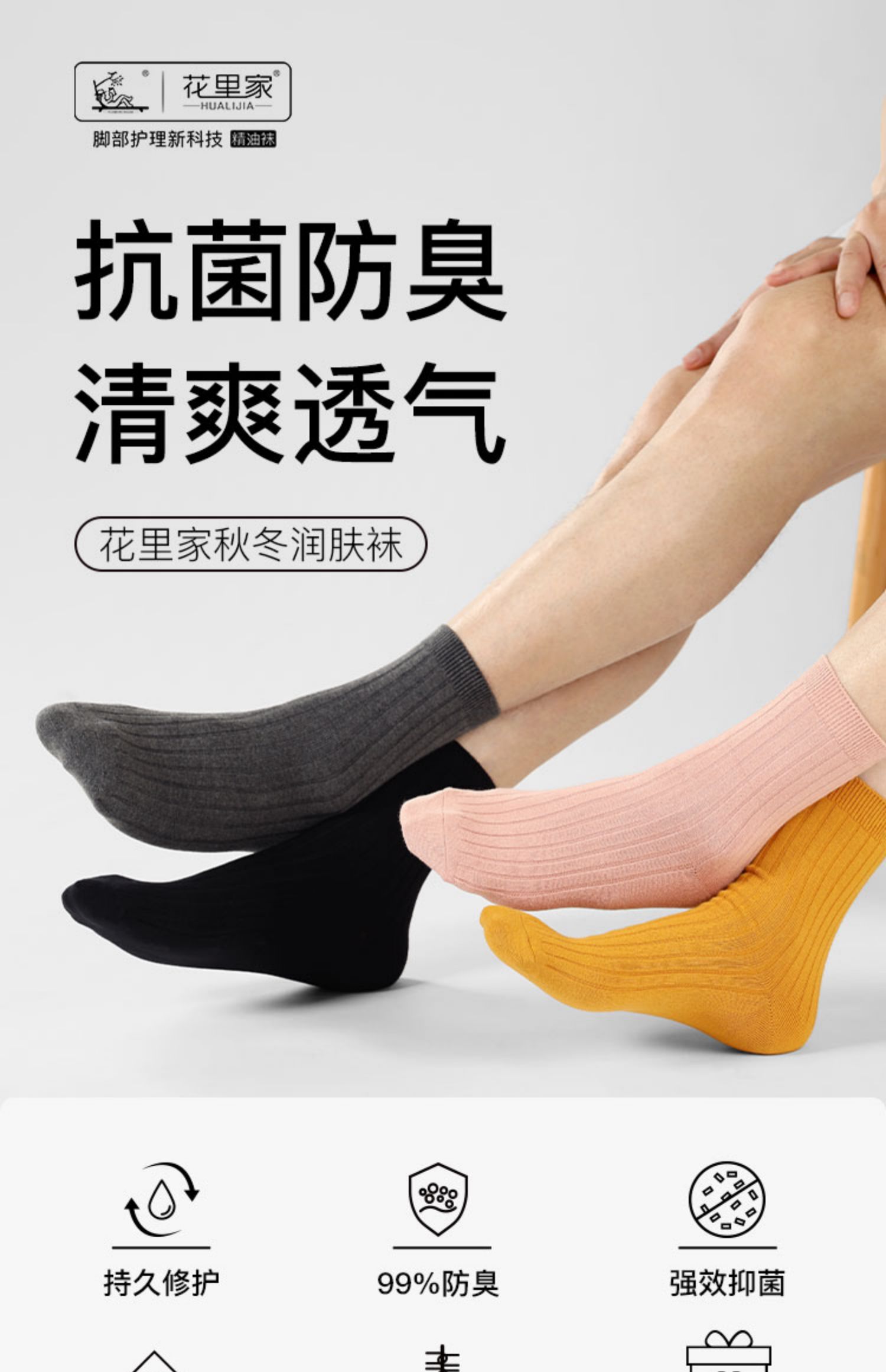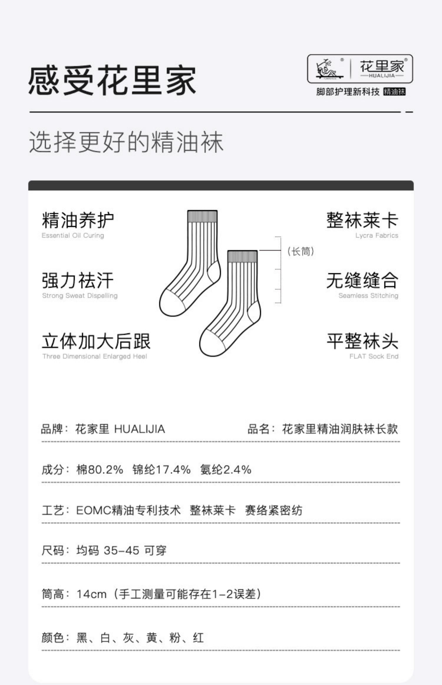花里家防臭精油袜男士商务运动袜子纯色抗菌排汗透气秋冬季棉袜女