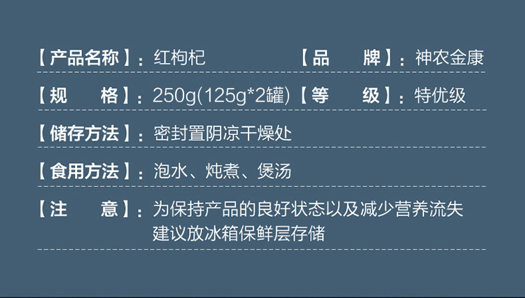 神农金康 宁夏免洗头茬红枸杞子250克/罐 原生态真滋补 喝护家人健康