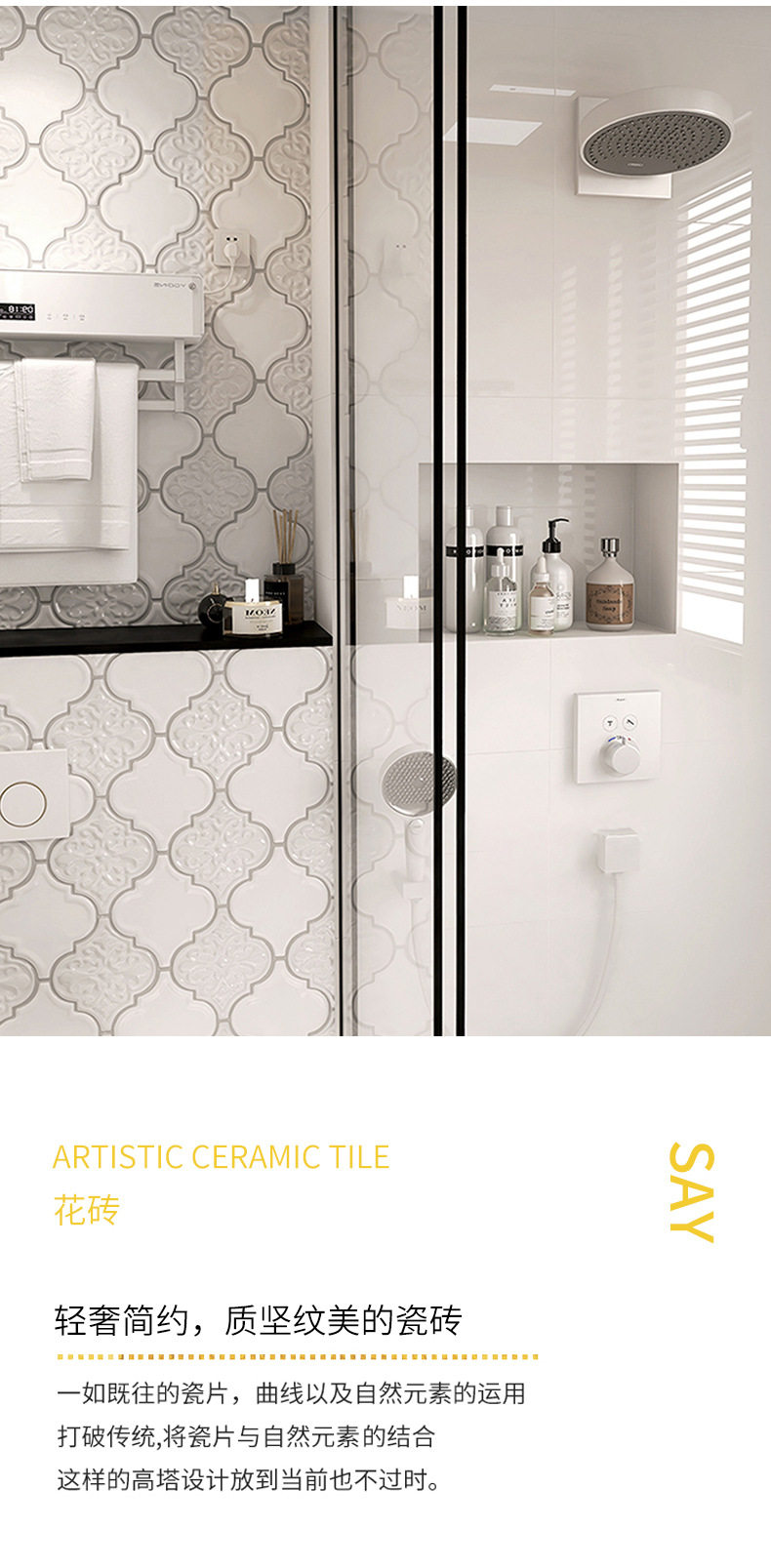 灯笼厨房卫生间法式洗手间厕所花砖瓷砖浴室砖网红纯白色墙砖手工 商品图1